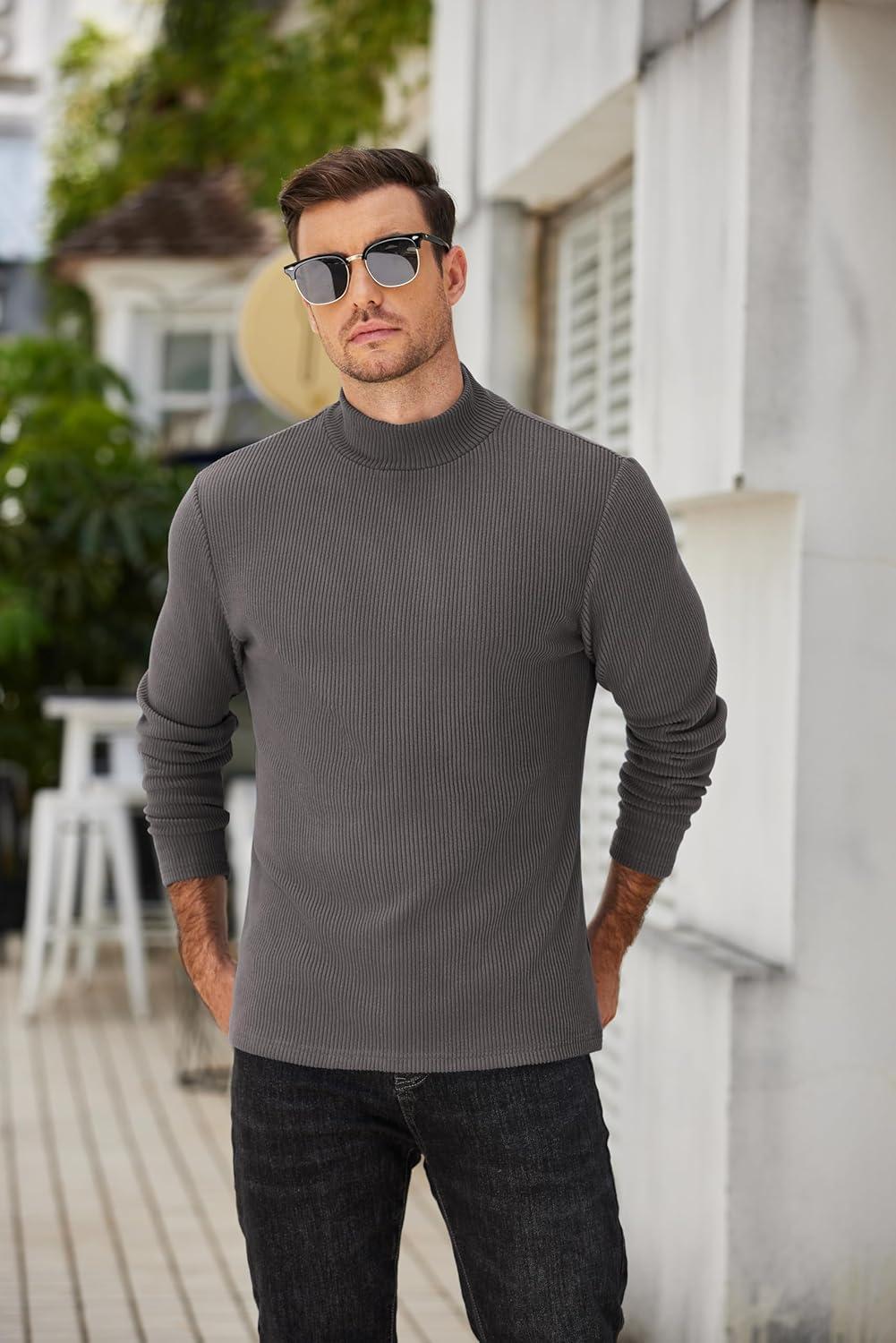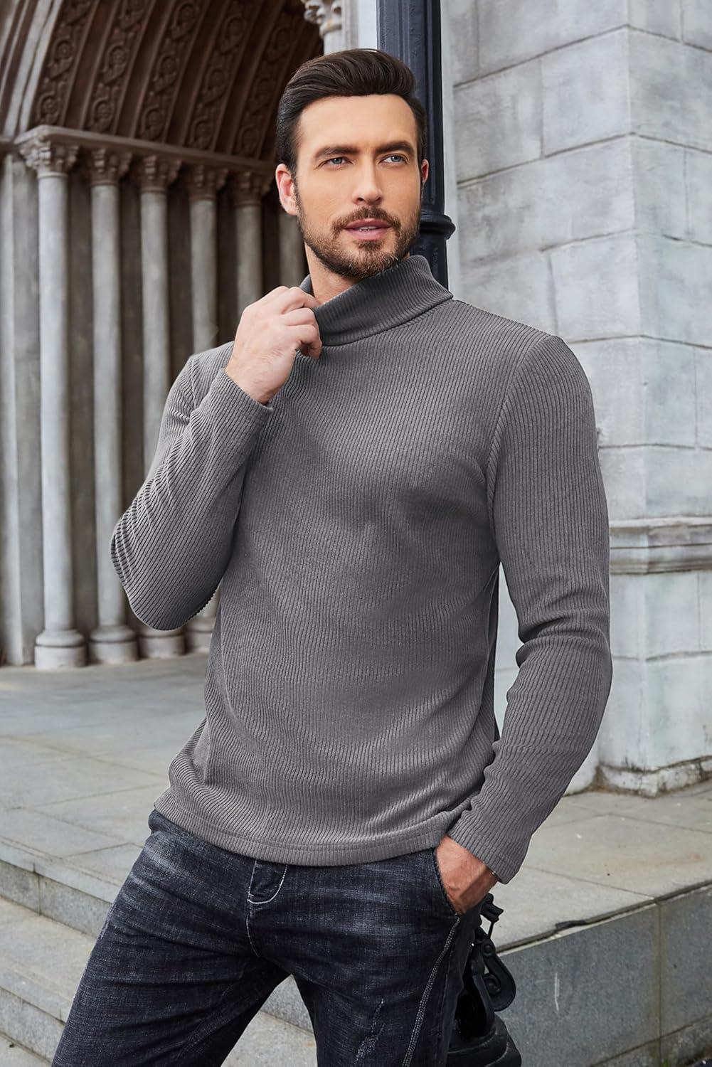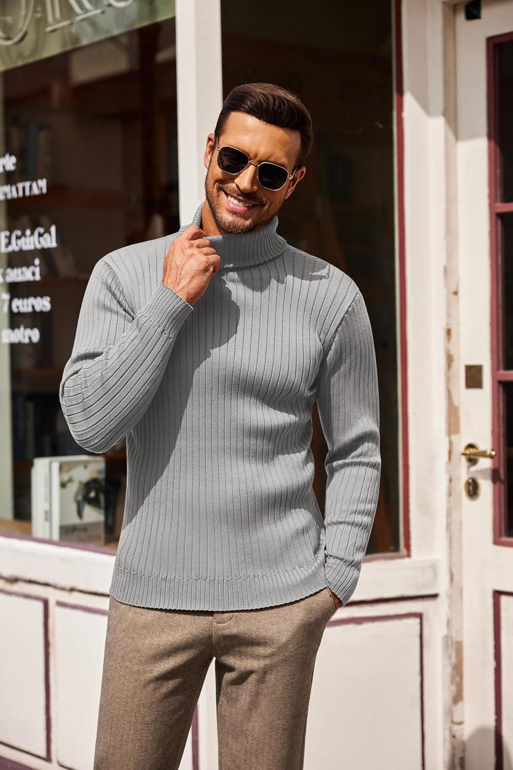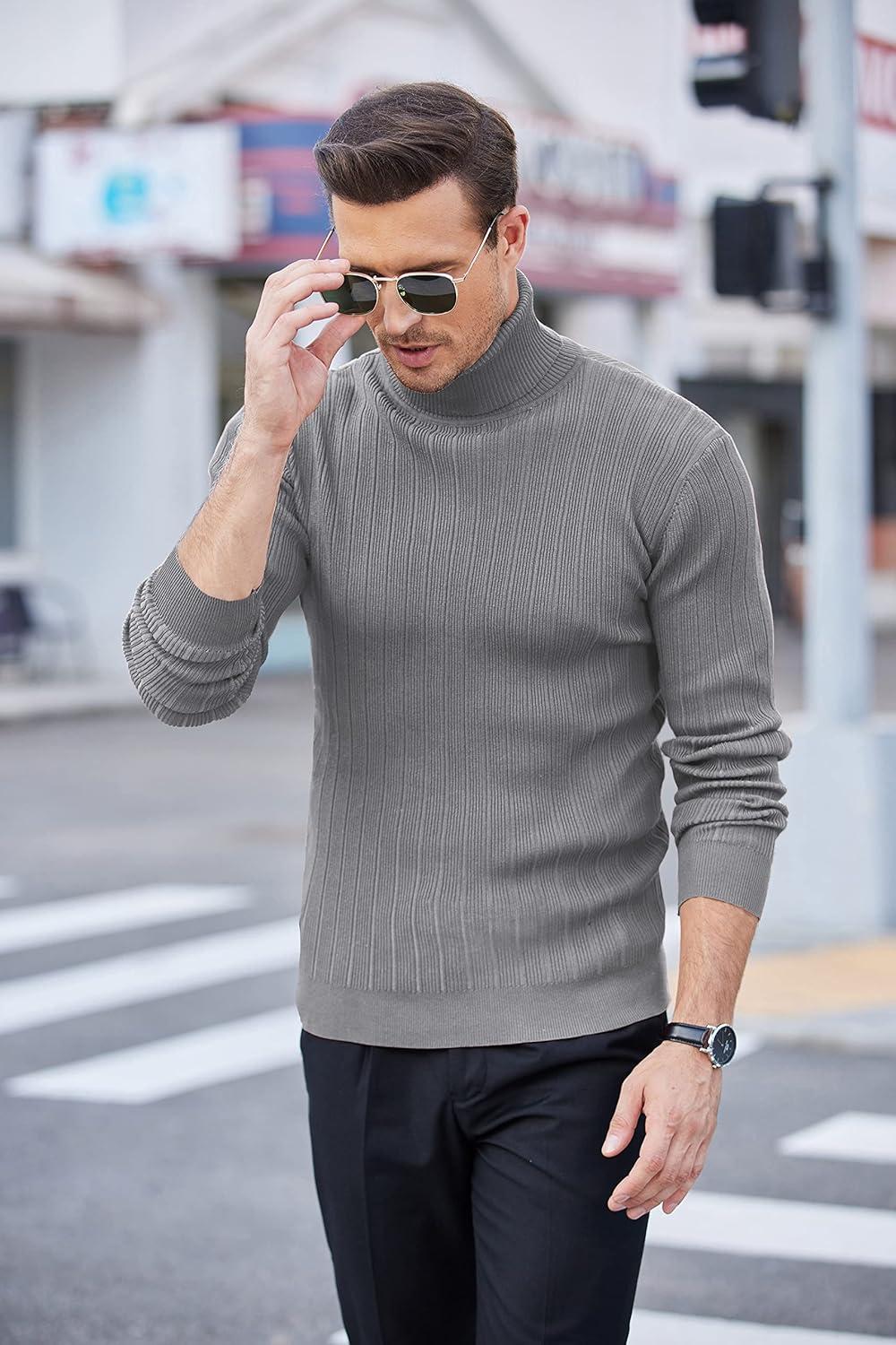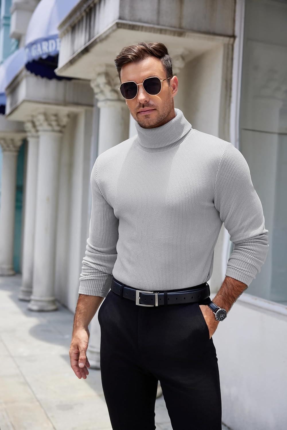 COOFANDY Men’s Slim Fit Turtleneck Sweater Casual Pullover Sweater Lightweight Ribbed Sweater(01_gray)