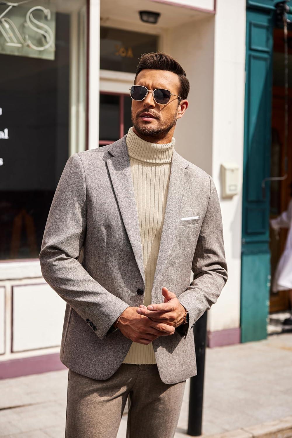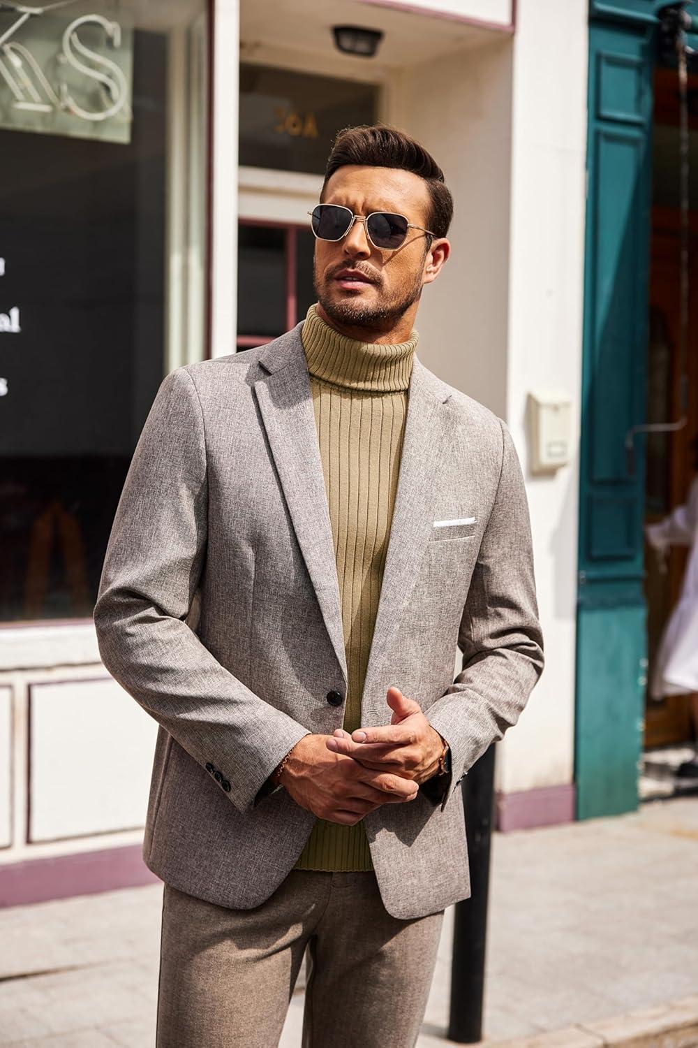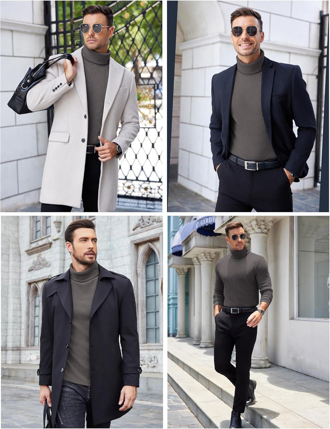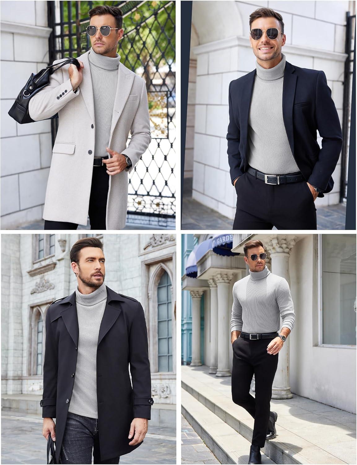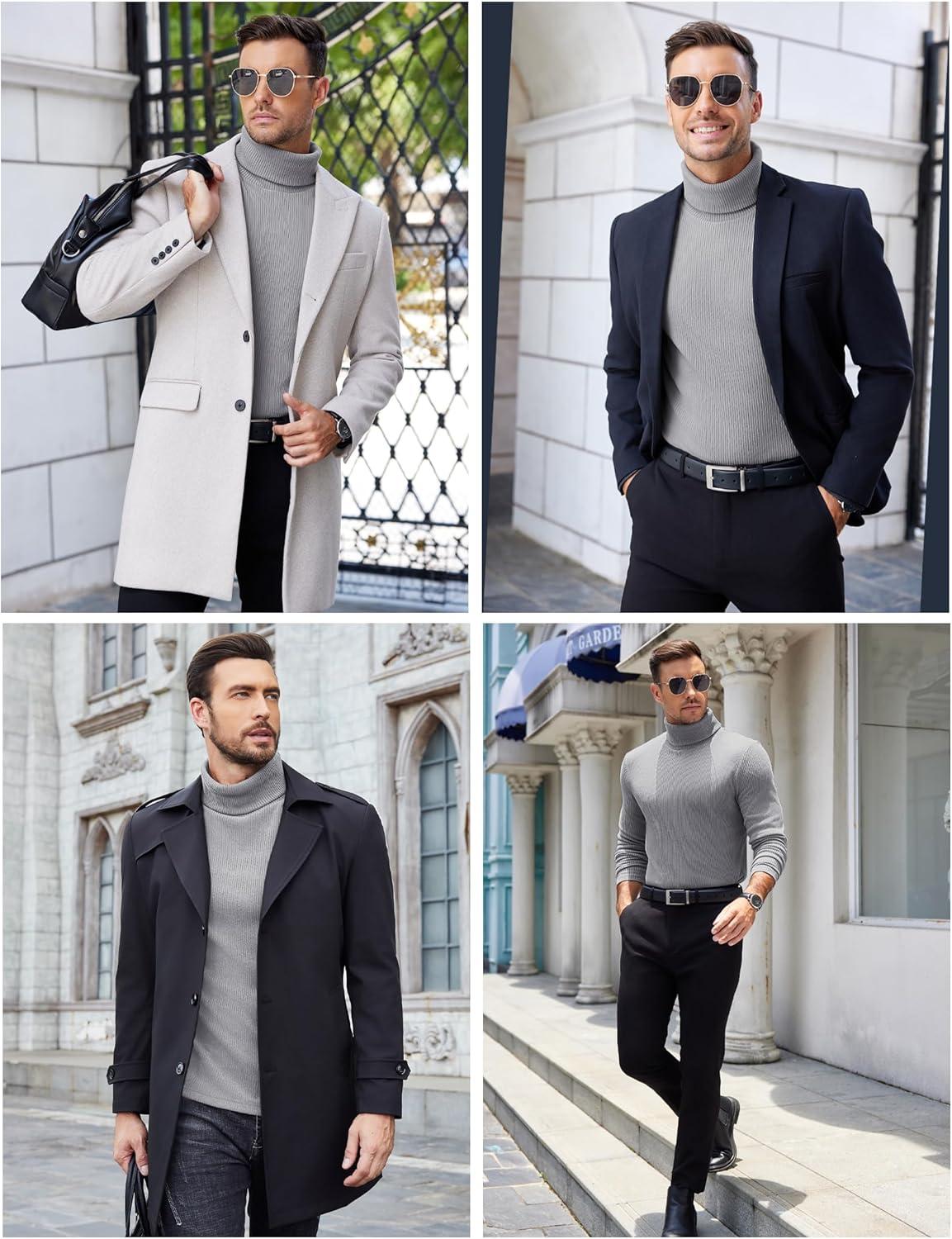 COOFANDY Men’s Slim Fit Turtleneck Sweater Casual Pullover Sweater Lightweight Ribbed Sweater(01_gray)