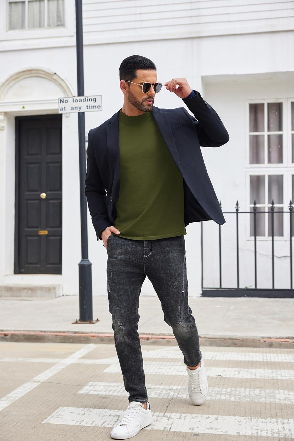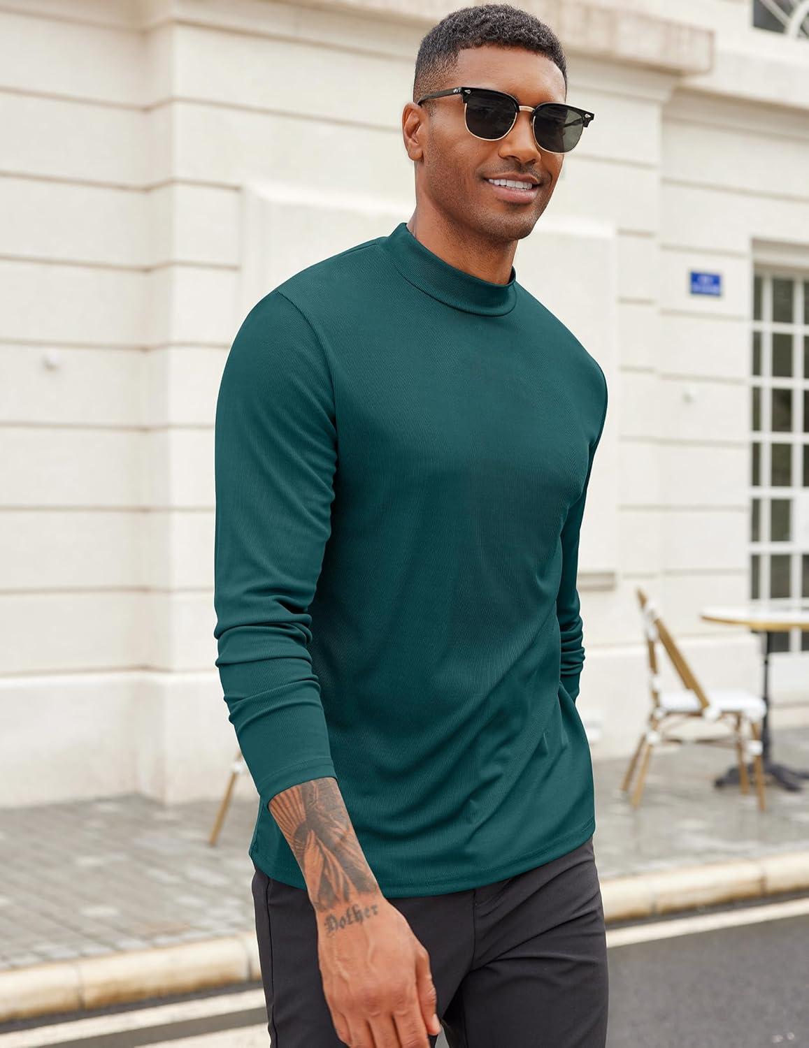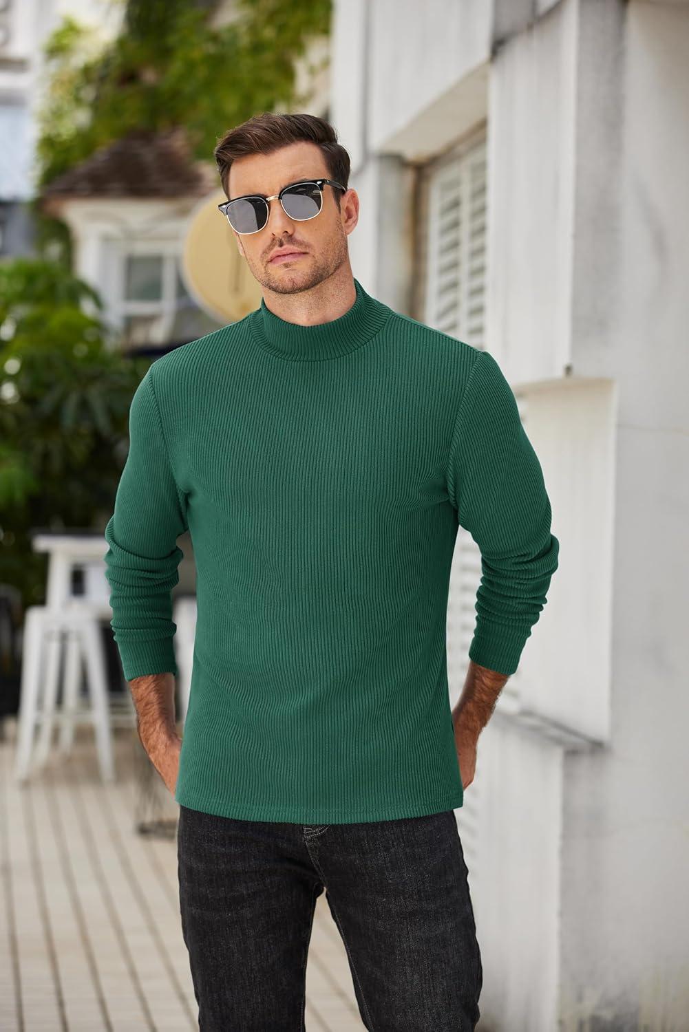 COOFANDY Men’s Mock Turtleneck Long Sleeve Shirts Slim Fit Basic T-Shirt Lightweight Ribbed Pullover Sweater(1 Pack-green)
