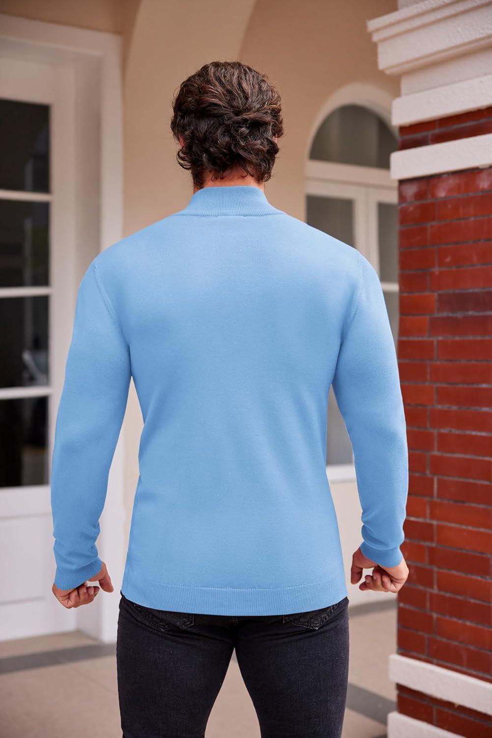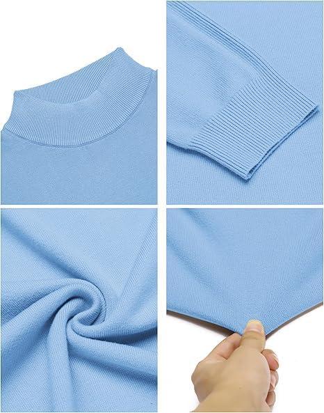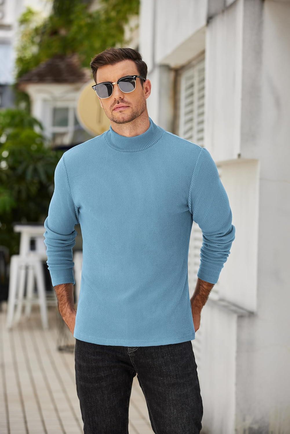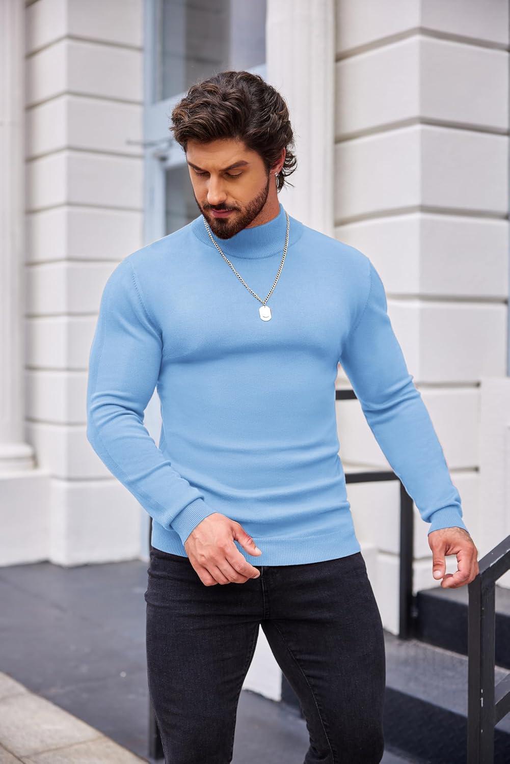 COOFANDY Mens Mock Turtleneck Slim Fit Pullover Sweater Casual Basic Knitted Thermal Sweaters(Light Blue)