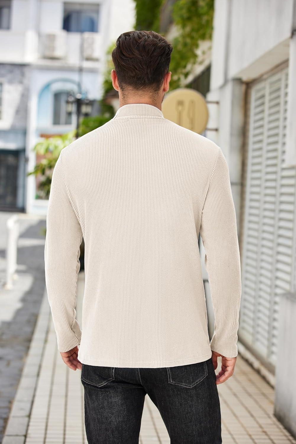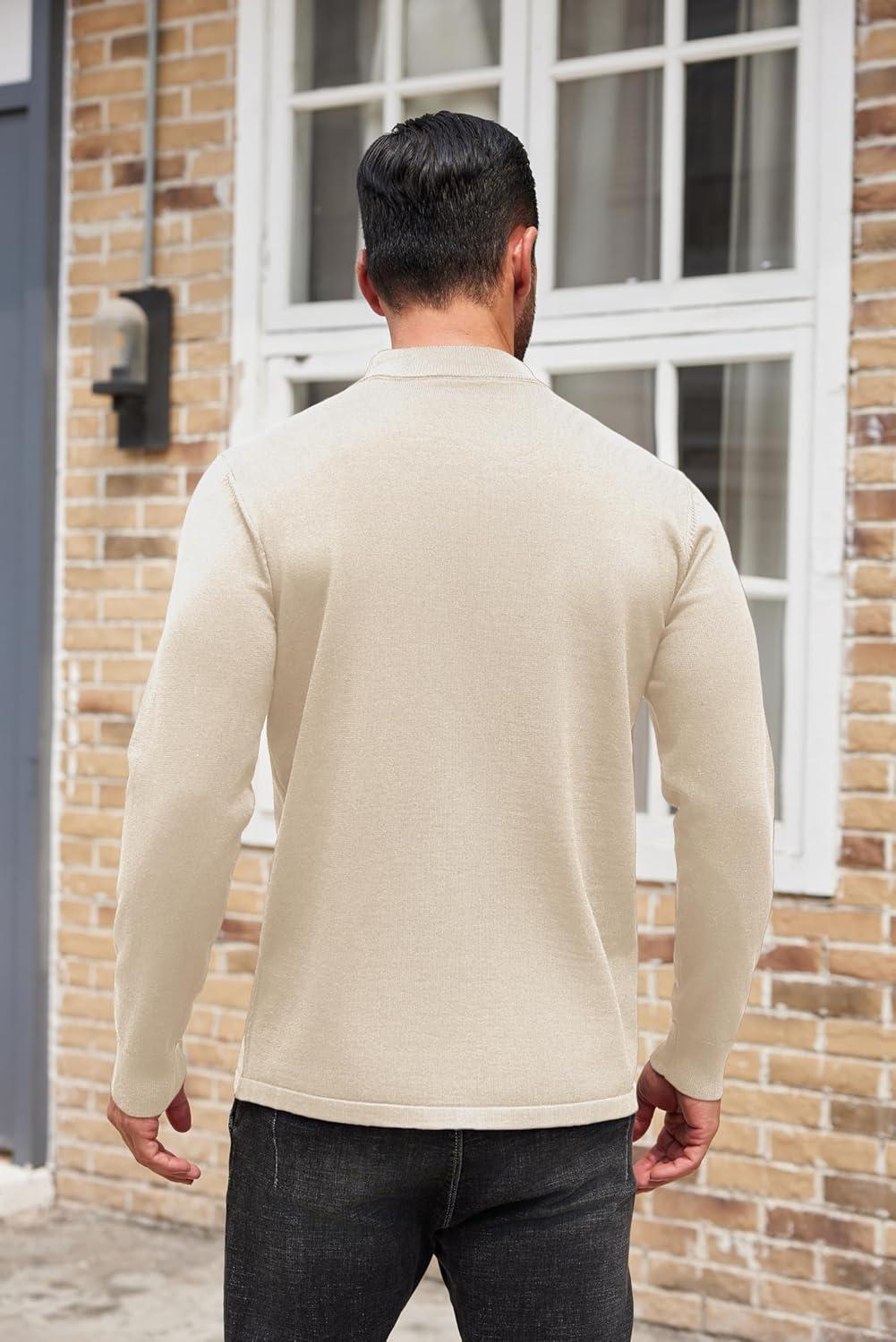 COOFANDY Men’s Mock Turtleneck Sweaters Long Sleeve Casual Knit Shirts Half Neck Thermal Lightweight Pullover Sweater(Cream)