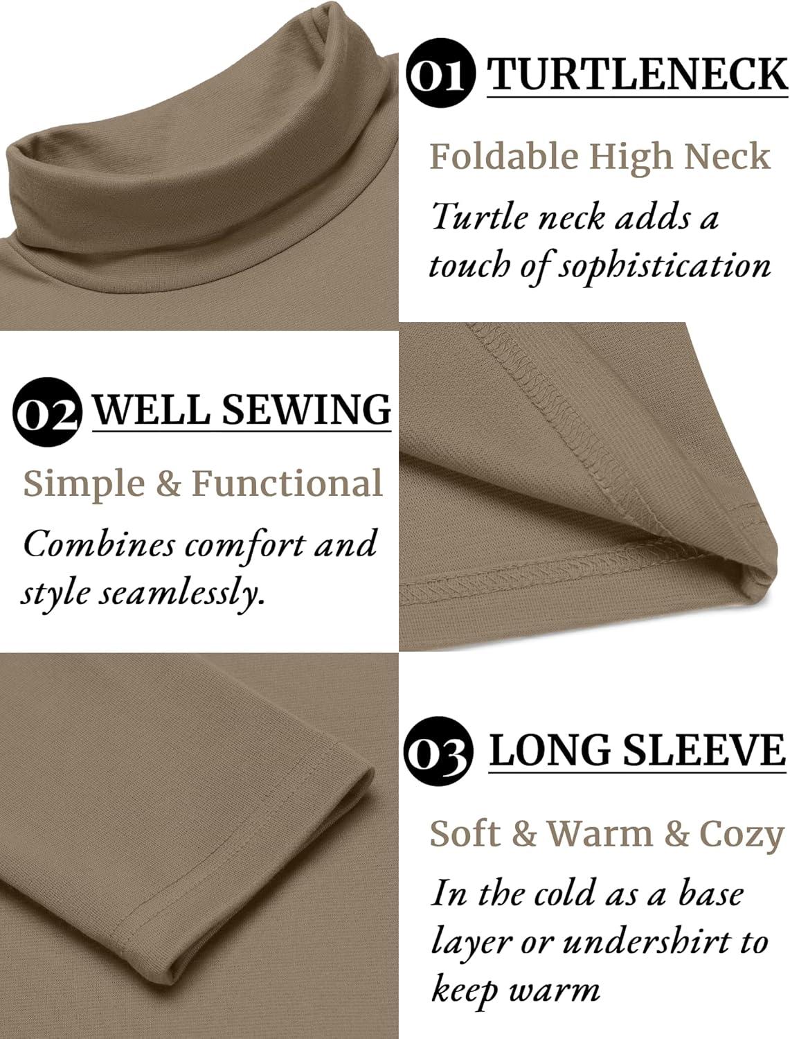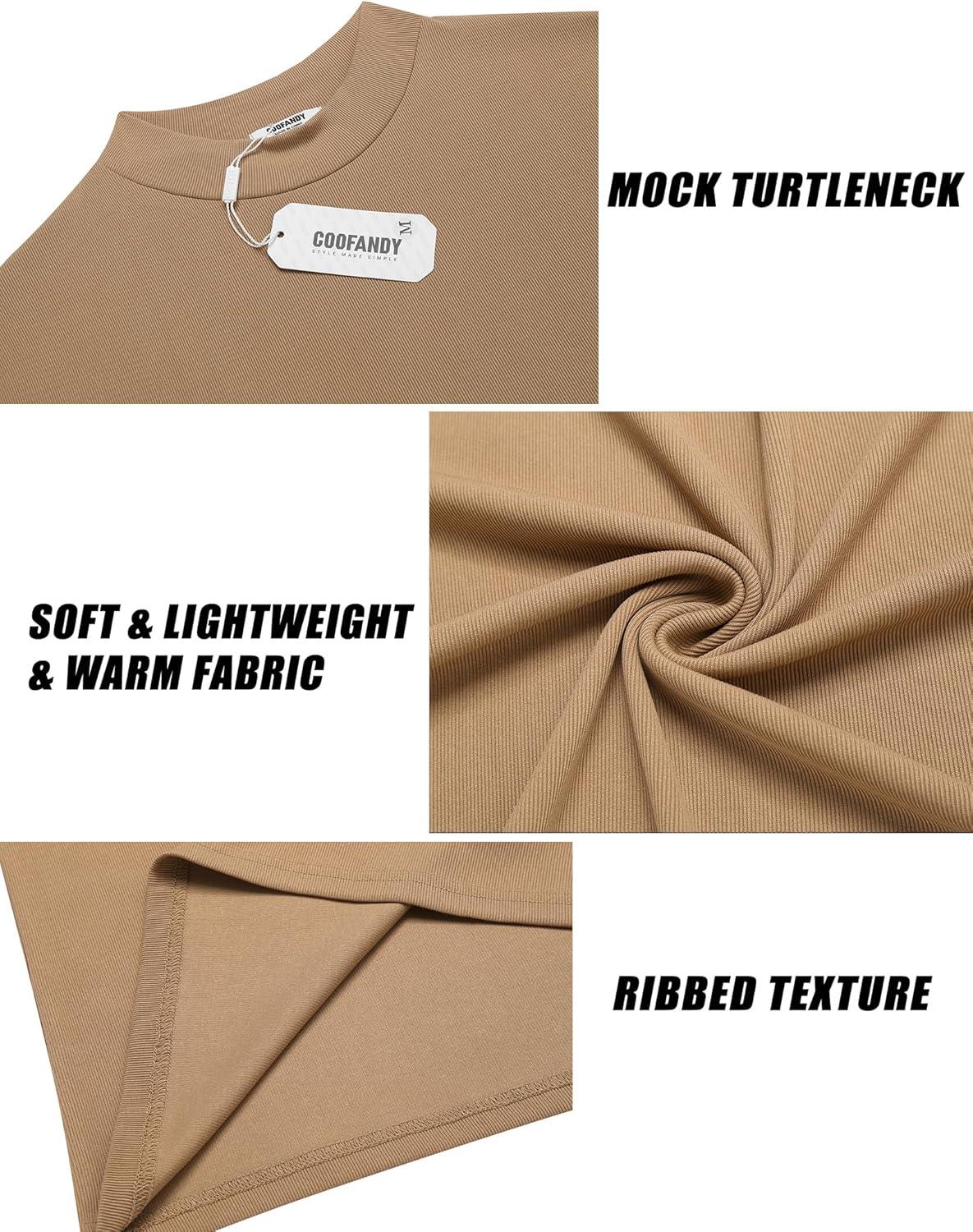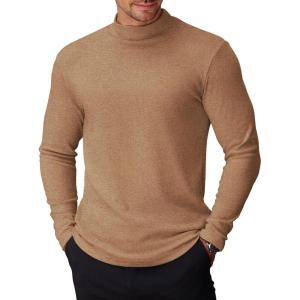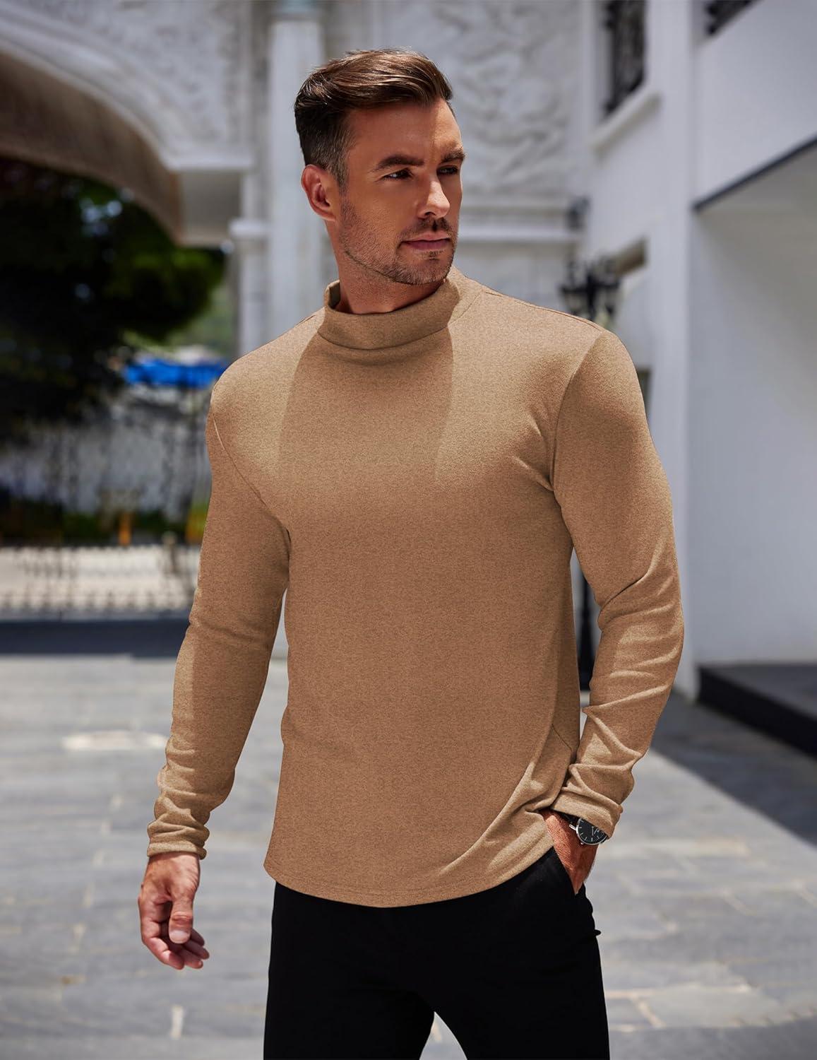 COOFANDY Mens Mock Turtleneck Long Sleeve Shirts Basic Thermal Turtle Neck Undershirt Lightweight Pullover Sweaters Top(Light Brown)