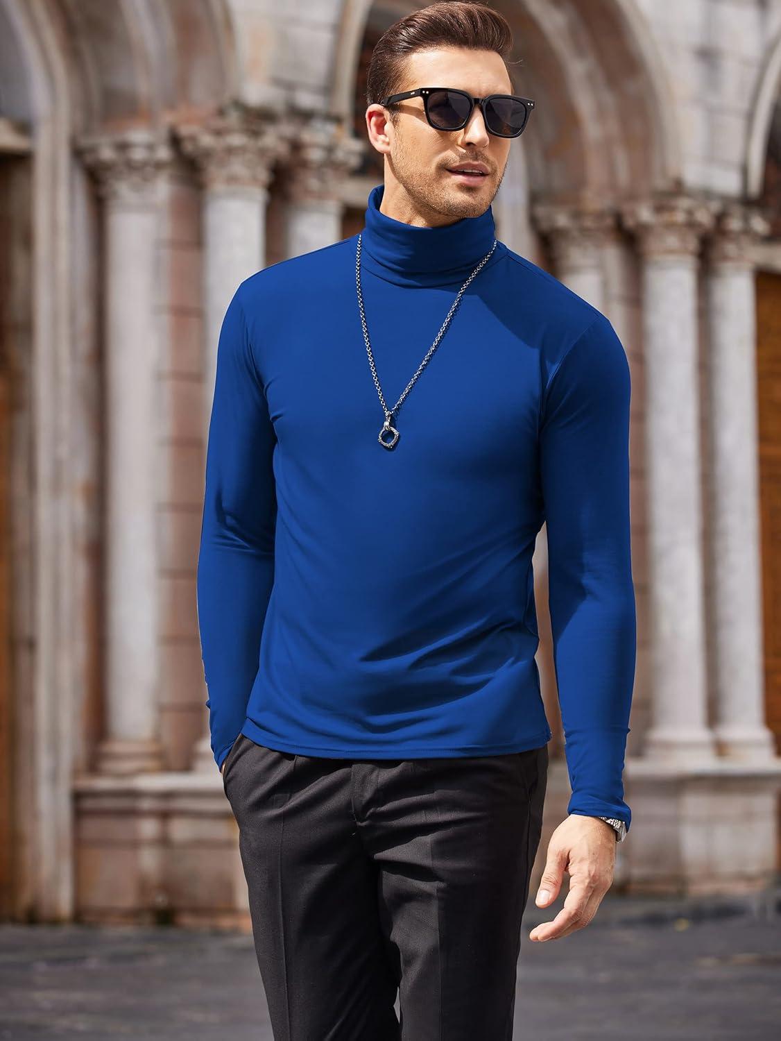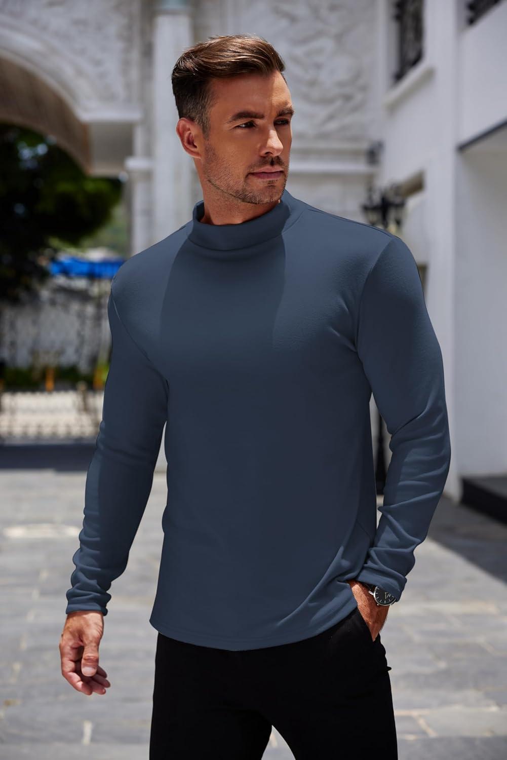 COOFANDY Mens Mock Turtleneck Long Sleeve Shirts Basic Thermal Turtle Neck Undershirt Lightweight Pullover Sweaters Top(Blue)