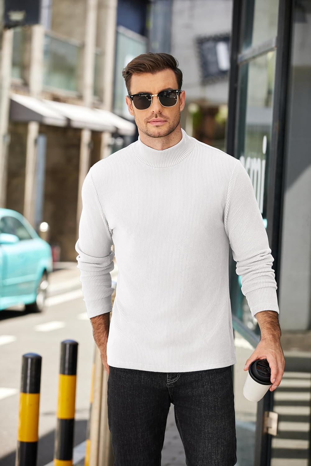 COOFANDY Men’s Mock Turtleneck Long Sleeve Shirts Slim Fit Basic T-Shirt Lightweight Ribbed Pullover Sweater(1 Pack-white)