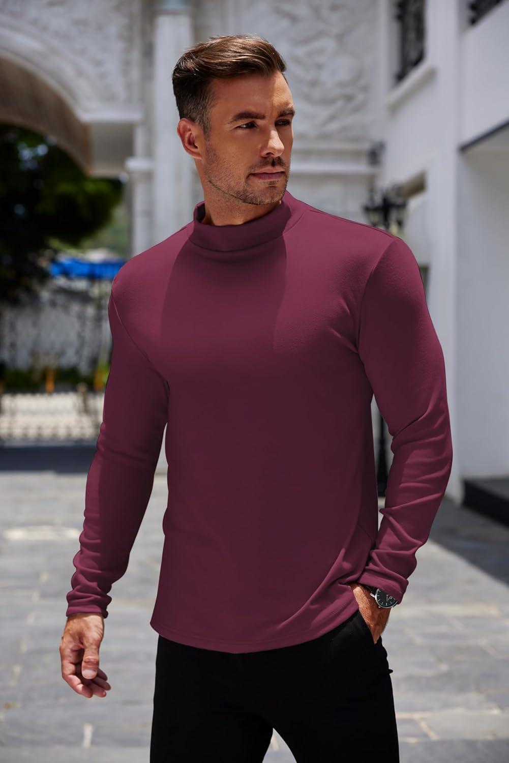 COOFANDY Mens Mock Turtleneck Long Sleeve Shirts Basic Thermal Turtle Neck Undershirt Lightweight Pullover Sweaters Top(Wine Red)