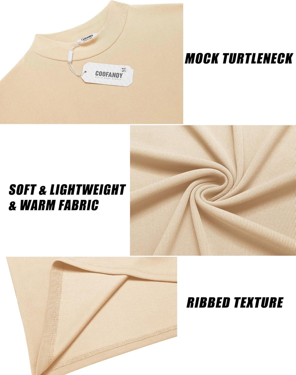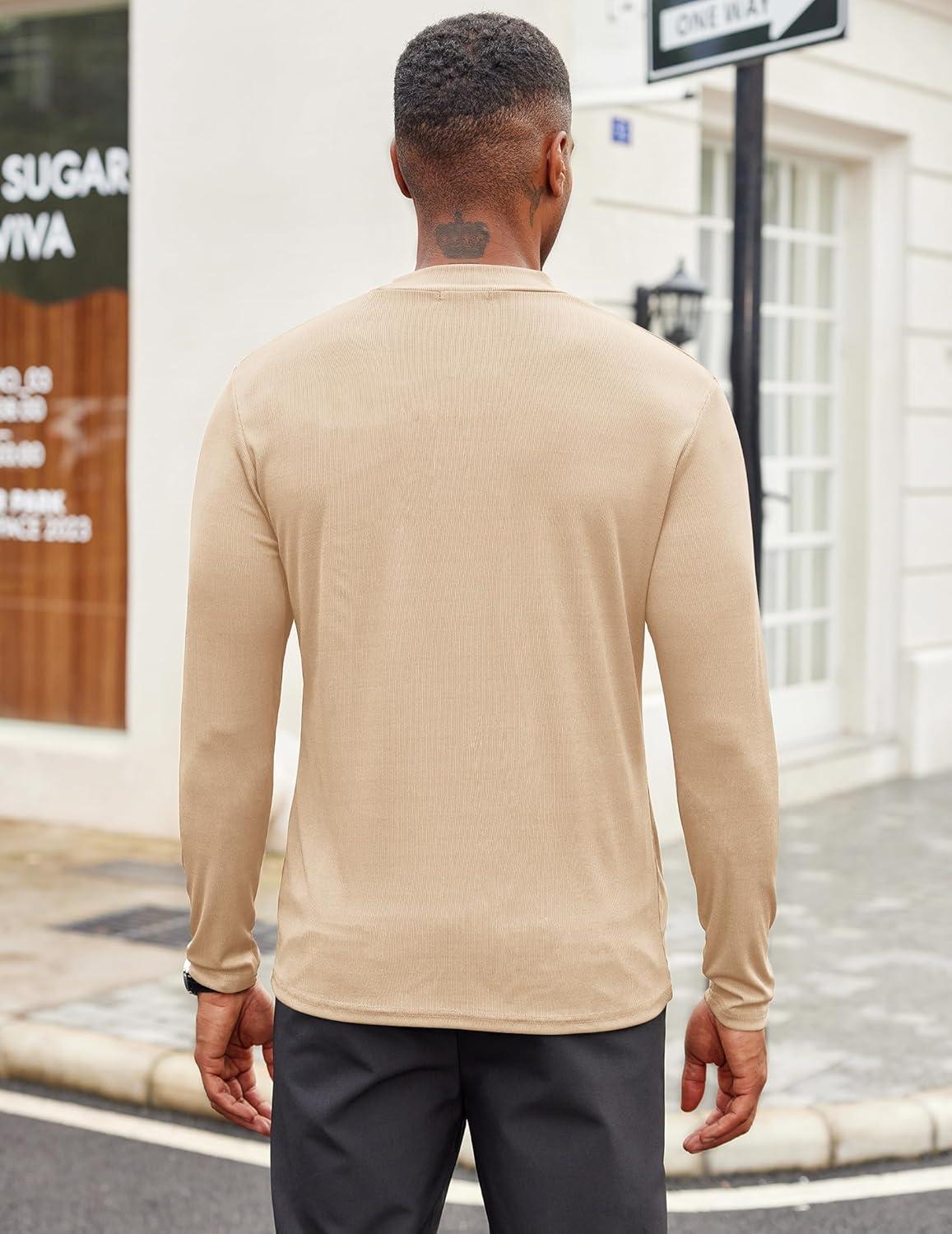 COOFANDY Men’s Mock Turtleneck Long Sleeve Shirts Slim Fit Basic T-Shirt Lightweight Ribbed Pullover Sweater(1 Pack-beige)