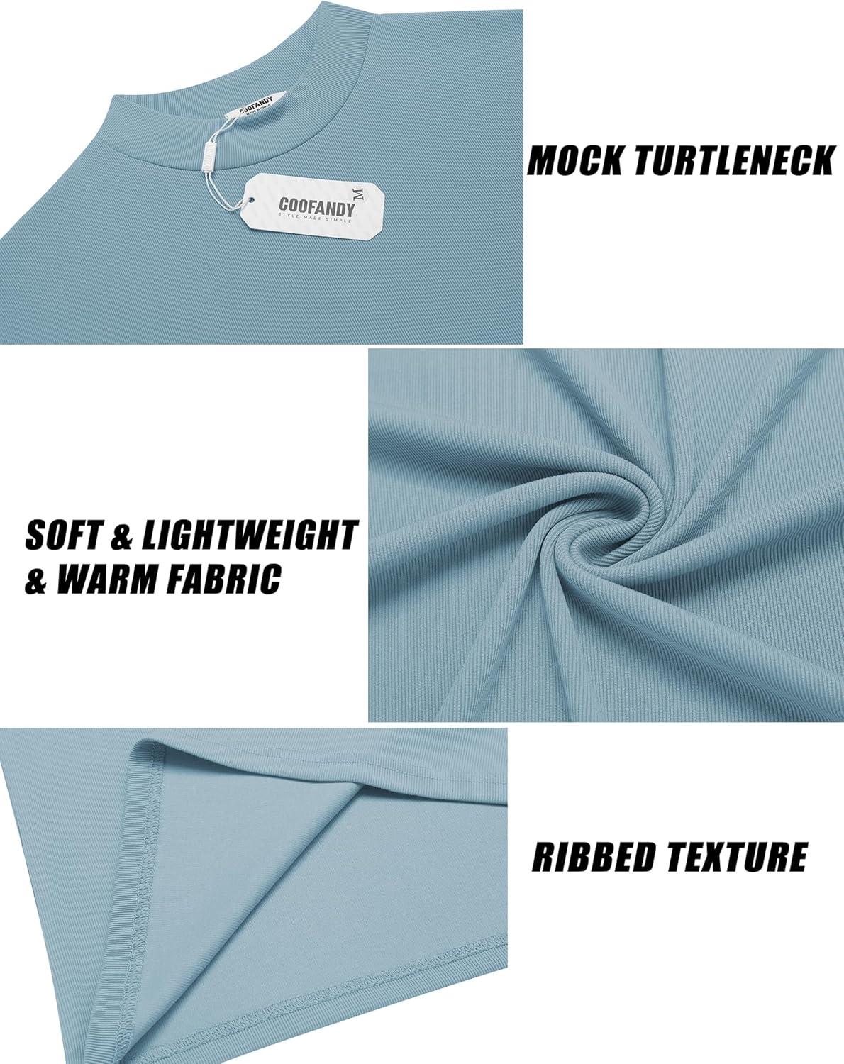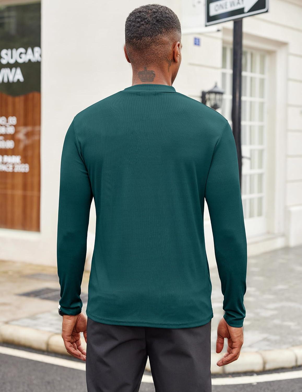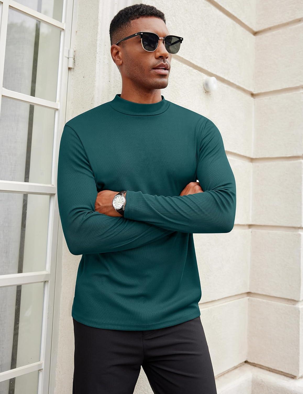COOFANDY Men’s Mock Turtleneck Long Sleeve Shirts Slim Fit Basic T-Shirt Lightweight Ribbed Pullover Sweater(Greenish Blue)