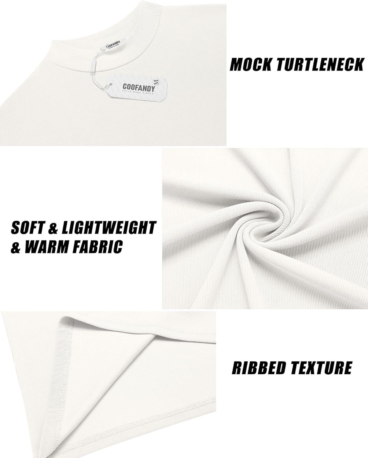 COOFANDY Men’s Mock Turtleneck Long Sleeve Shirts Slim Fit Basic T-Shirt Lightweight Ribbed Pullover Sweater(2 Pack-black & White)