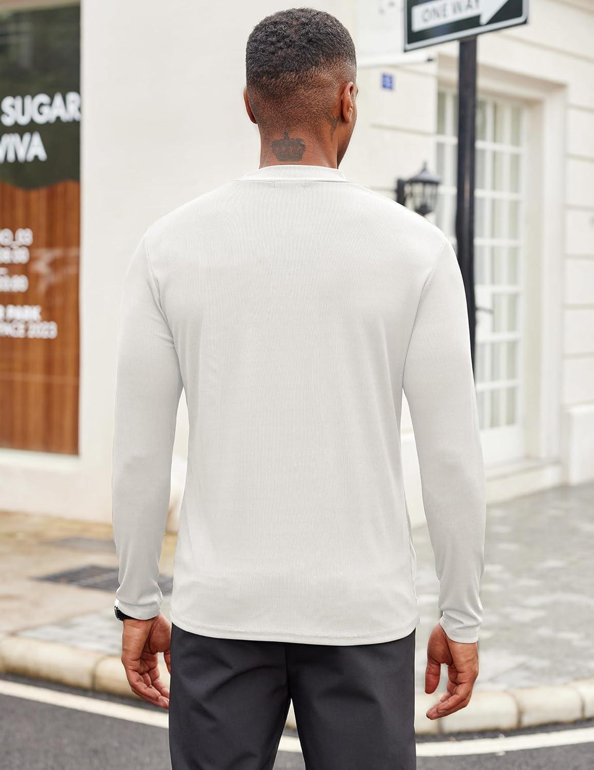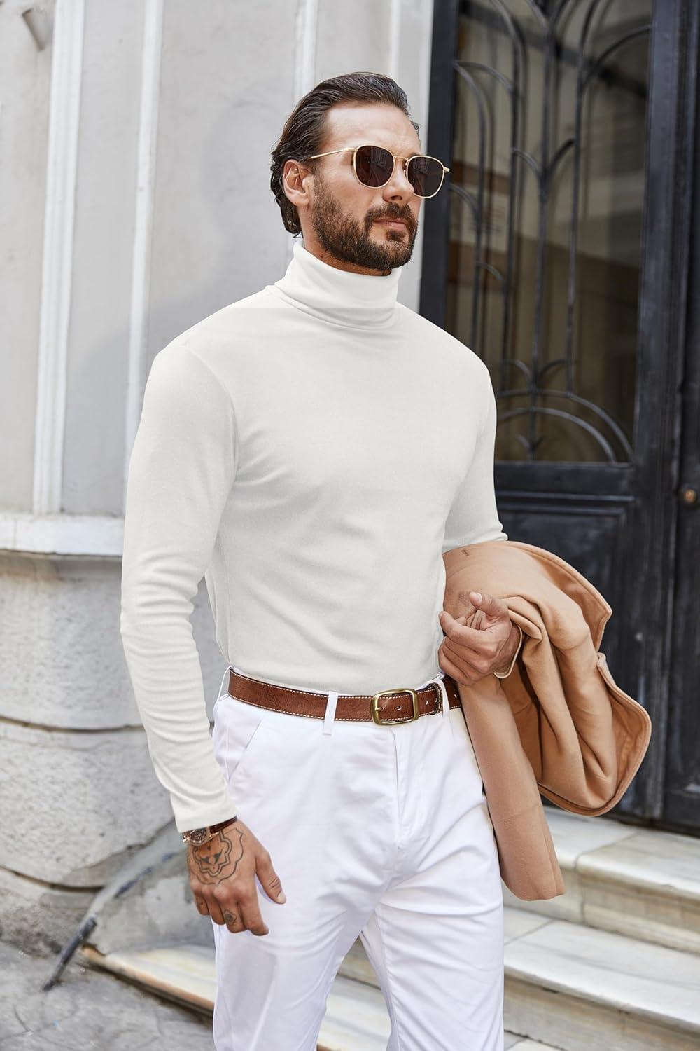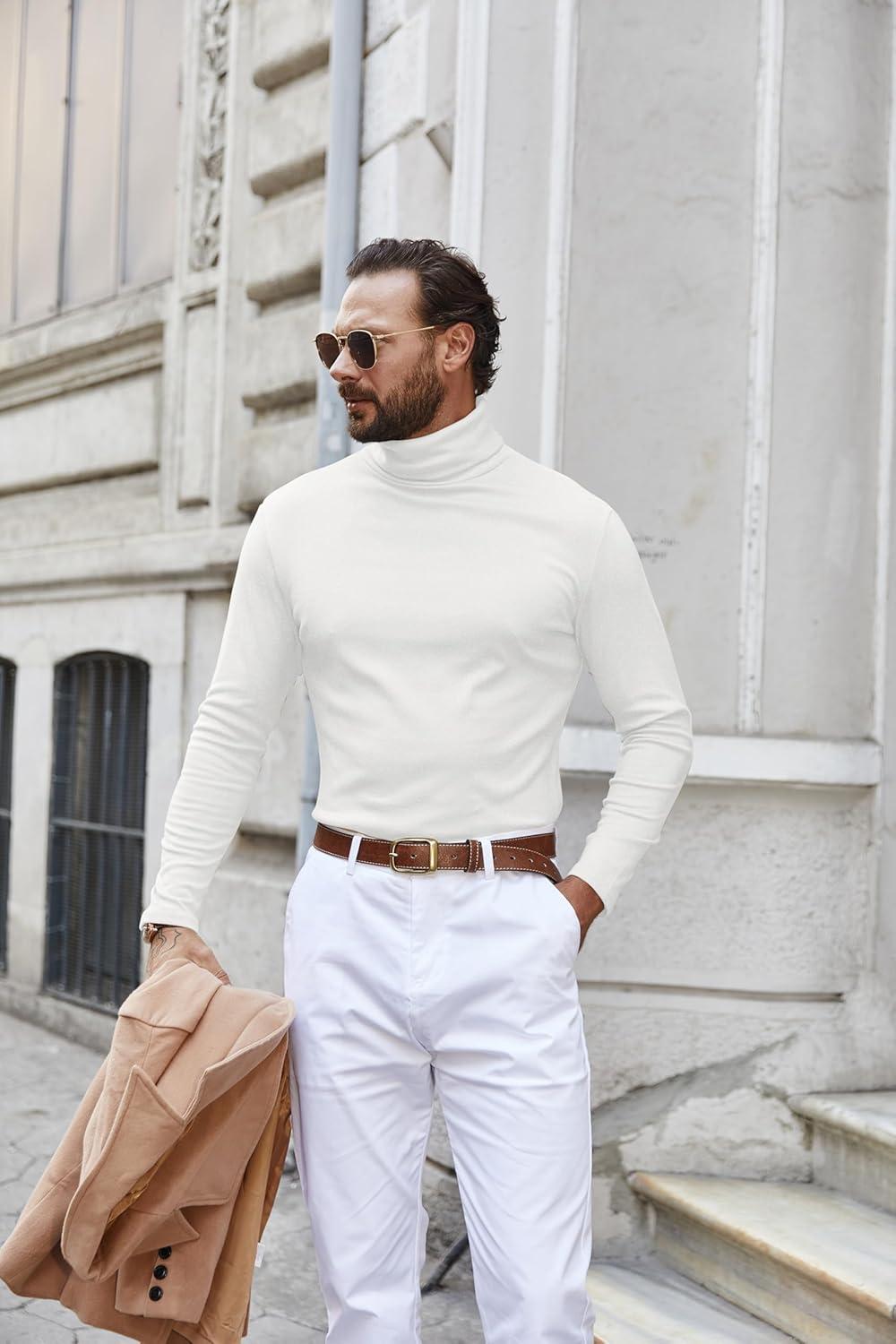 COOFANDY Men’s Turtle Neck Shirts High Neck Mock Neck T Shirts Long Sleeve Slim Fit Sweater Casual Thermal Pullover(White)