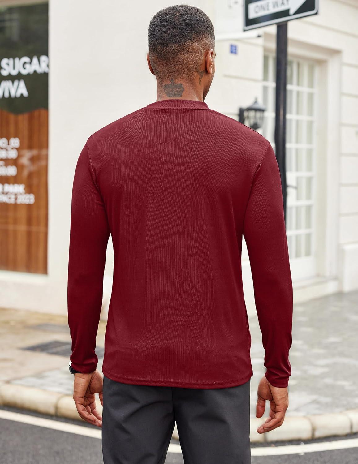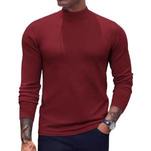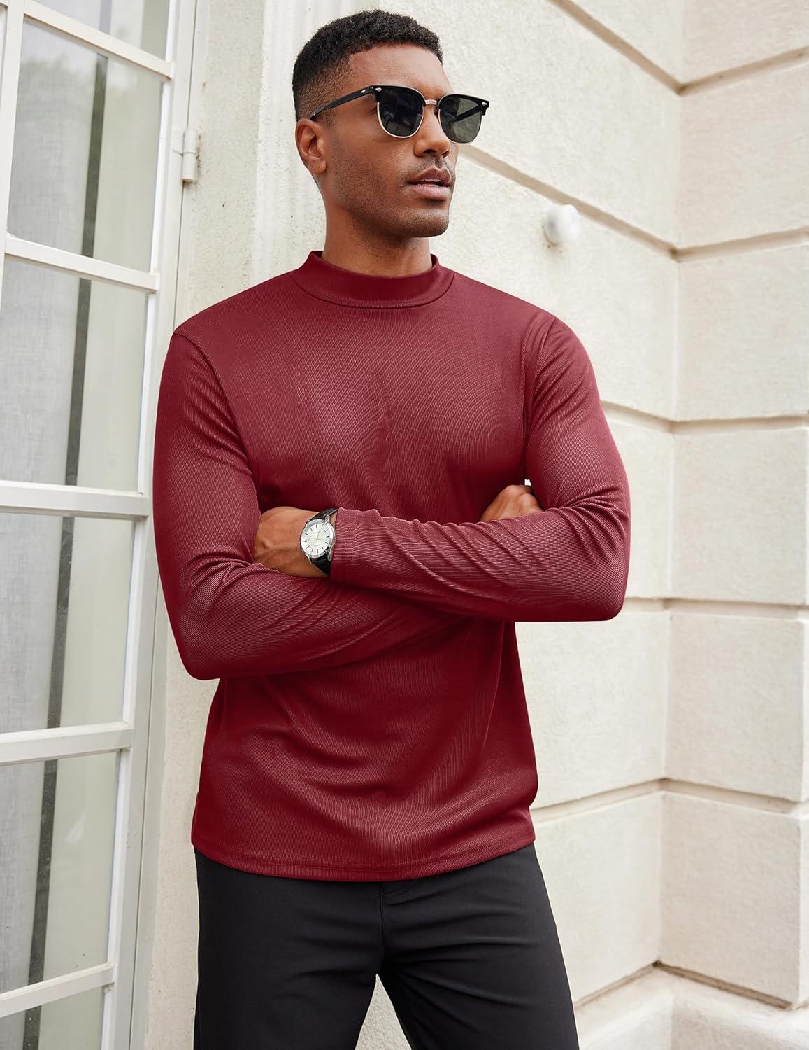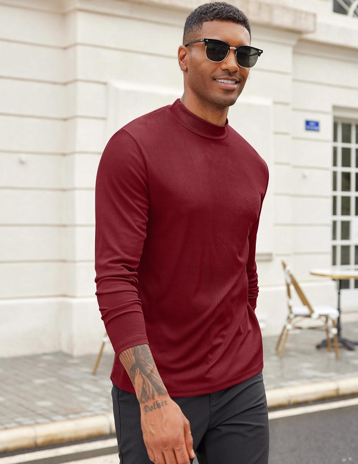 COOFANDY Men’s Mock Turtleneck Long Sleeve Shirts Slim Fit Basic T-Shirt Lightweight Ribbed Pullover Sweater(1 Pack-wine Red)