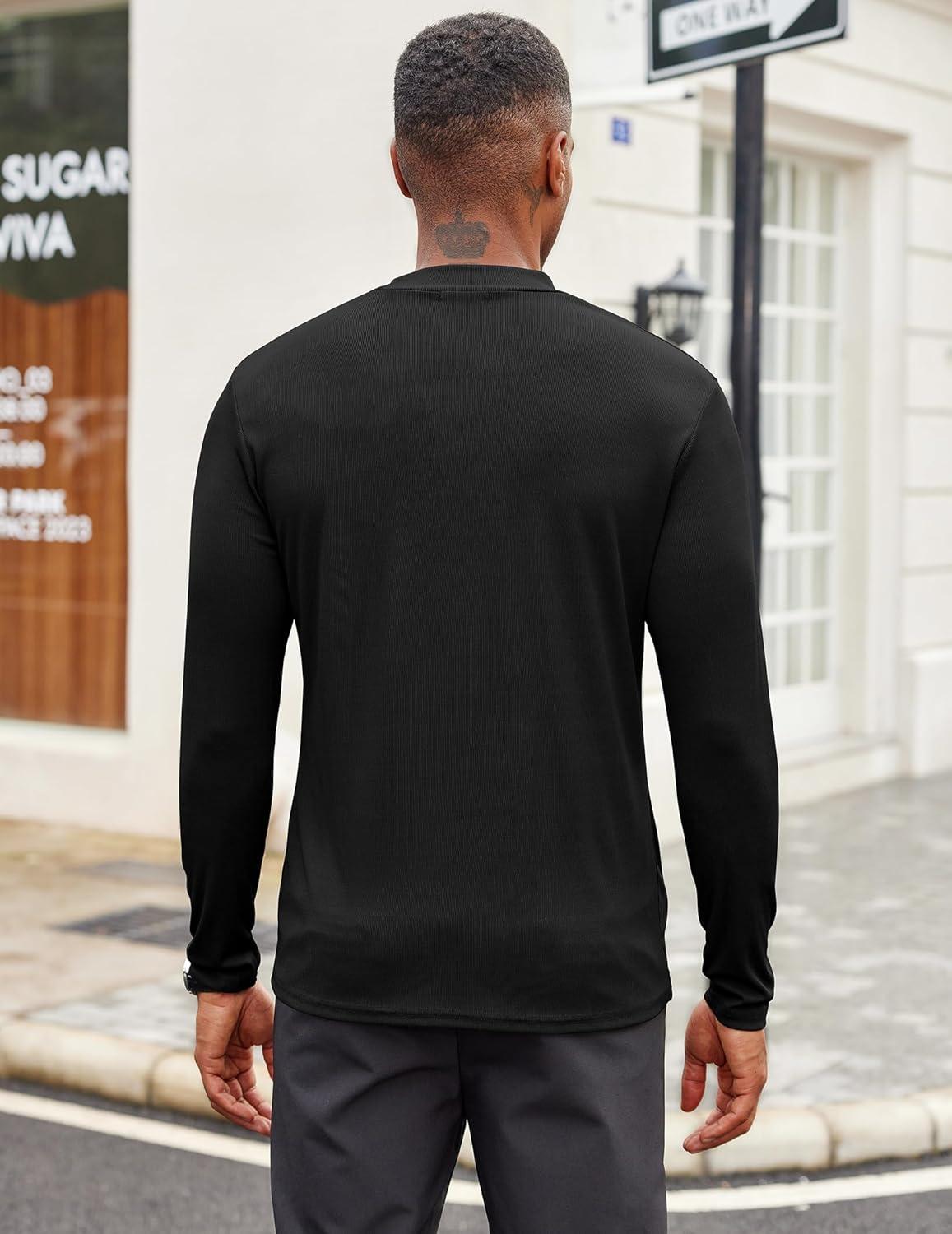 COOFANDY Men’s Mock Turtleneck Long Sleeve Shirts Slim Fit Basic T-Shirt Lightweight Ribbed Pullover Sweater(1 Pack-black)