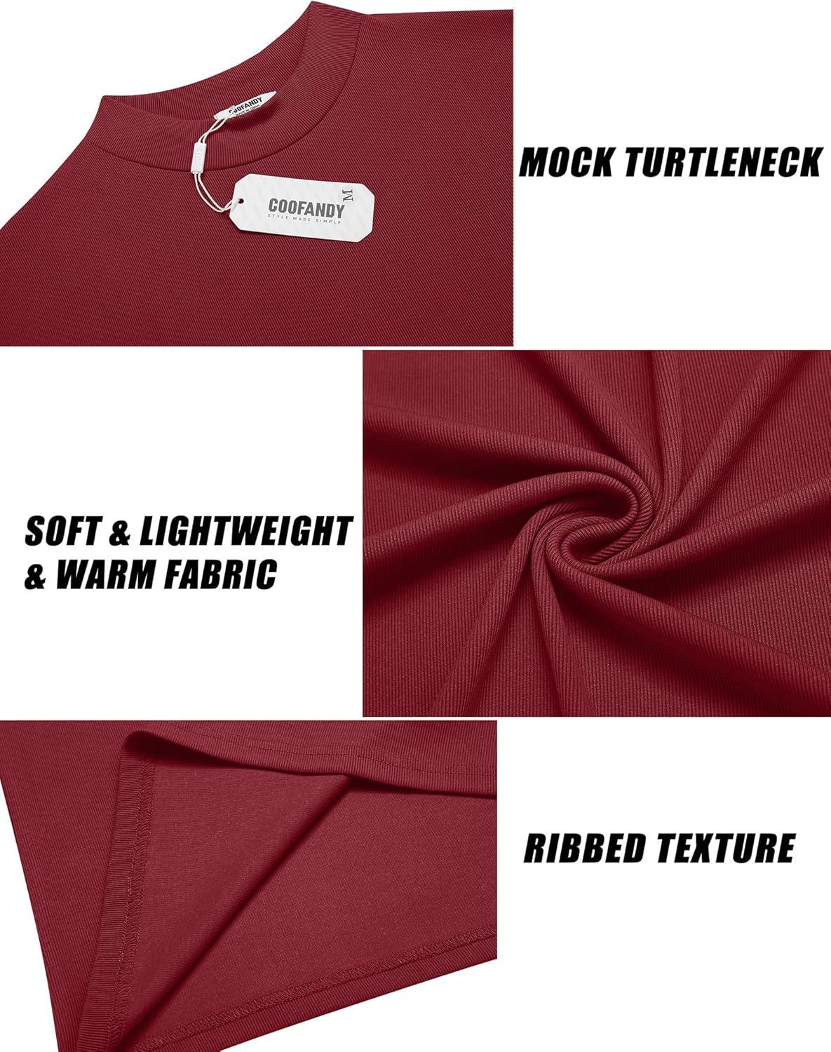 COOFANDY Men’s Mock Turtleneck Long Sleeve Shirts Slim Fit Basic T-Shirt Lightweight Ribbed Pullover Sweater(2 Pack-black & Wine Red)