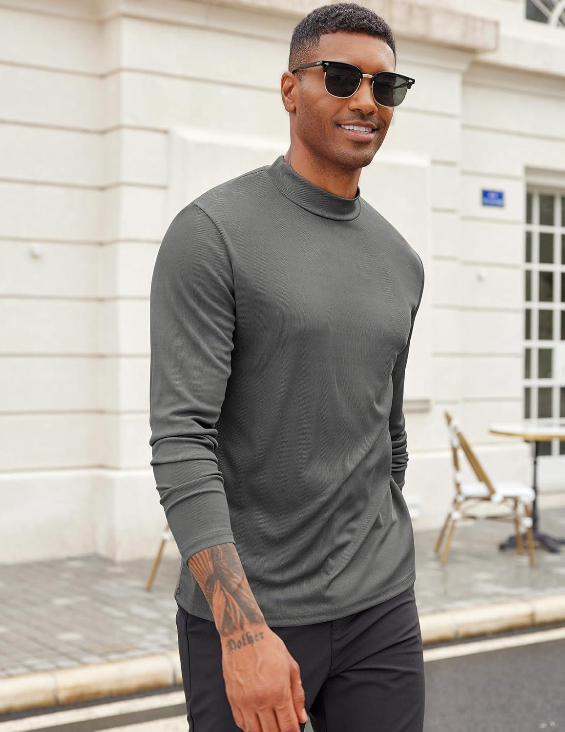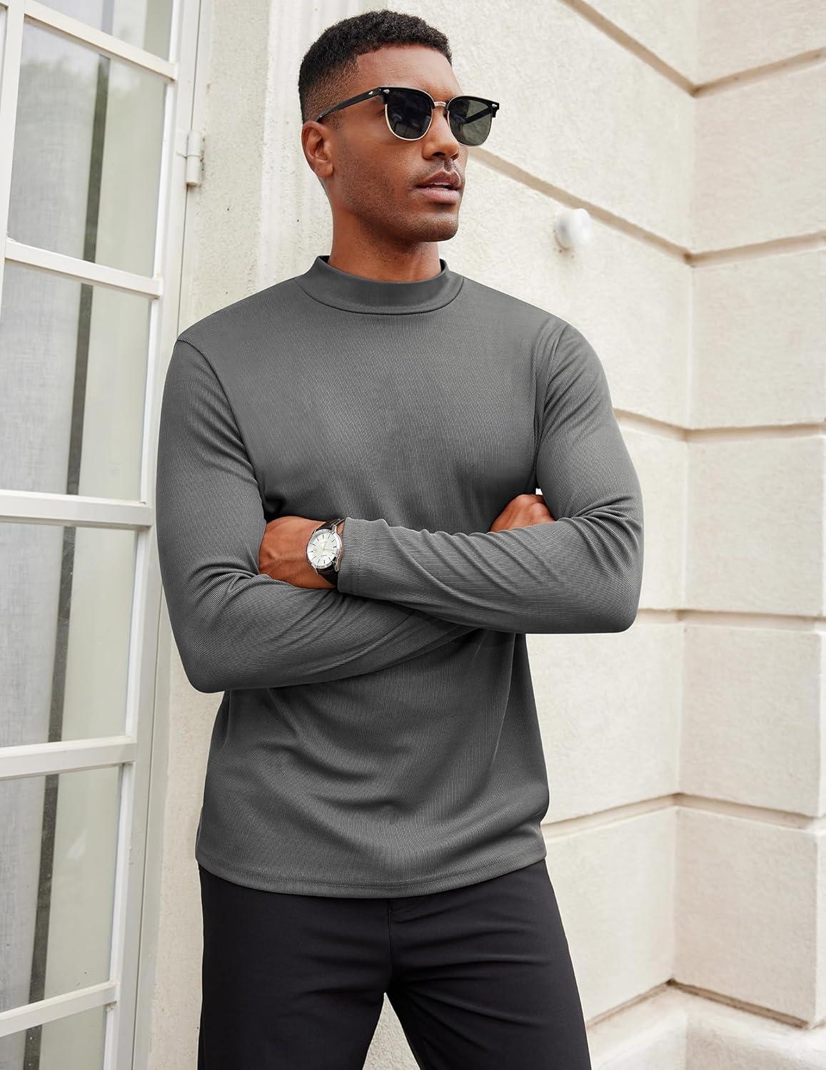 COOFANDY Mens Mock Turtleneck Long Sleeve Shirts Basic Thermal Turtle Neck Undershirt Lightweight Pullover Sweaters Top(Dark Gray)