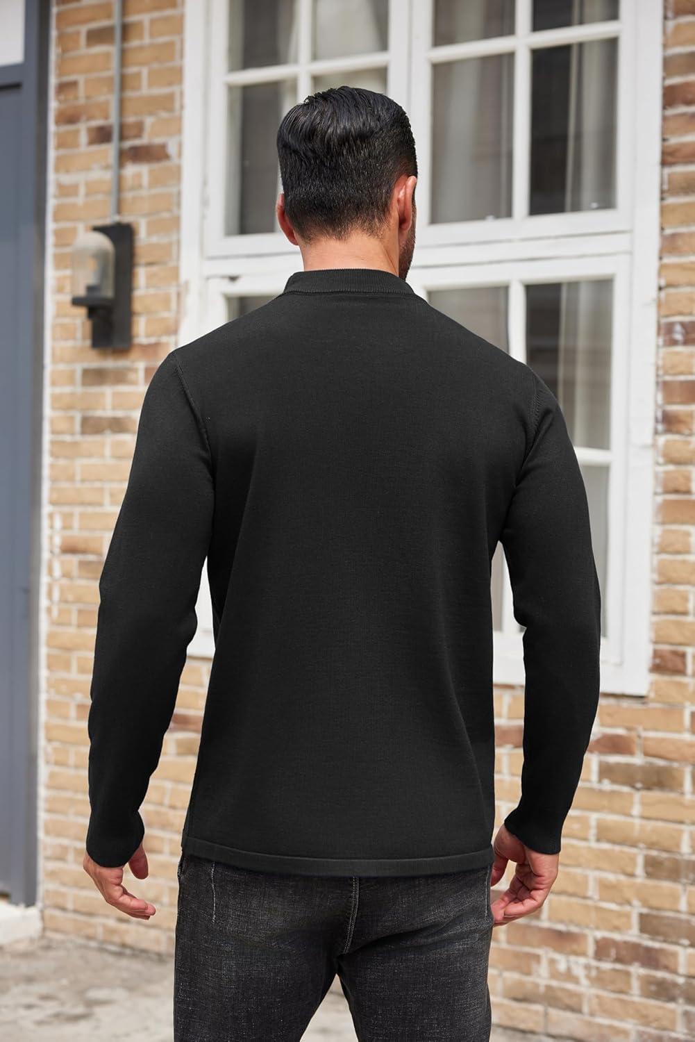 COOFANDY Men’s Mock Turtleneck Sweaters Long Sleeve Casual Knit Shirts Half Neck Thermal Lightweight Pullover Sweater(01-black)