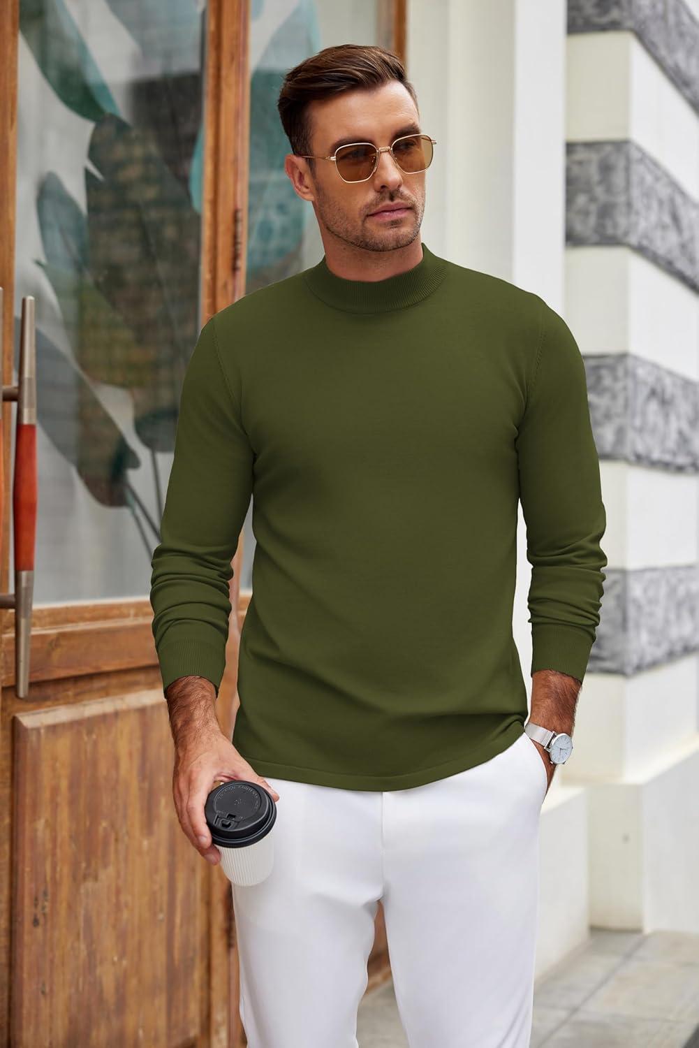 COOFANDY Men’s Slim Fit Mock Turtleneck Pullover Sweater Casual Basic Knitted Thermal Sweaters(Army Green)