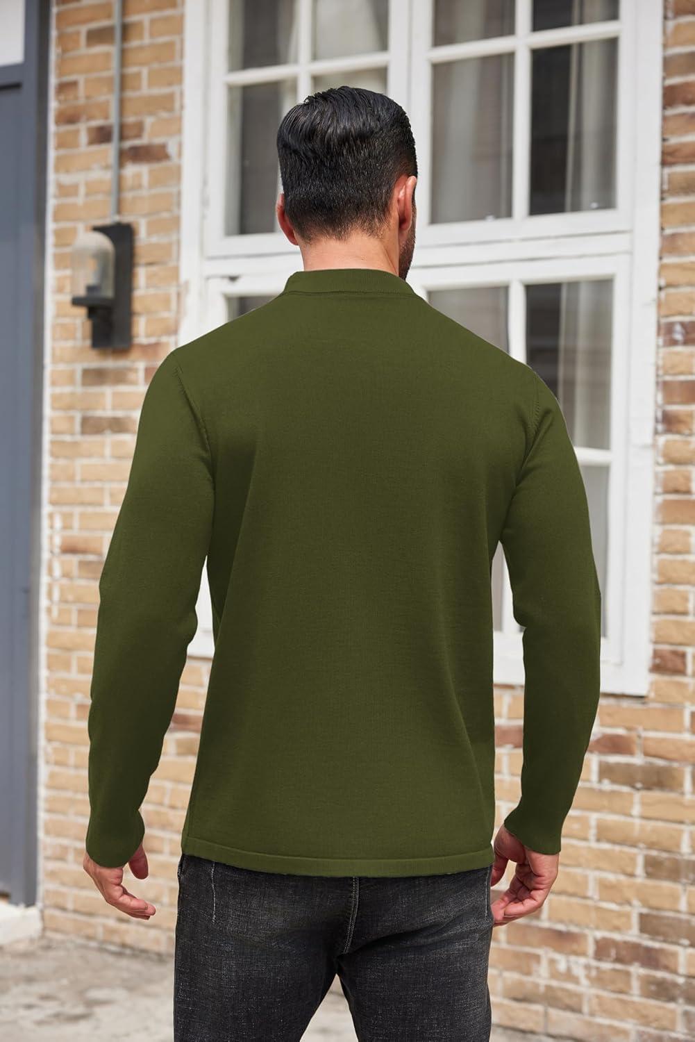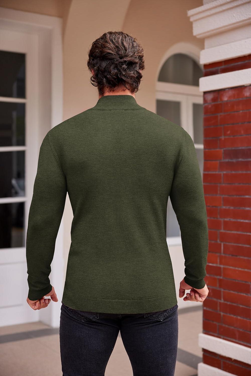 COOFANDY Men’s Mock Turtleneck Sweaters Long Sleeve Casual Knit Shirts Half Neck Thermal Lightweight Pullover Sweater(Army Green)