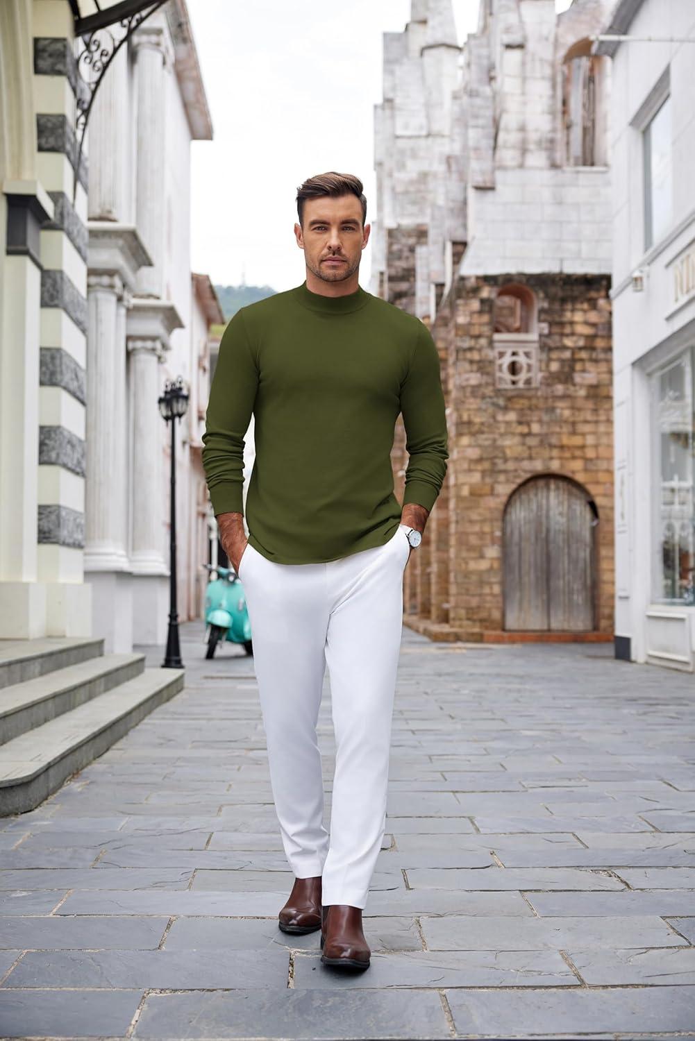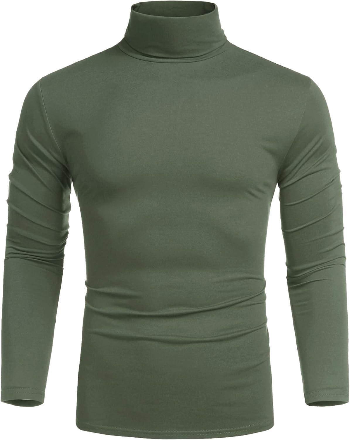 COOFANDY Mens Mock Turtleneck Long Sleeve Shirts Basic Thermal Turtle Neck Undershirt Lightweight Pullover Sweaters Top(Army Green)