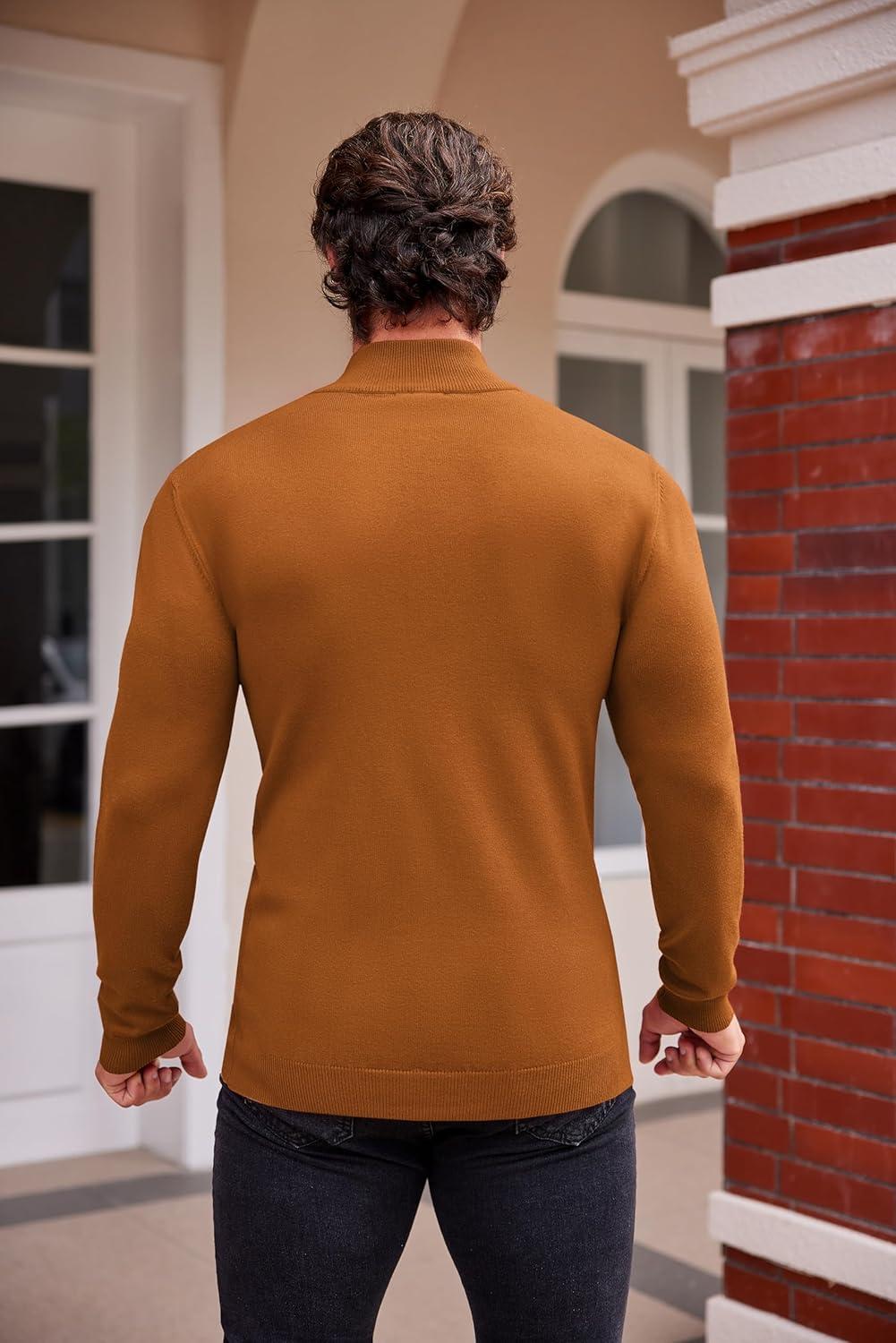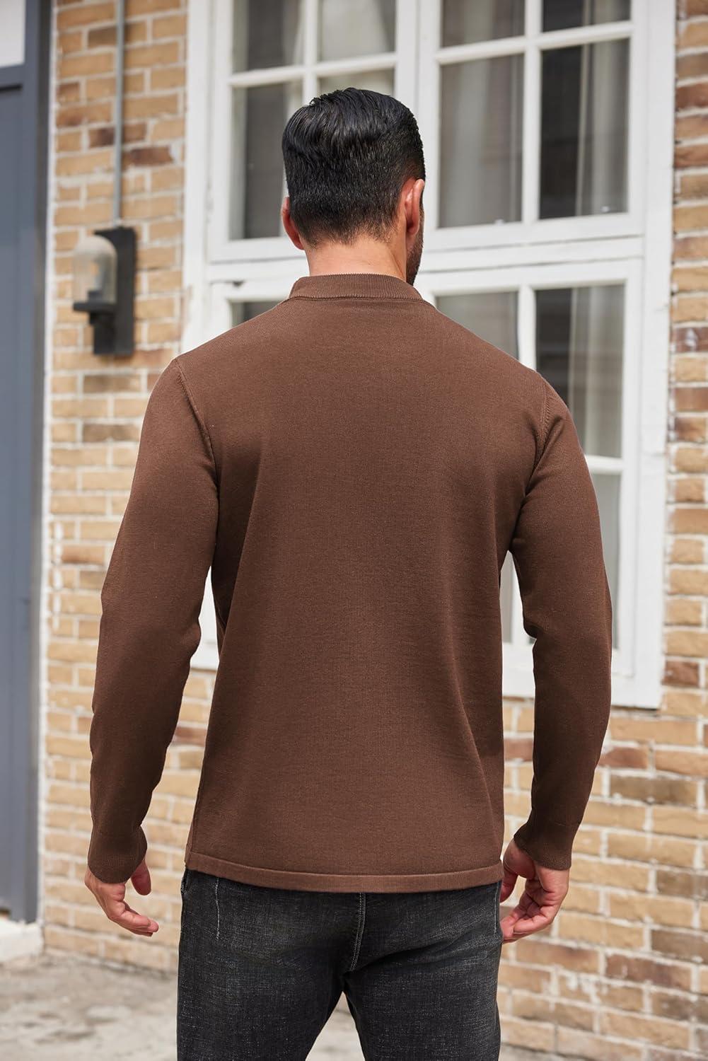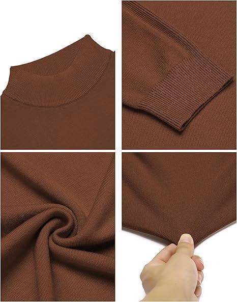 COOFANDY Men’s Mock Turtleneck Sweaters Long Sleeve Casual Knit Shirts Half Neck Thermal Lightweight Pullover Sweater(Brown)