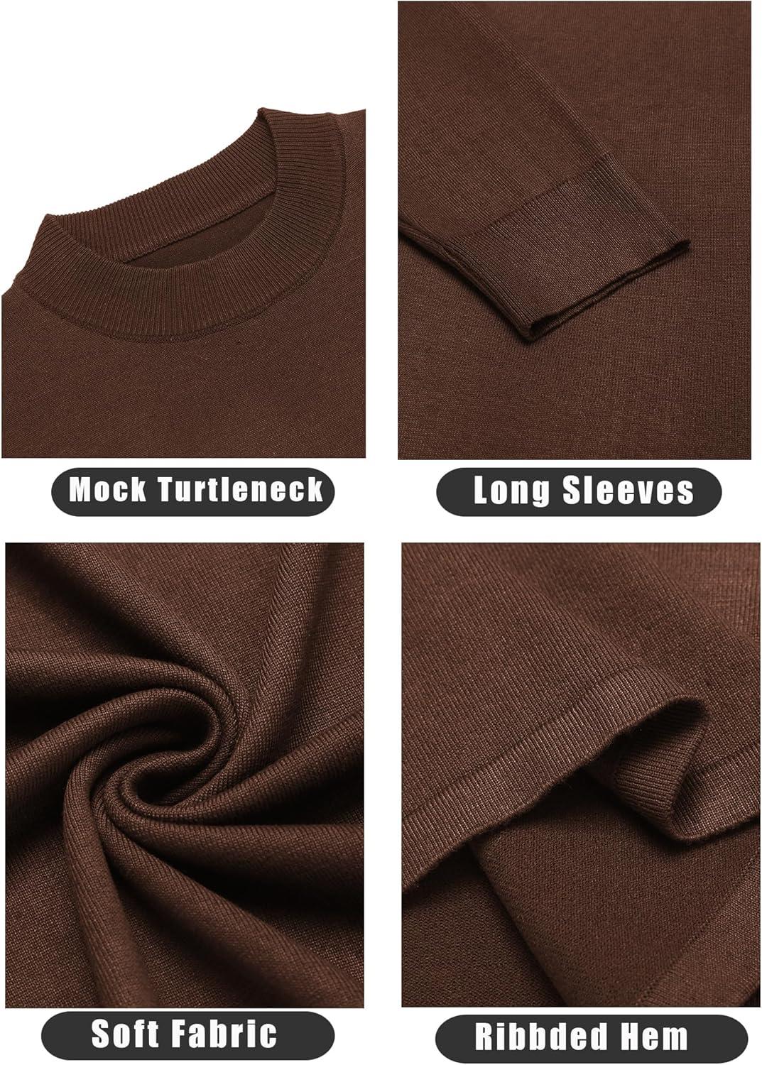 COOFANDY Mens Mock Turtleneck Slim Fit Pullover Sweater Casual Basic Knitted Thermal Sweaters(Brown)