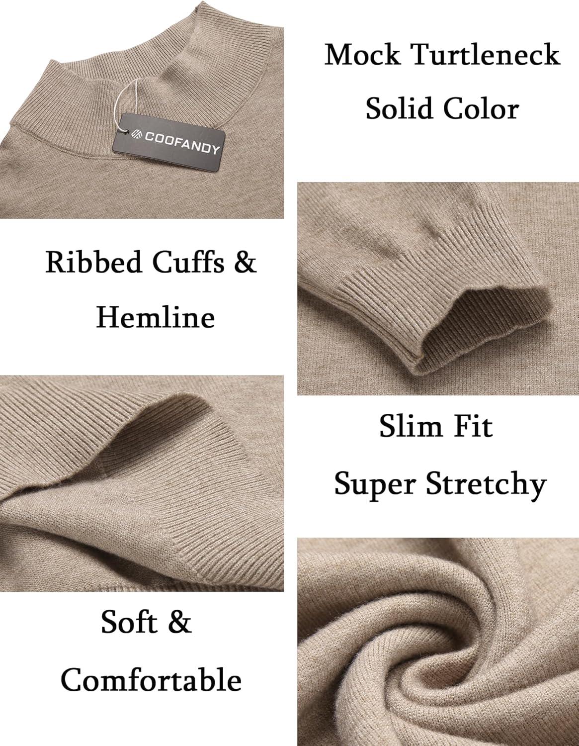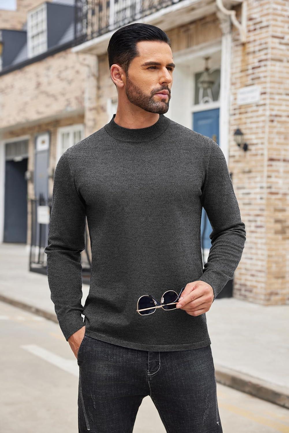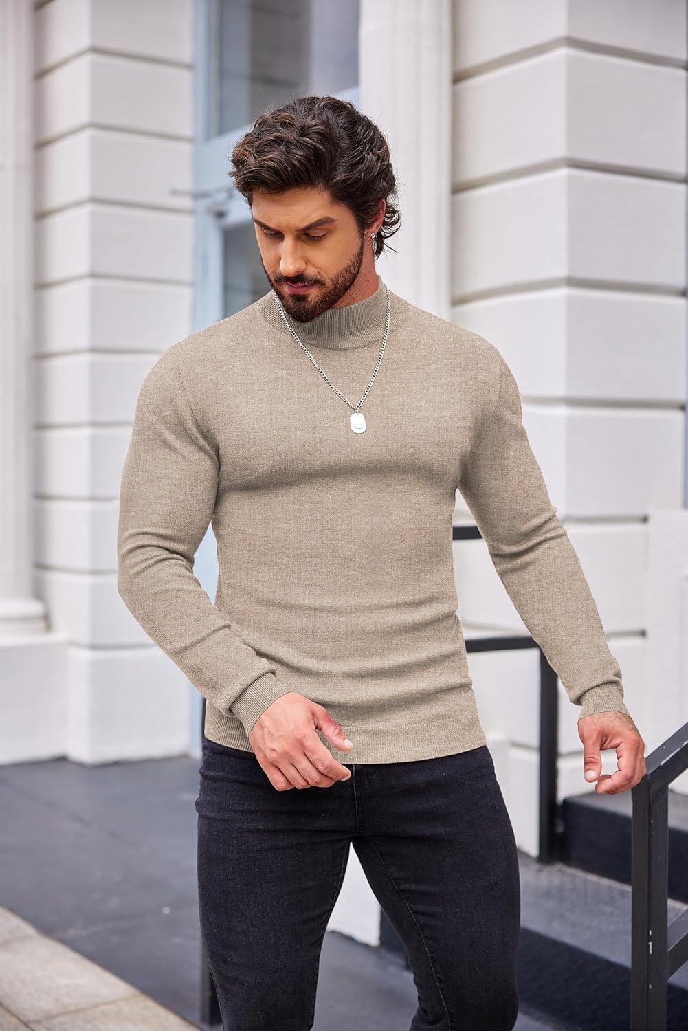 COOFANDY Men’s Slim Fit Mock Turtleneck Pullover Sweater Casual Basic Knitted Thermal Sweaters