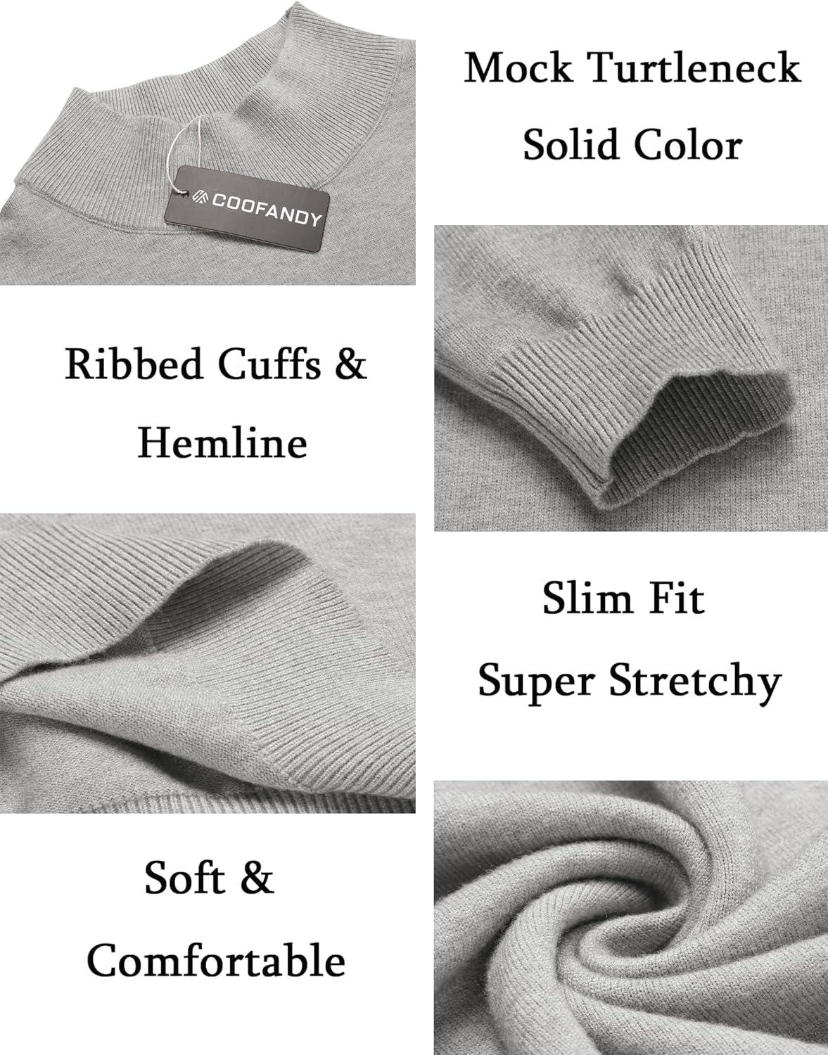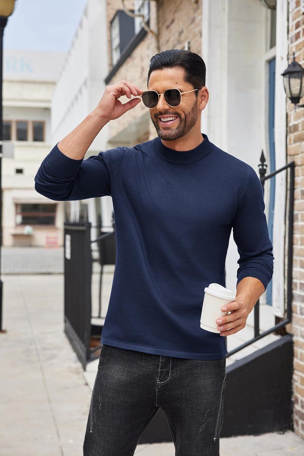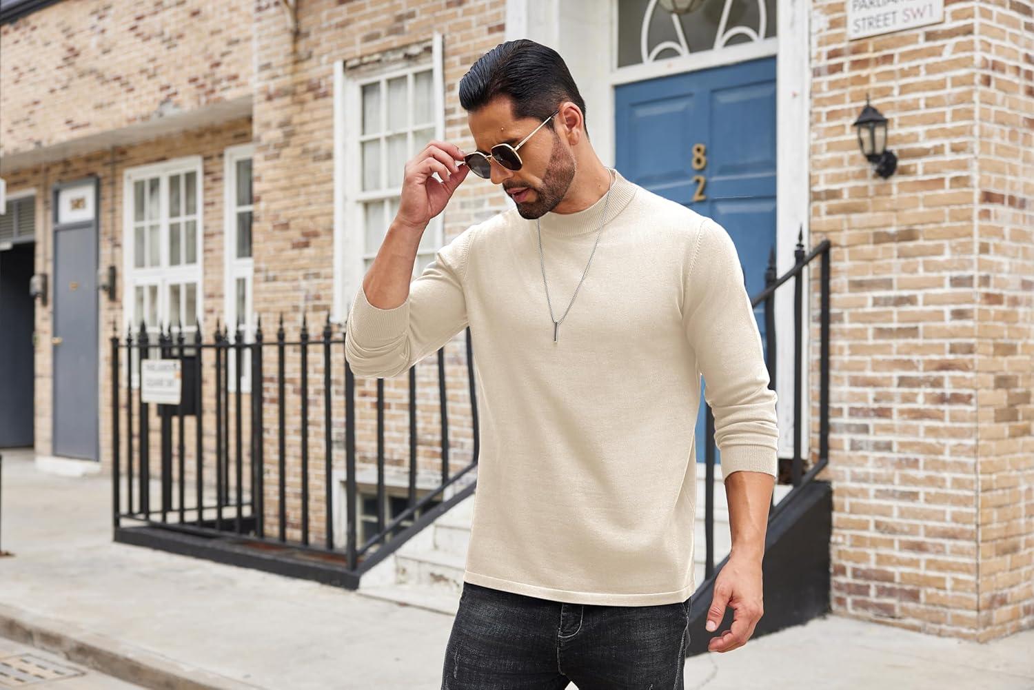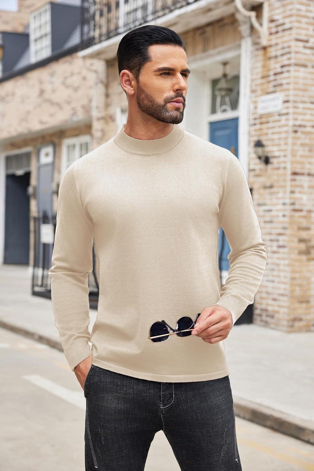 COOFANDY Men’s Slim Fit Mock Turtleneck Pullover Sweater Casual Basic Knitted Thermal Sweaters