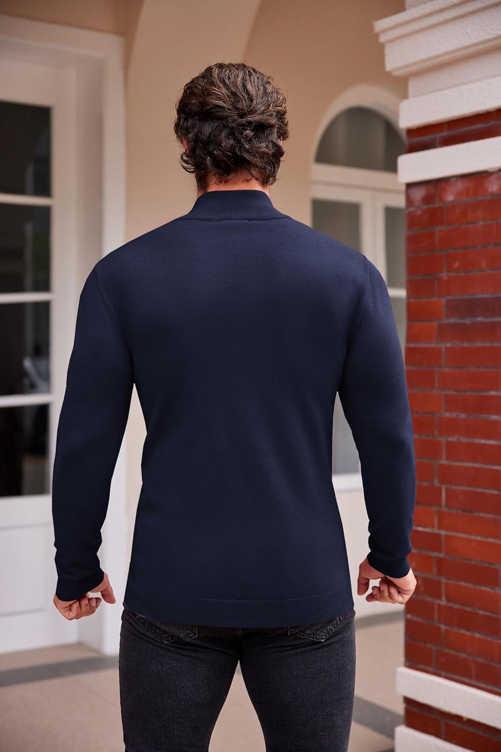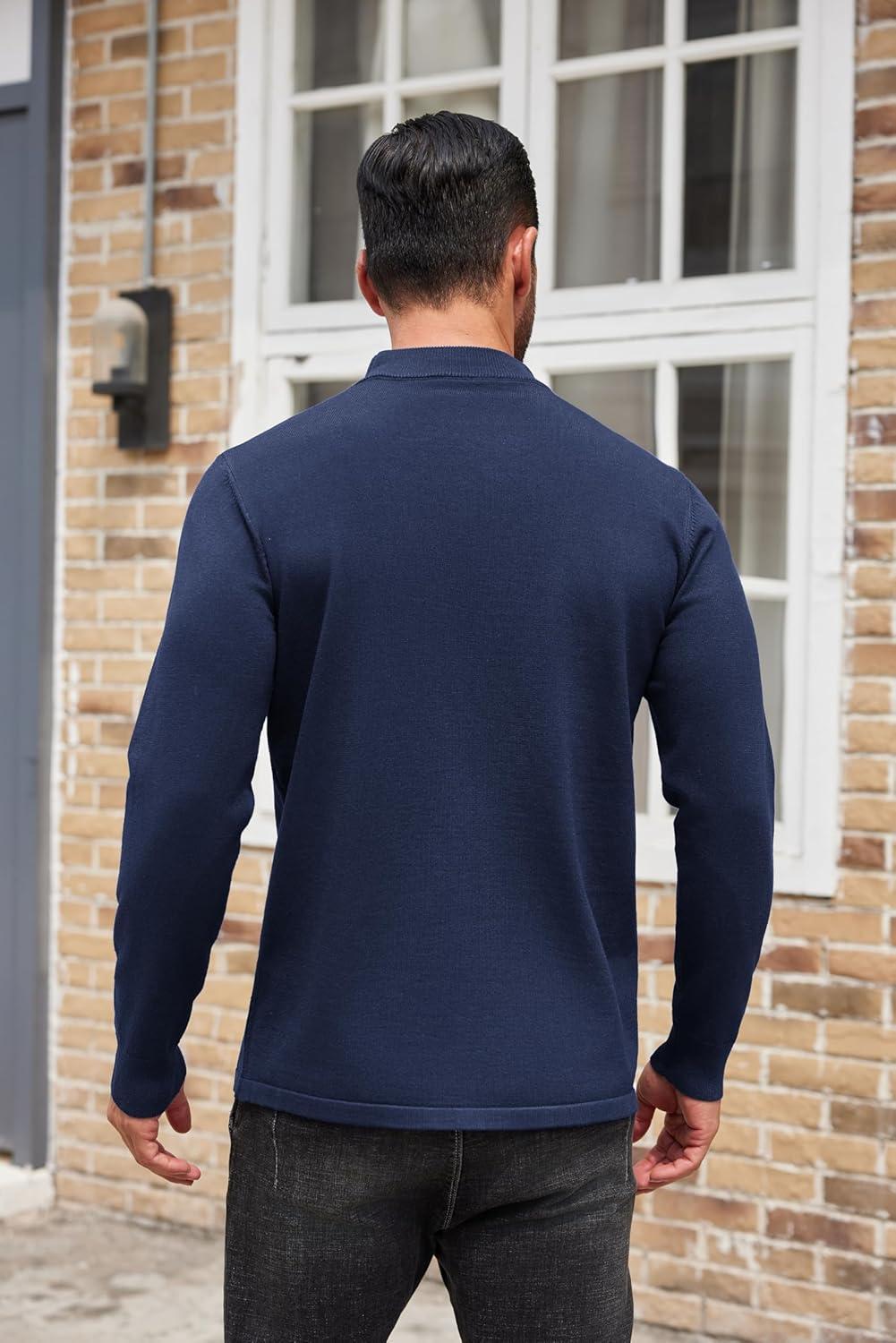COOFANDY Men’s Mock Turtleneck Sweaters Long Sleeve Casual Knit Shirts Half Neck Thermal Lightweight Pullover Sweater(Dark Blue)