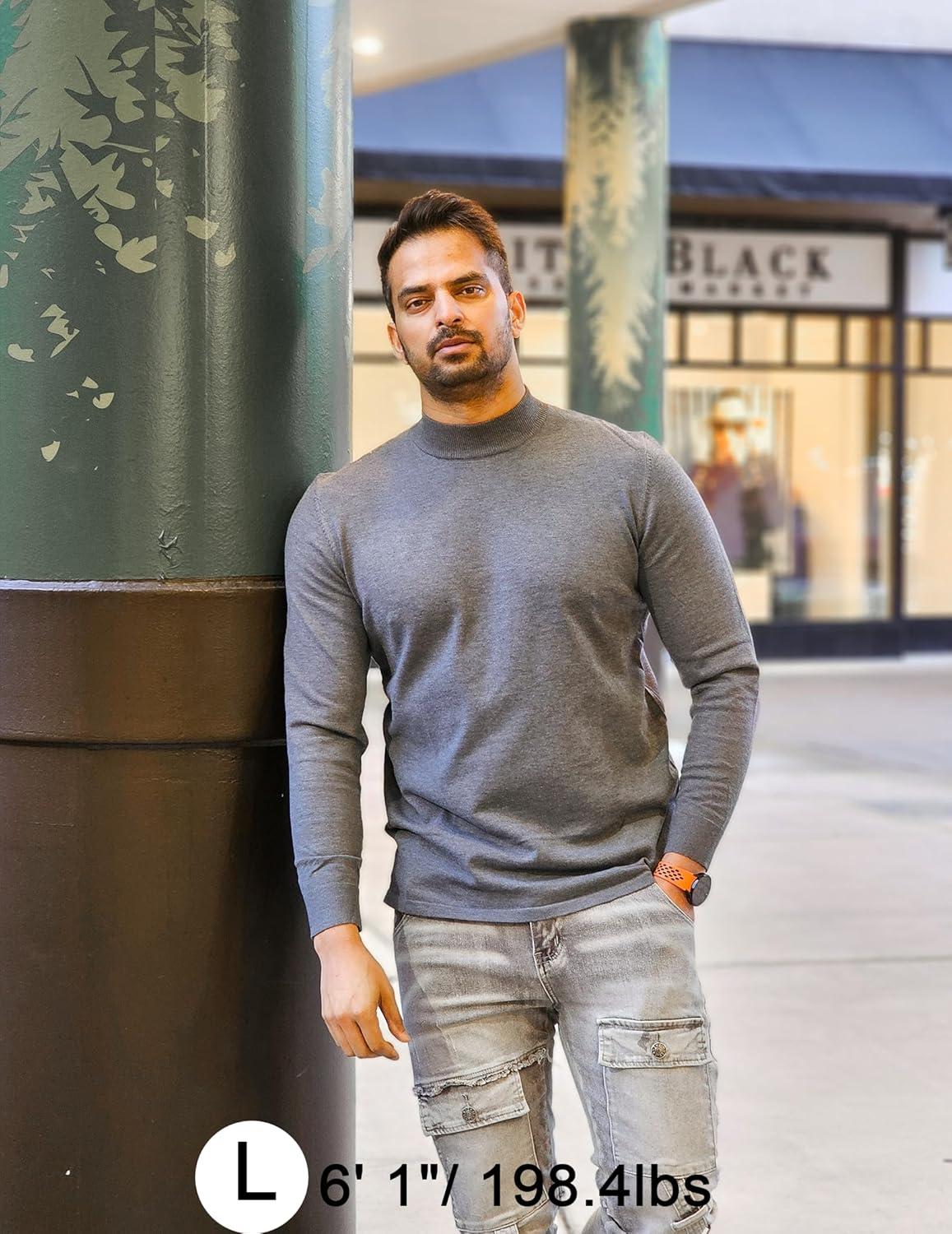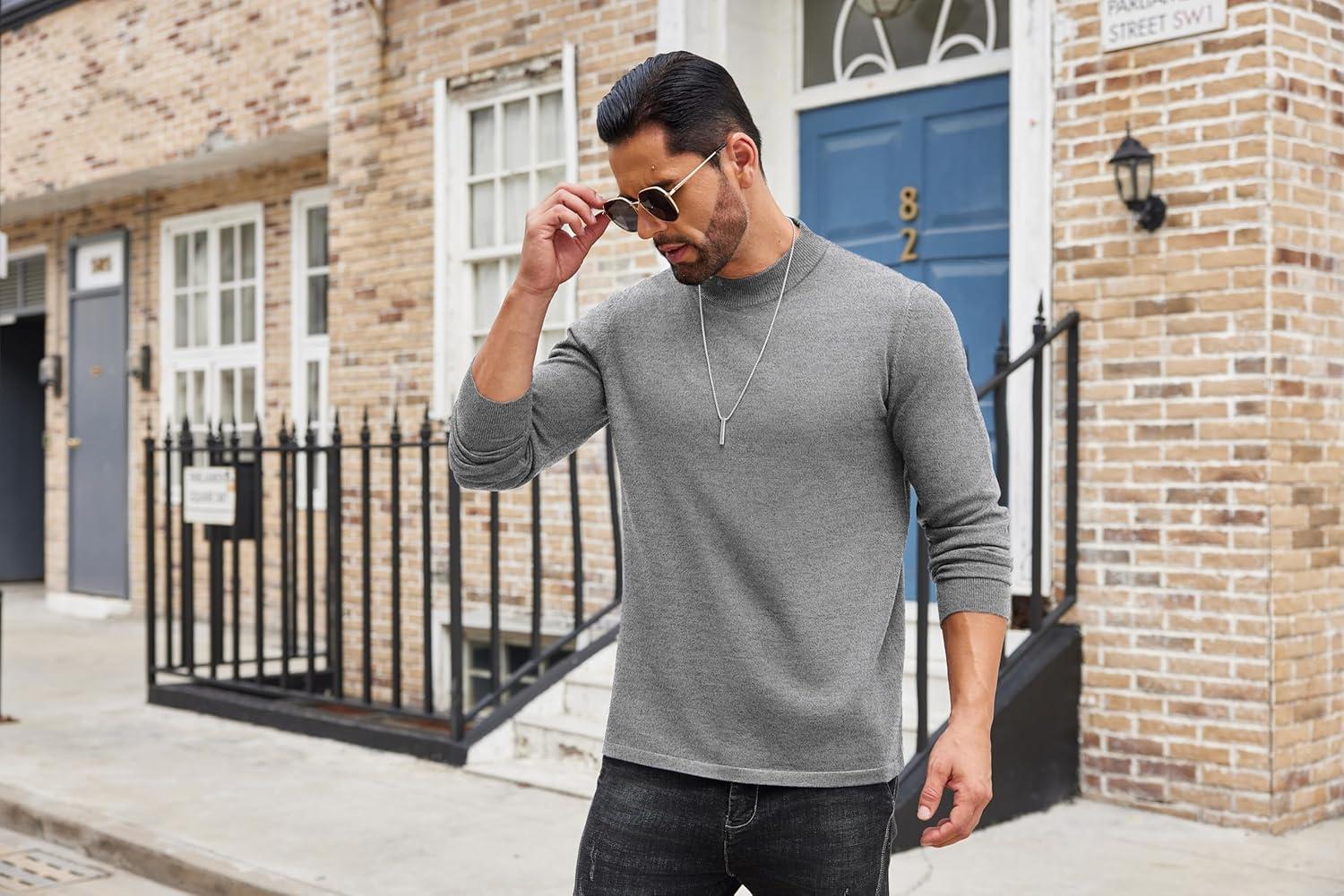 COOFANDY Men’s Slim Fit Mock Turtleneck Pullover Sweater Casual Basic Knitted Thermal Sweaters(Grey)