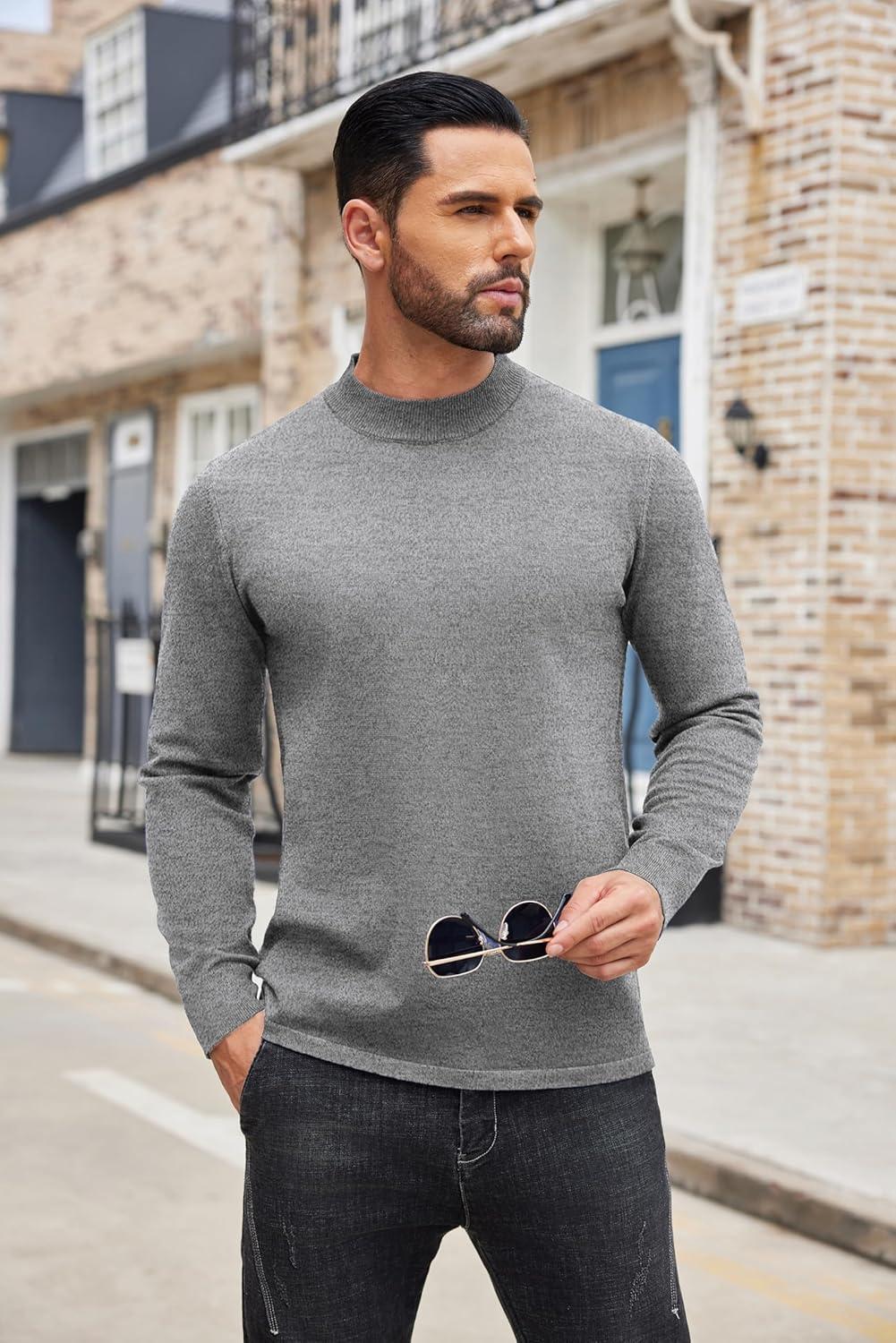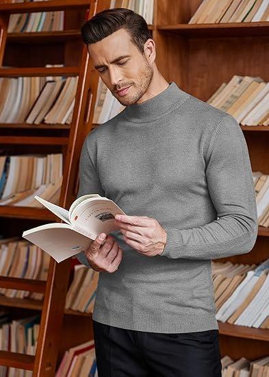 COOFANDY Mens Mock Turtleneck Slim Fit Pullover Sweater Casual Basic Knitted Thermal Sweaters(Grey)
