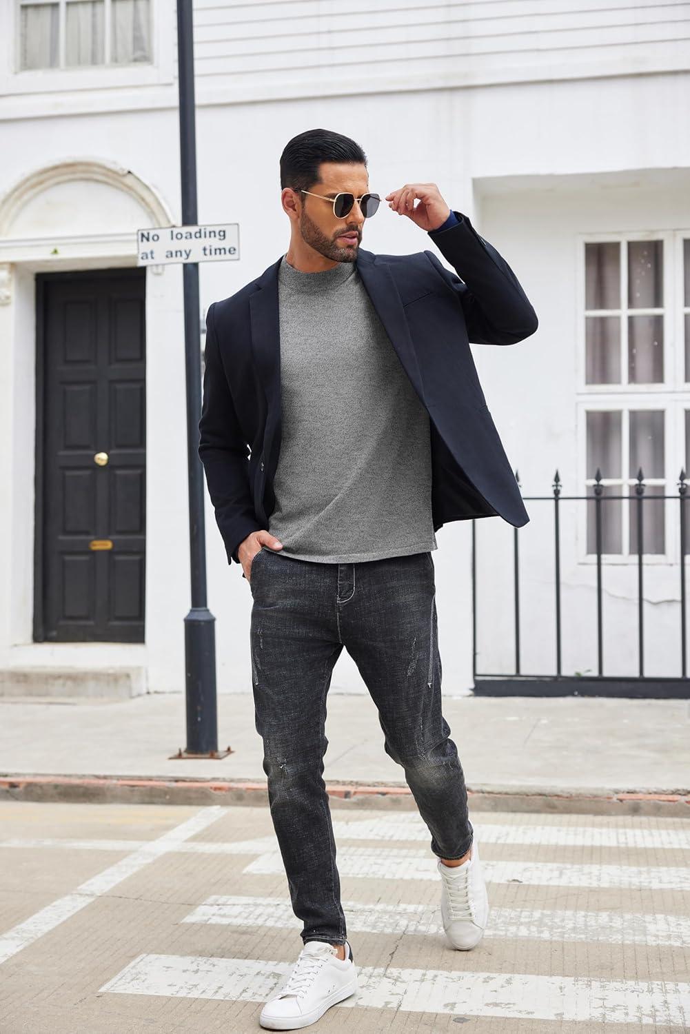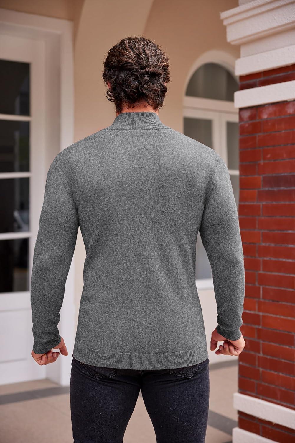 COOFANDY Men’s Mock Turtleneck Sweaters Long Sleeve Casual Knit Shirts Half Neck Thermal Lightweight Pullover Sweater(Grey)