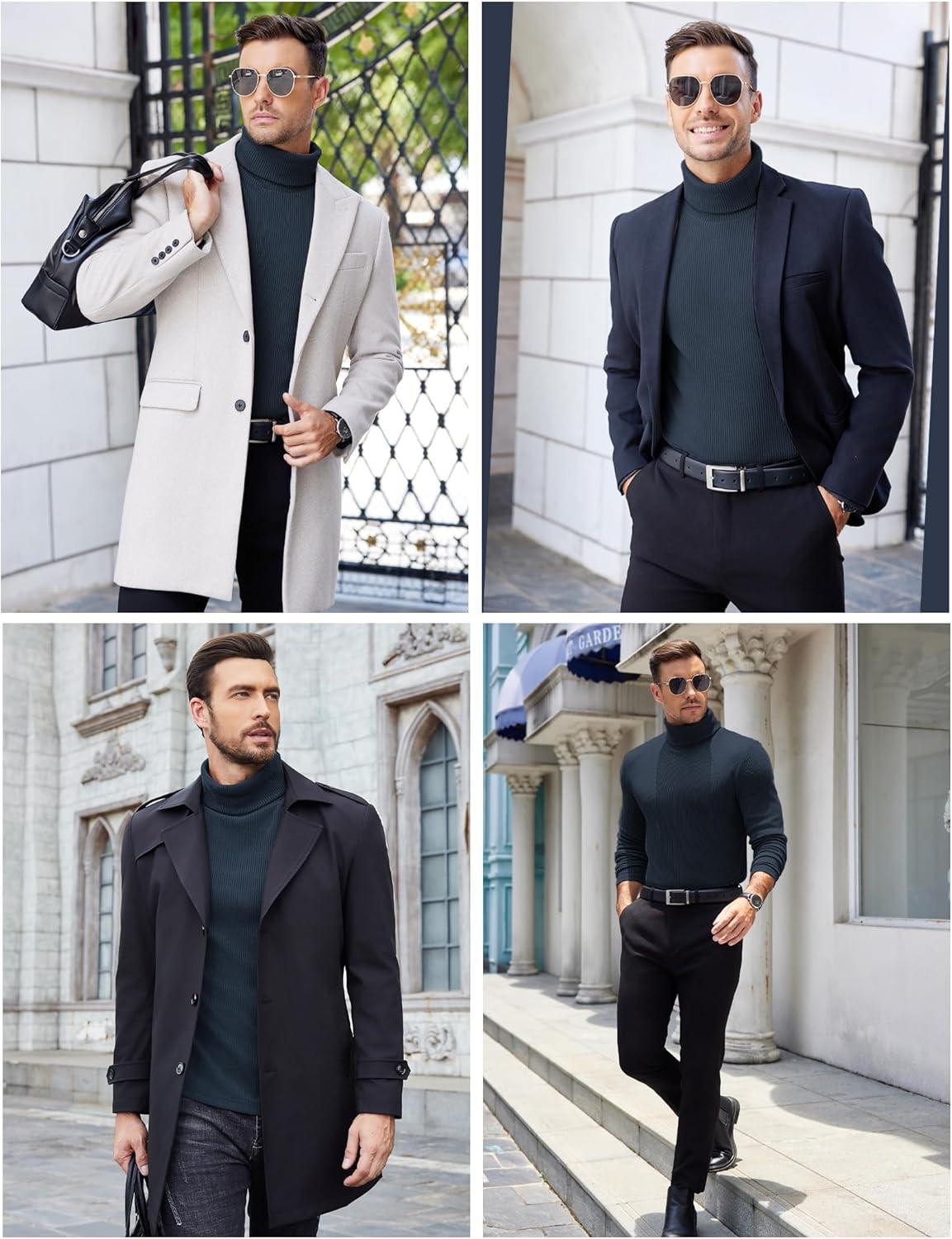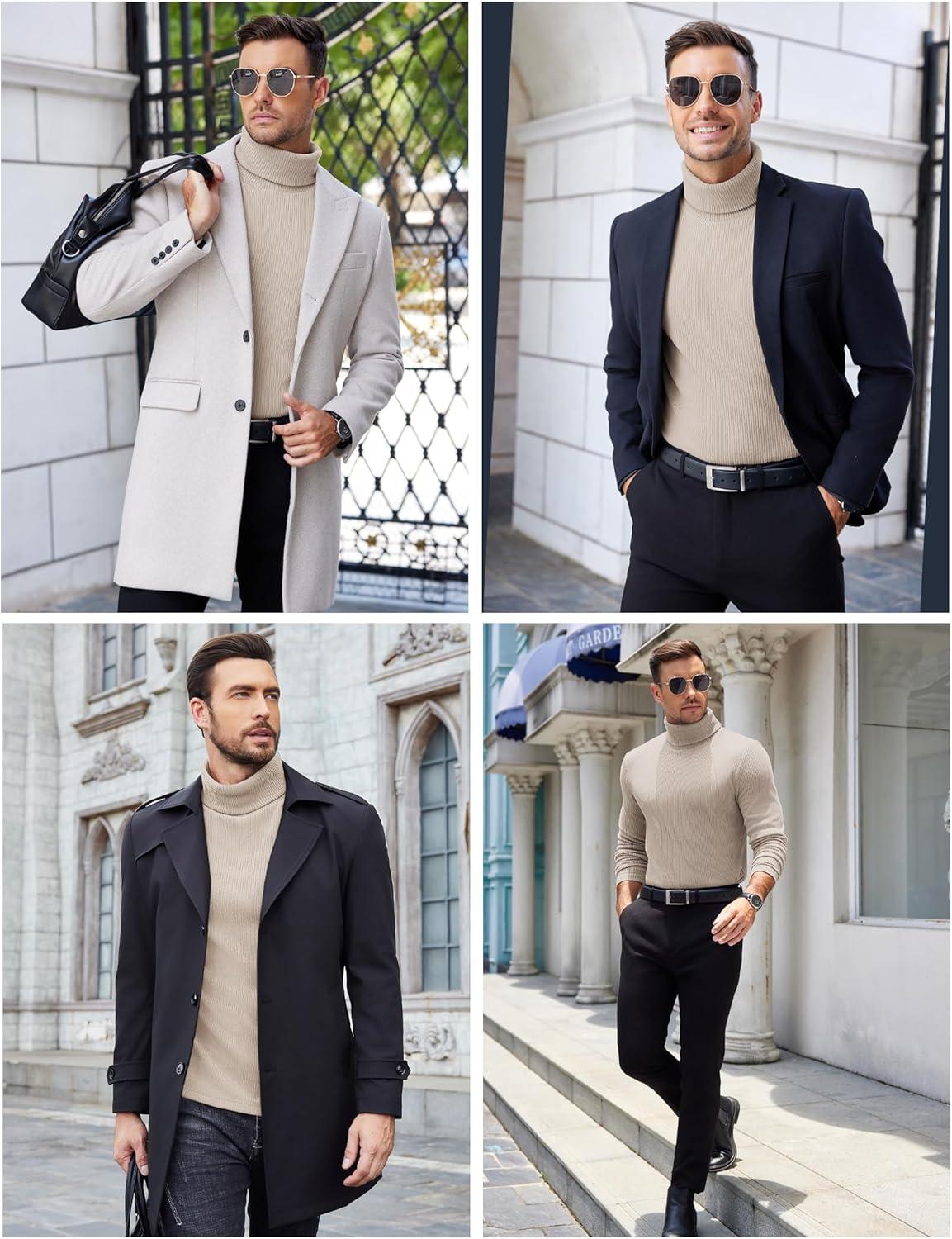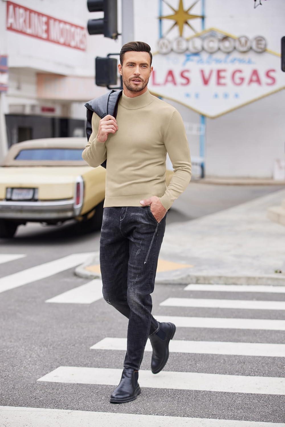 COOFANDY Men’s Slim Fit Basic Turtleneck Long Sleeve Lightweight Pullover Sweaters Casual Knitted Tops