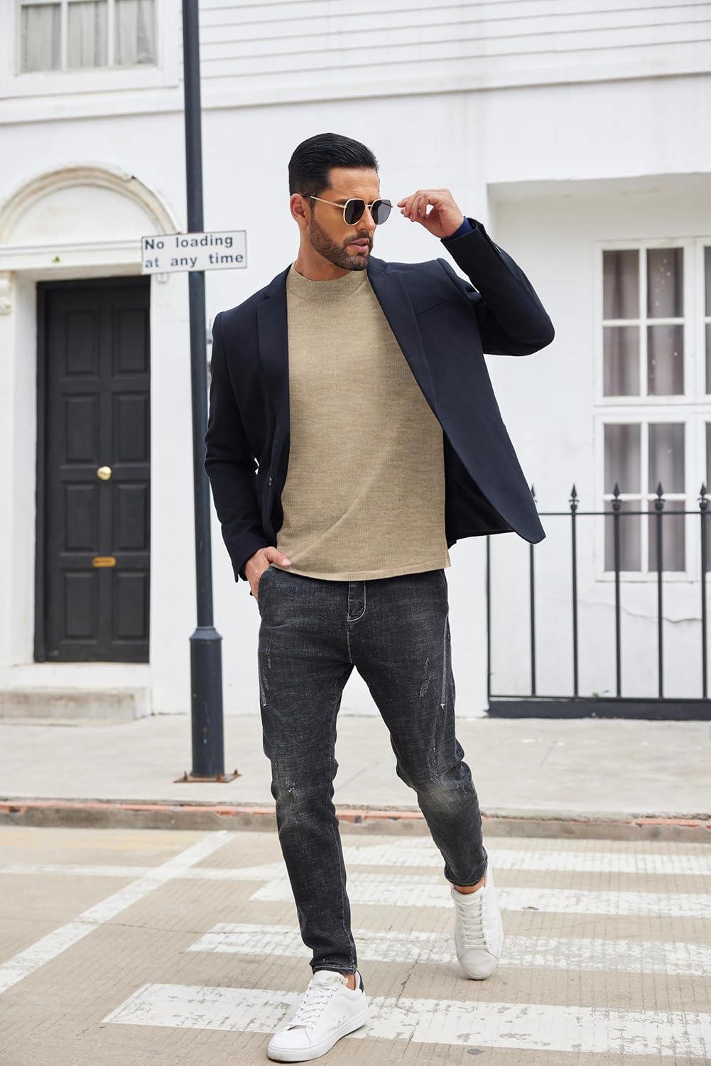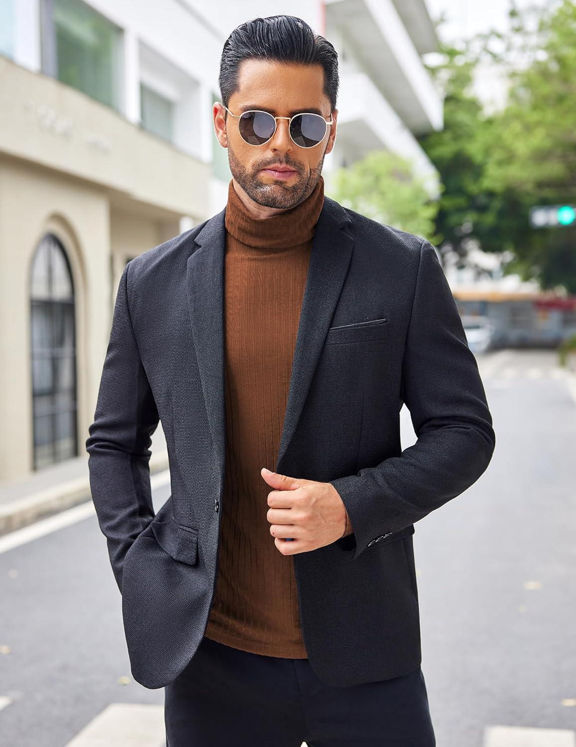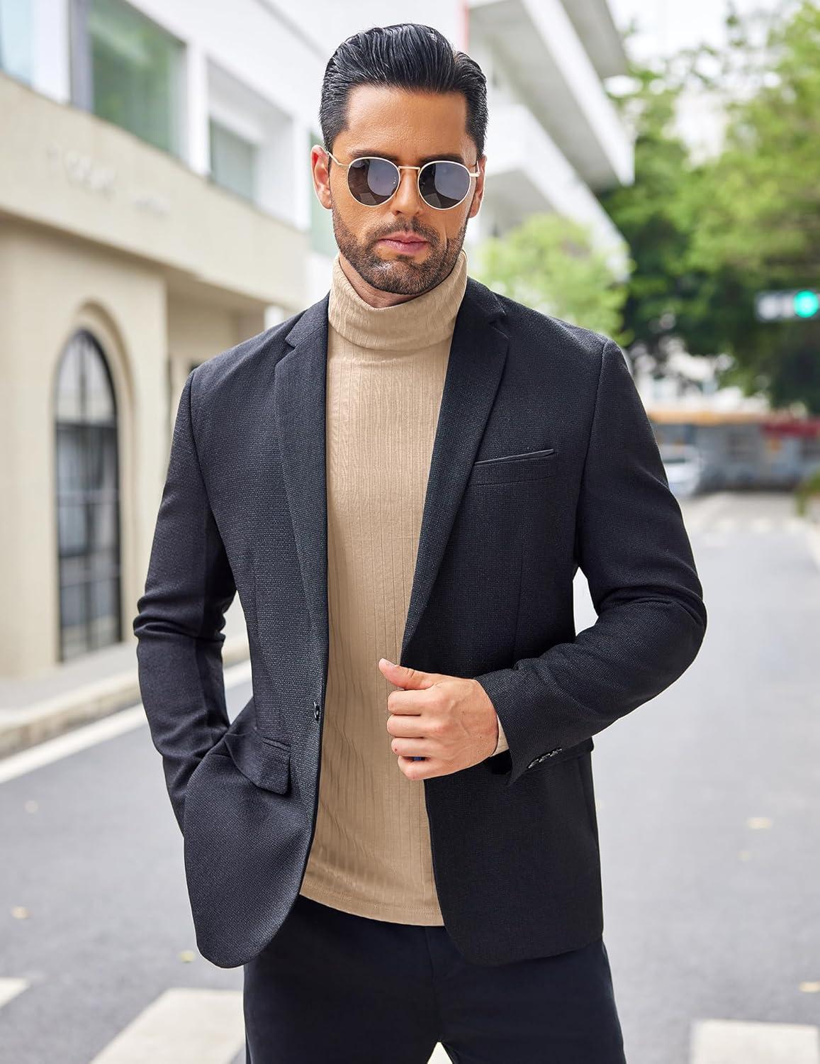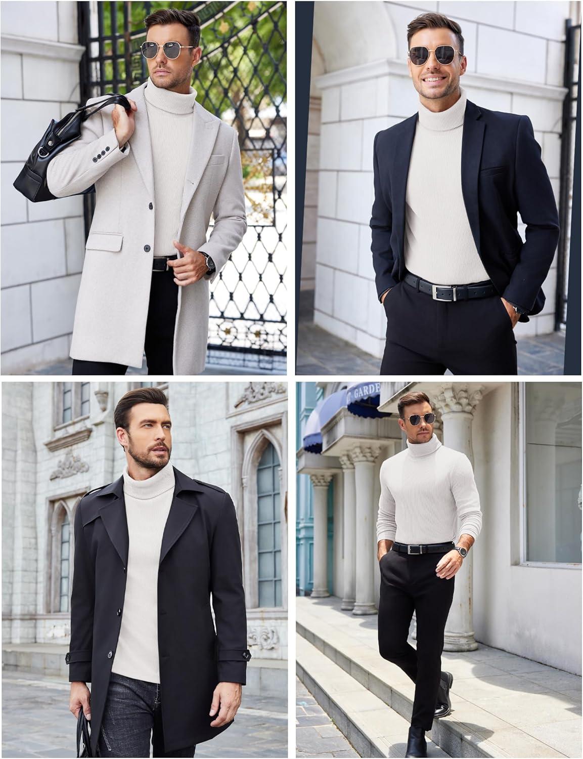 COOFANDY Men’s Slim Fit Basic Turtleneck Long Sleeve Lightweight Pullover Sweaters Casual Knitted Tops