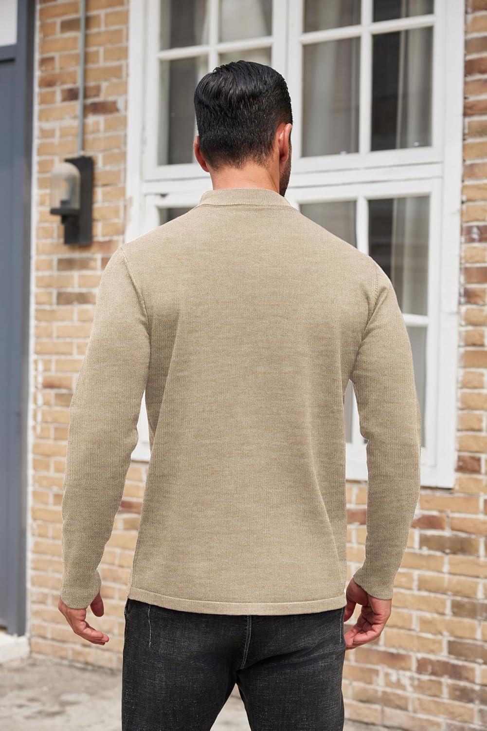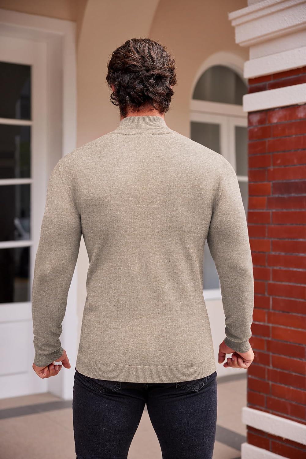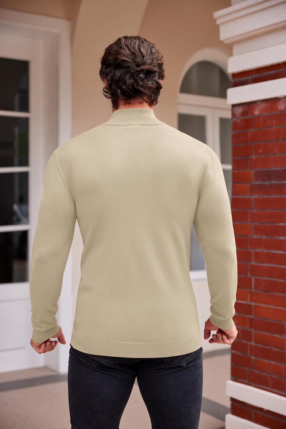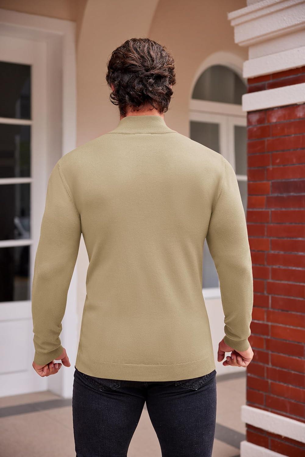 COOFANDY Men’s Mock Turtleneck Sweaters Long Sleeve Casual Knit Shirts Half Neck Thermal Lightweight Pullover Sweater(Khaki)