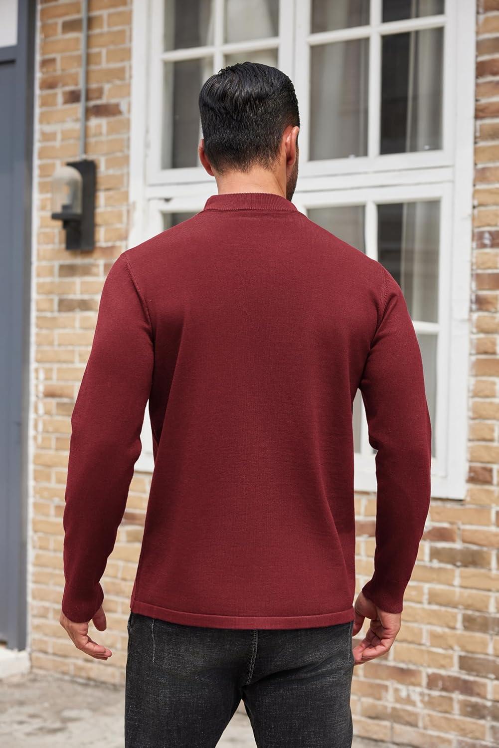 COOFANDY Men’s Mock Turtleneck Sweaters Long Sleeve Casual Knit Shirts Half Neck Thermal Lightweight Pullover Sweater(Wine Red)