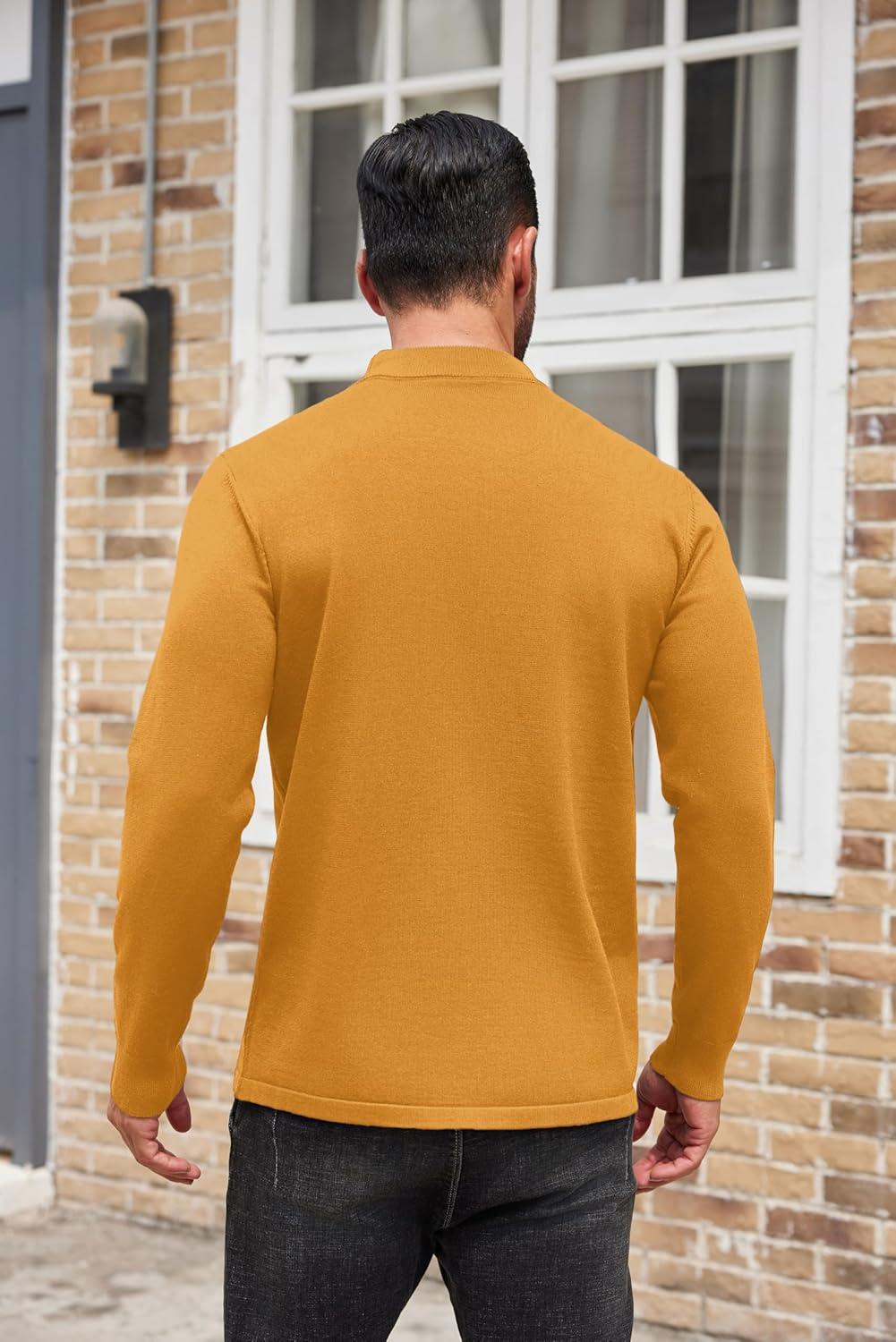 COOFANDY Men’s Mock Turtleneck Sweaters Long Sleeve Casual Knit Shirts Half Neck Thermal Lightweight Pullover Sweater(Yellow)