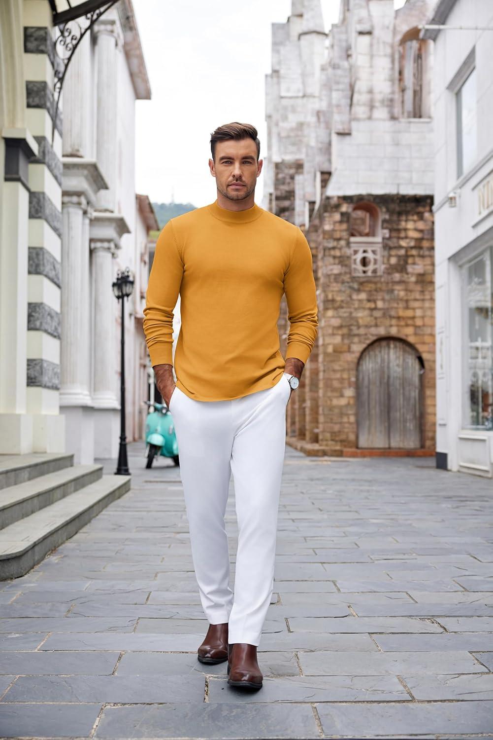 COOFANDY Men’s Slim Fit Mock Turtleneck Pullover Sweater Casual Basic Knitted Thermal Sweaters(Yellow)