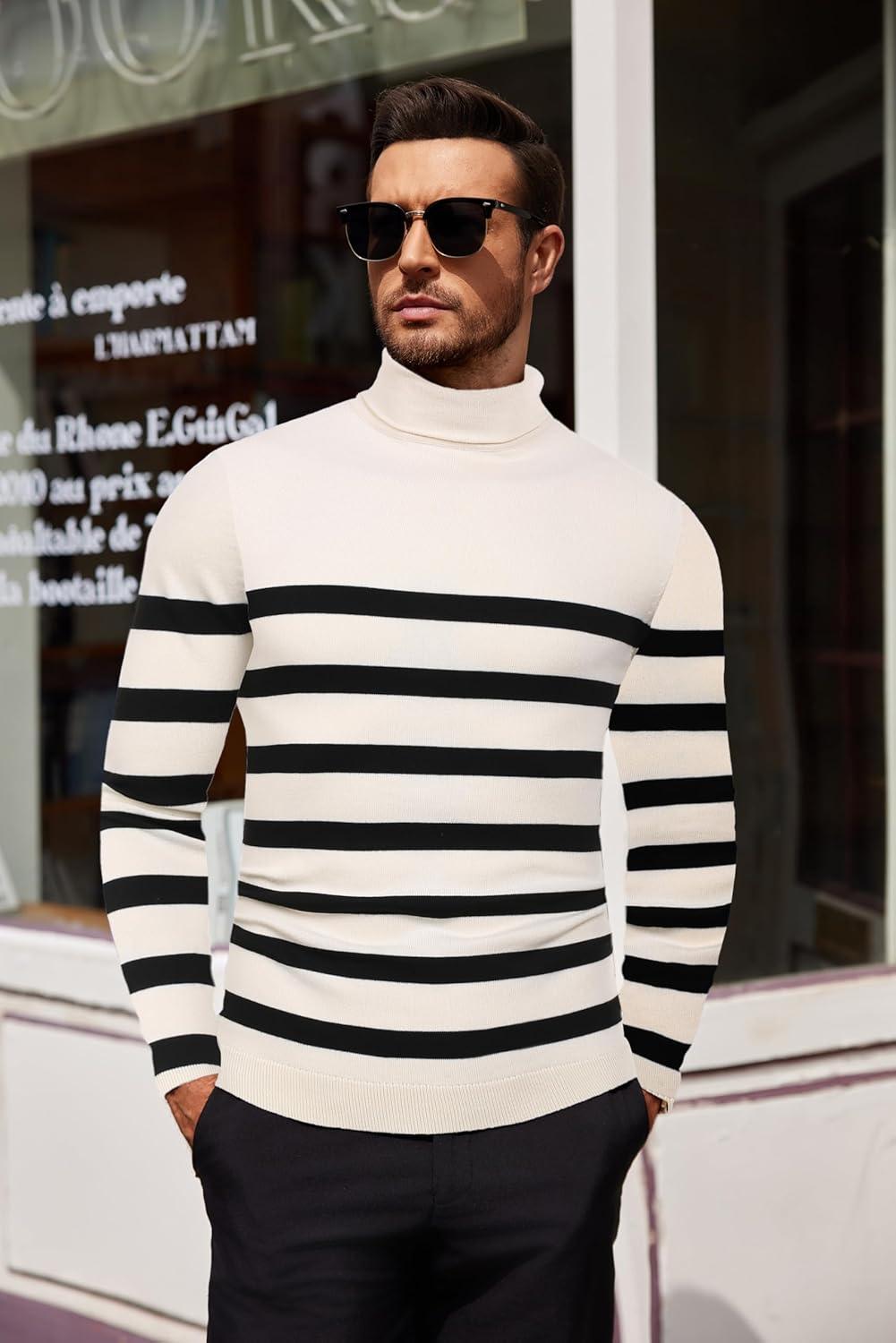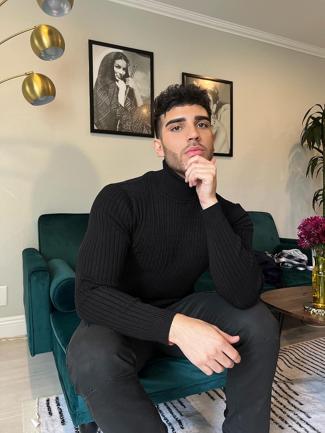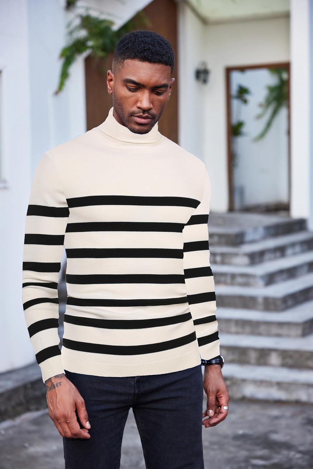 COOFANDY Men’s Slim Fit Turtleneck Sweater Casual Basic Knitted Long Sleeve Pullover Sweater(01-black)