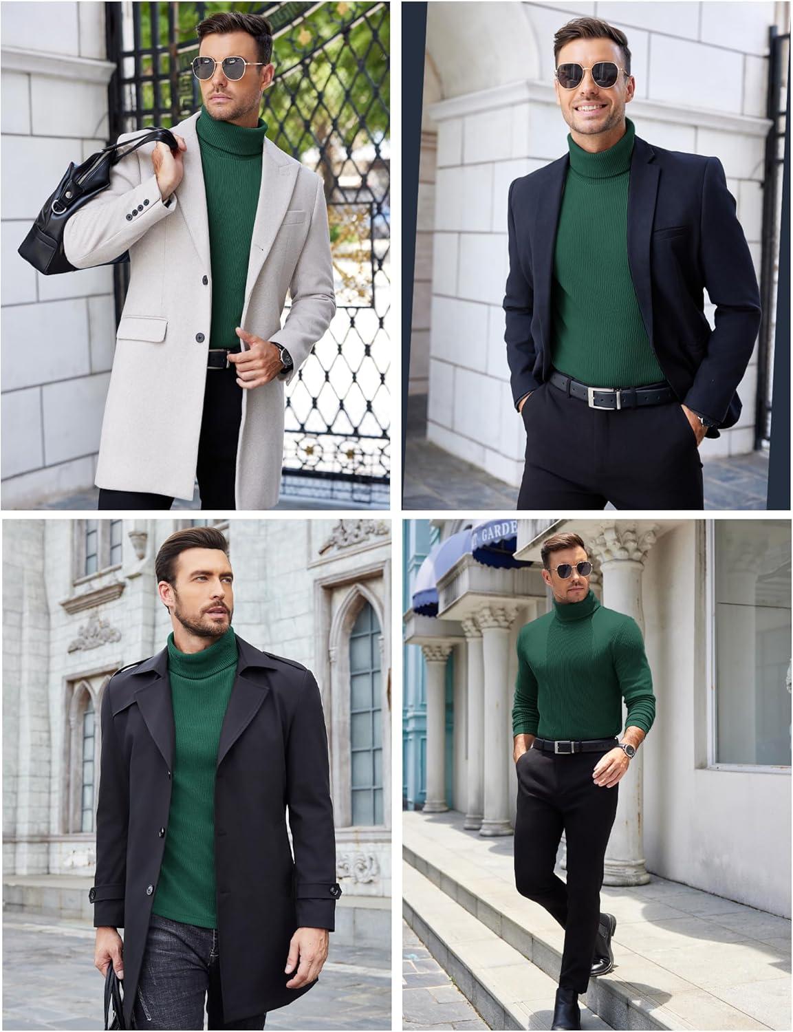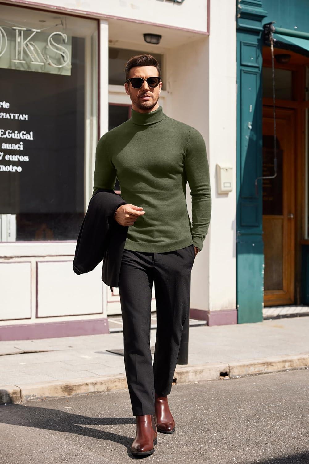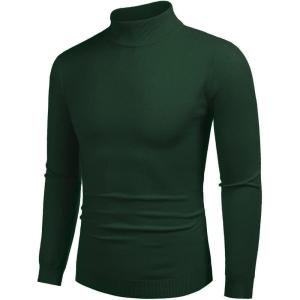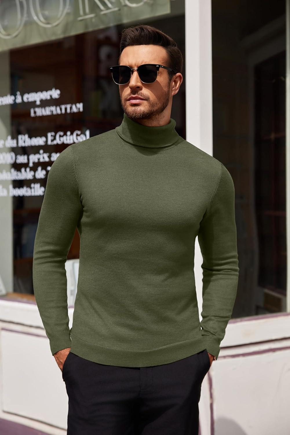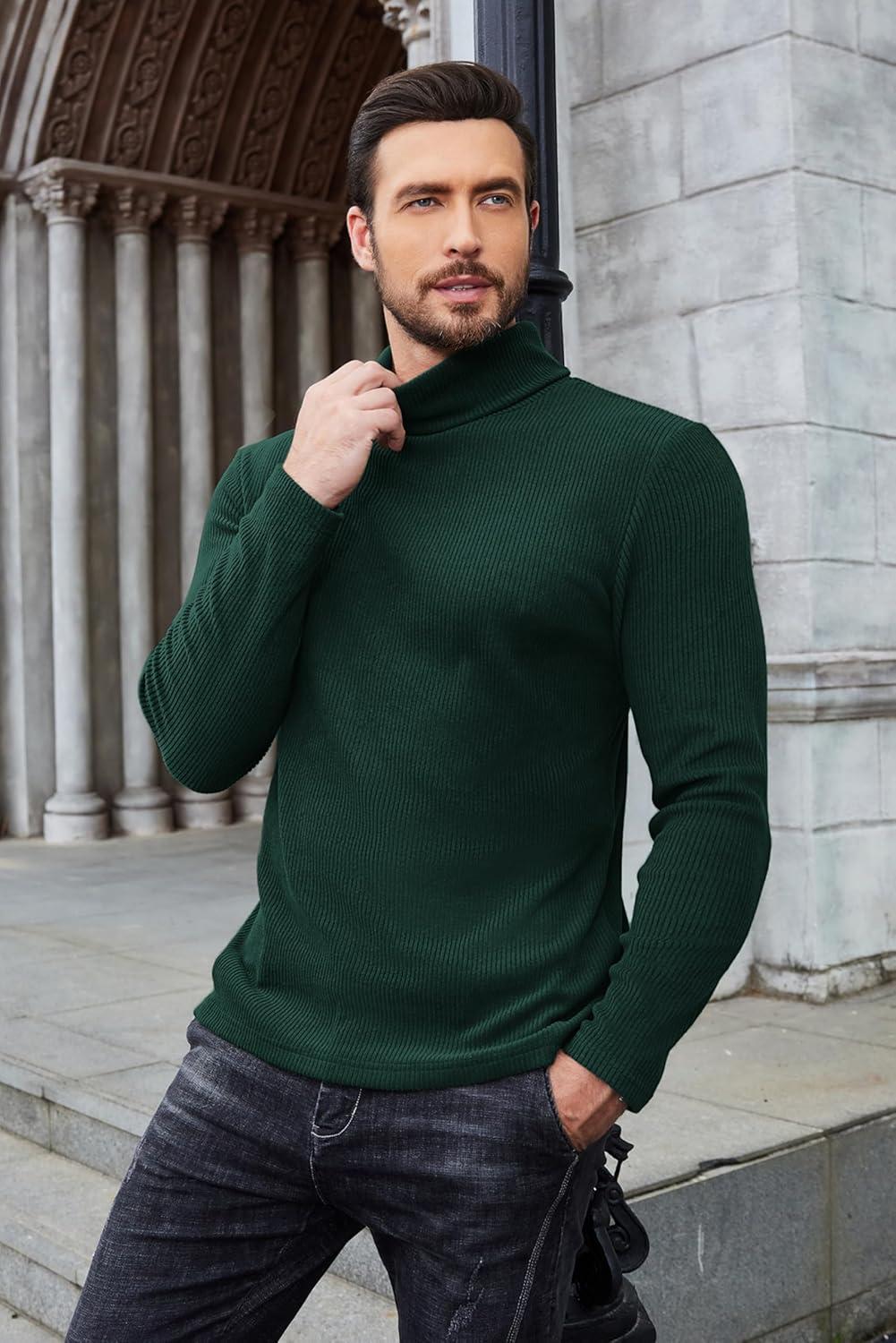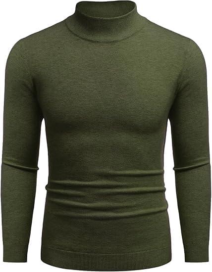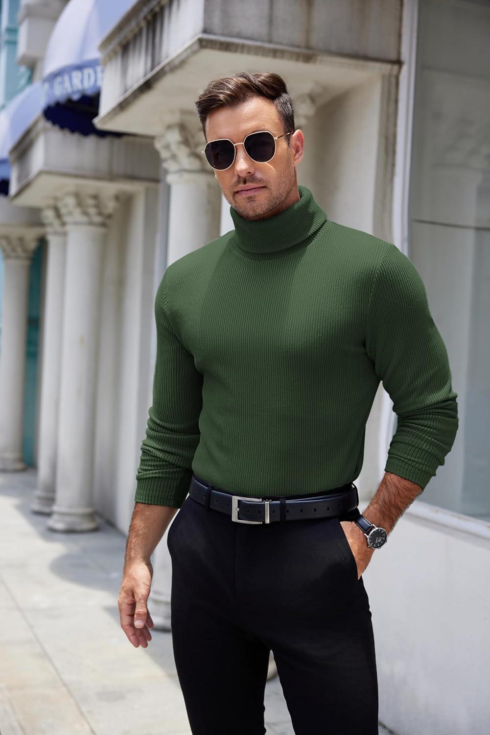 COOFANDY Men’s Turtleneck Sweater Slim Fit Lightweight Basic Ribbed Sweaters(Green)