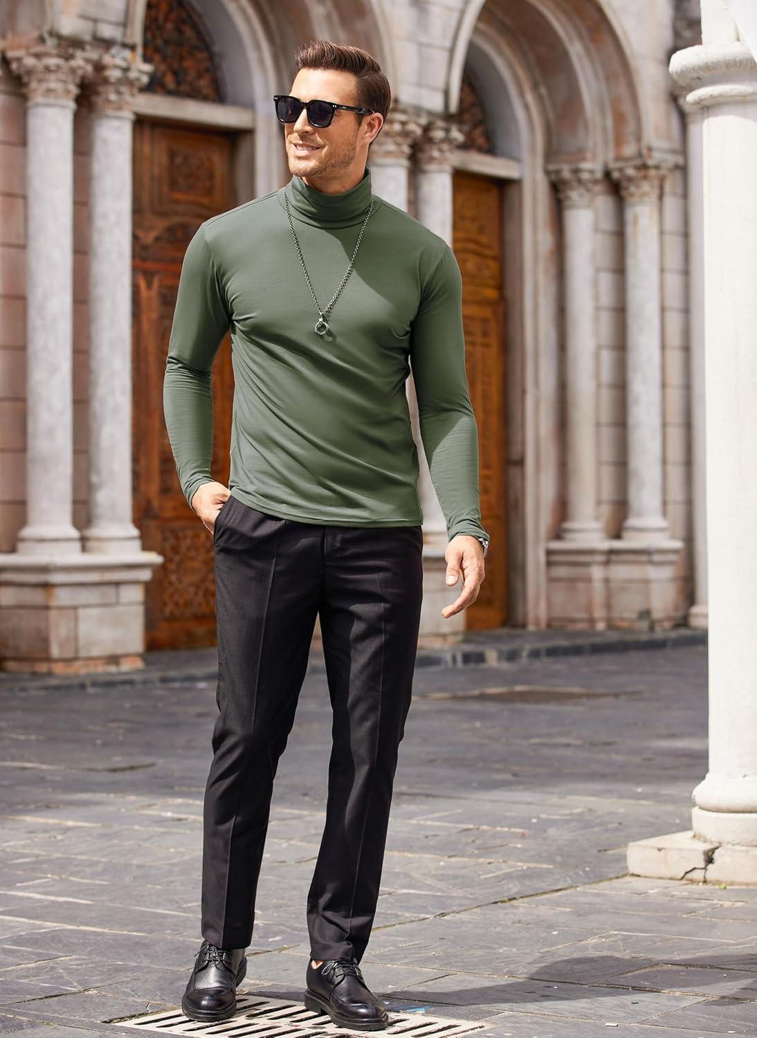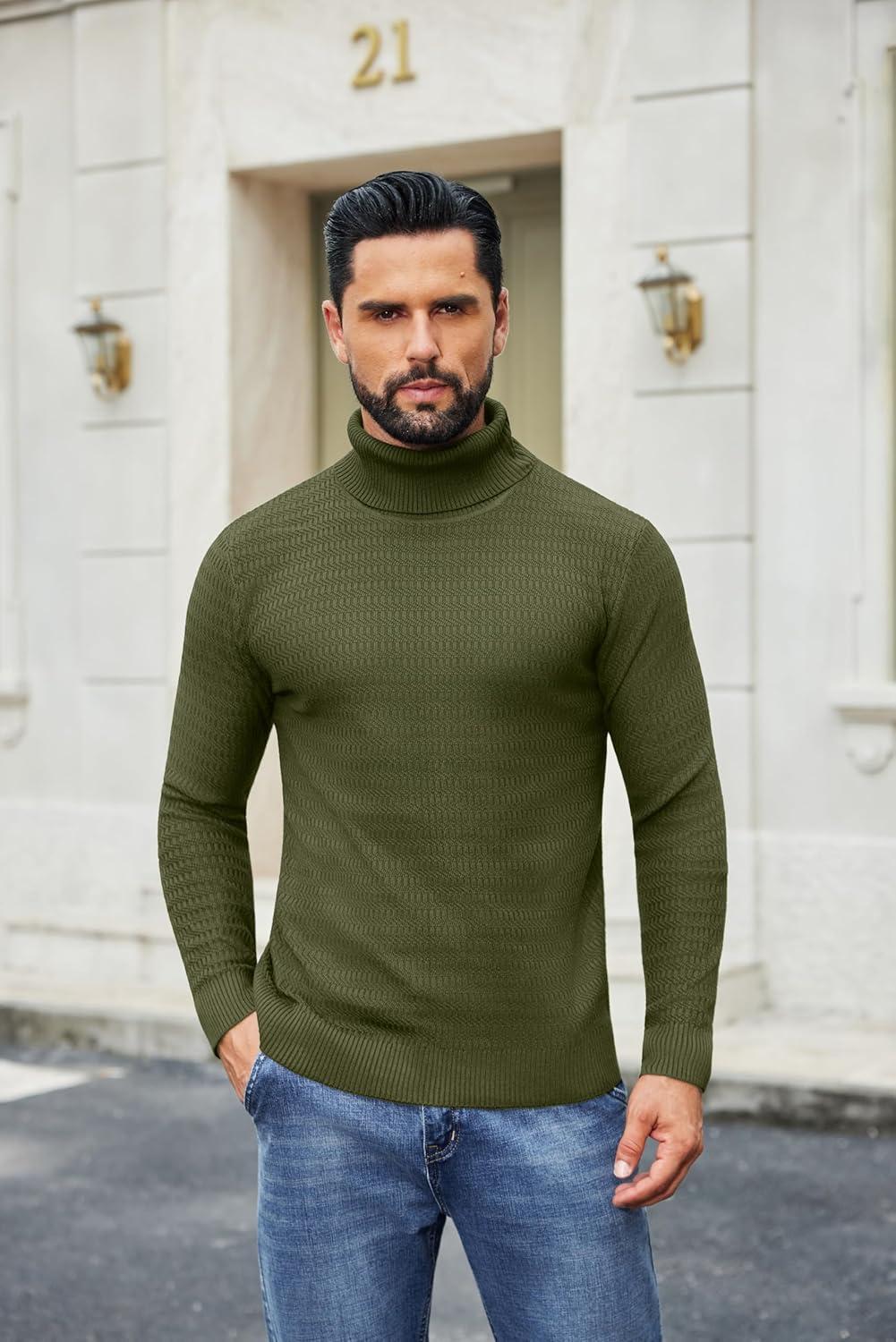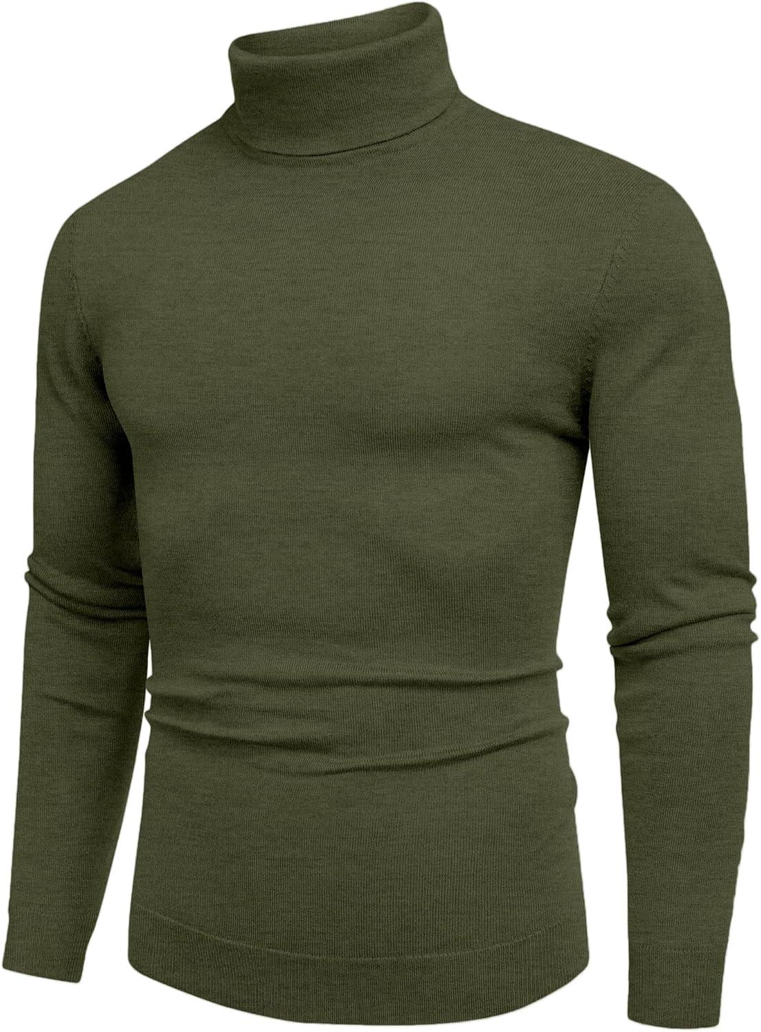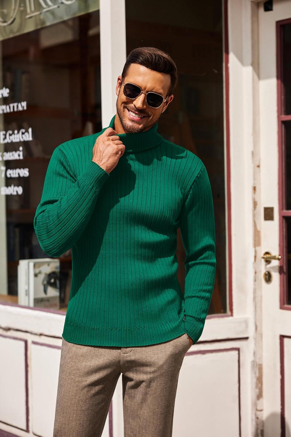 COOFANDY Men’s Turtleneck Sweater Slim Fit Lightweight Basic Ribbed Sweaters(Green)