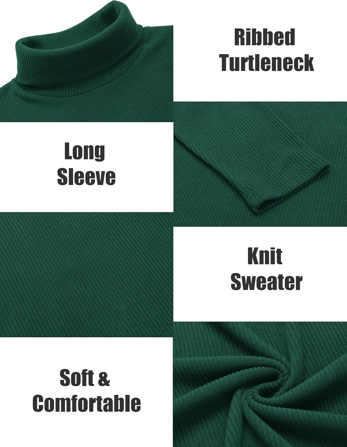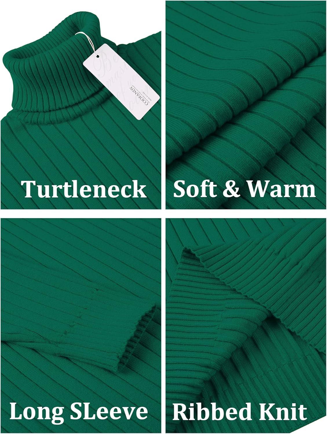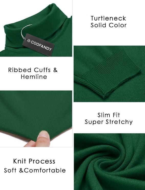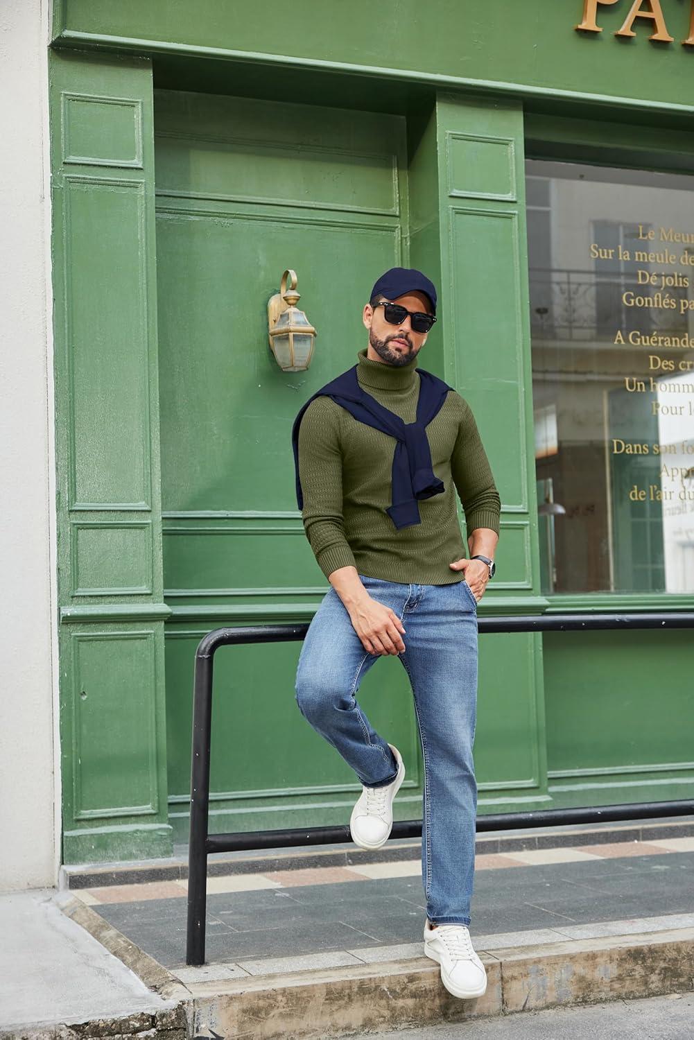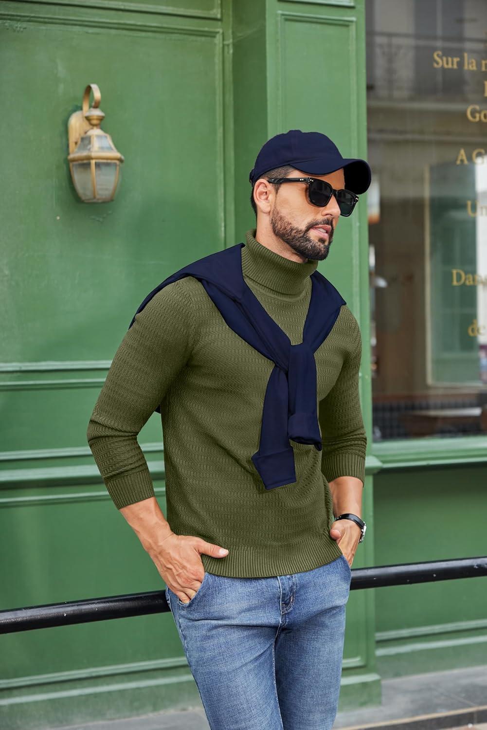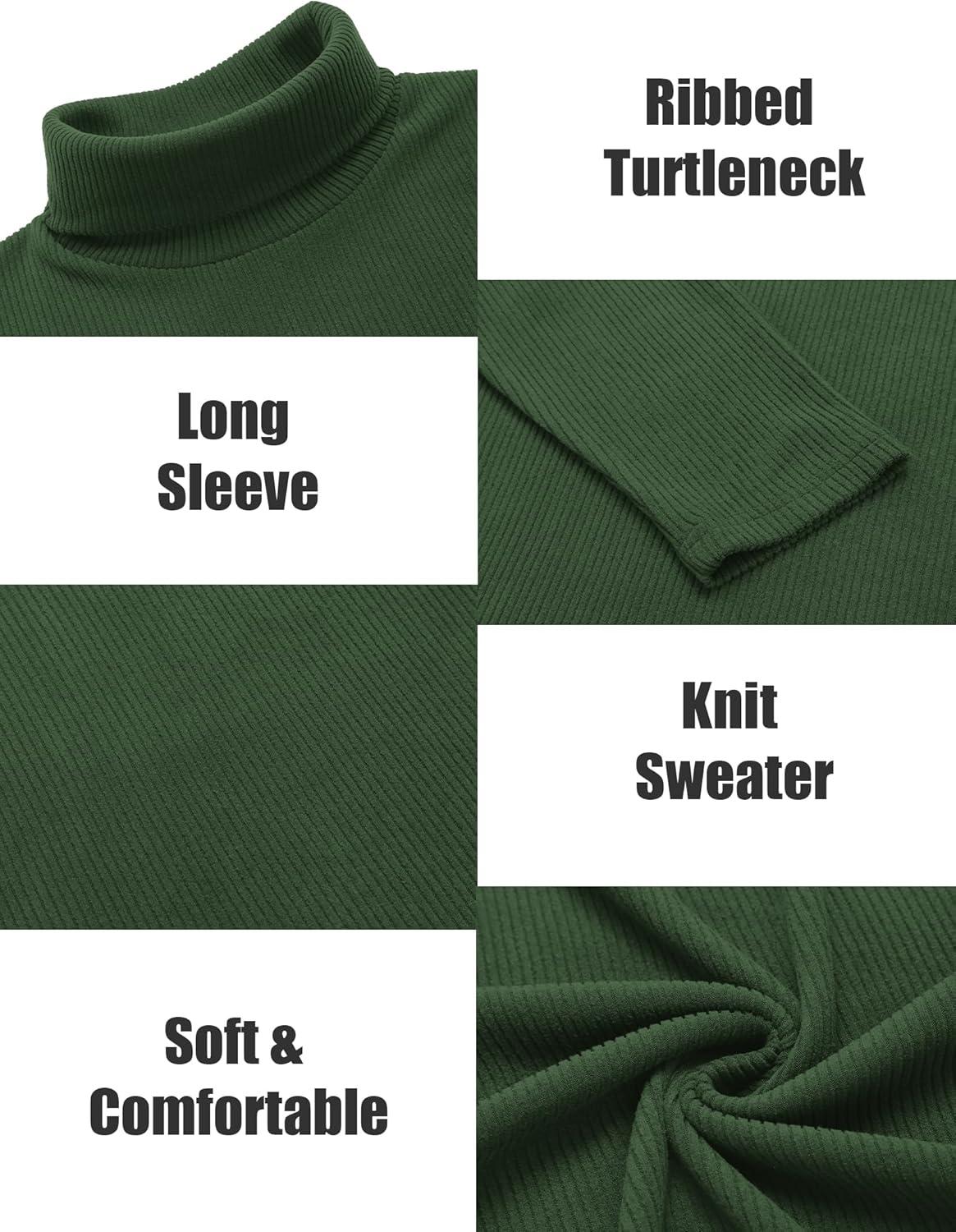 COOFANDY Men’s Turtleneck Sweater Slim Fit Lightweight Basic Ribbed Sweaters(Green)