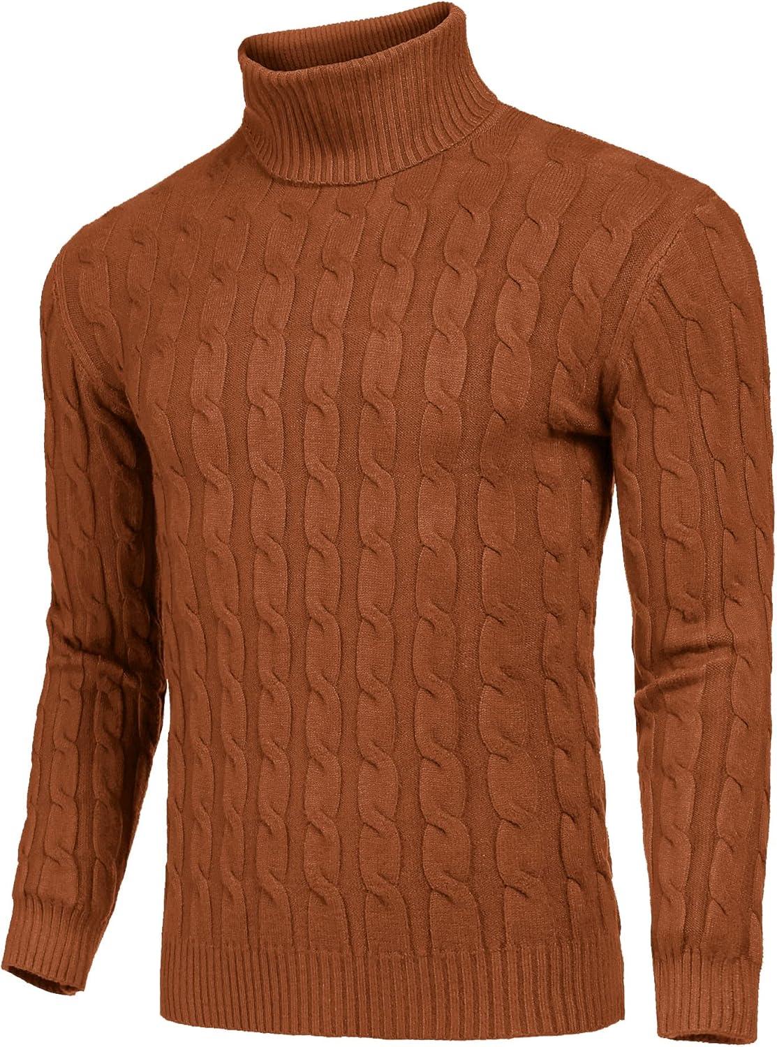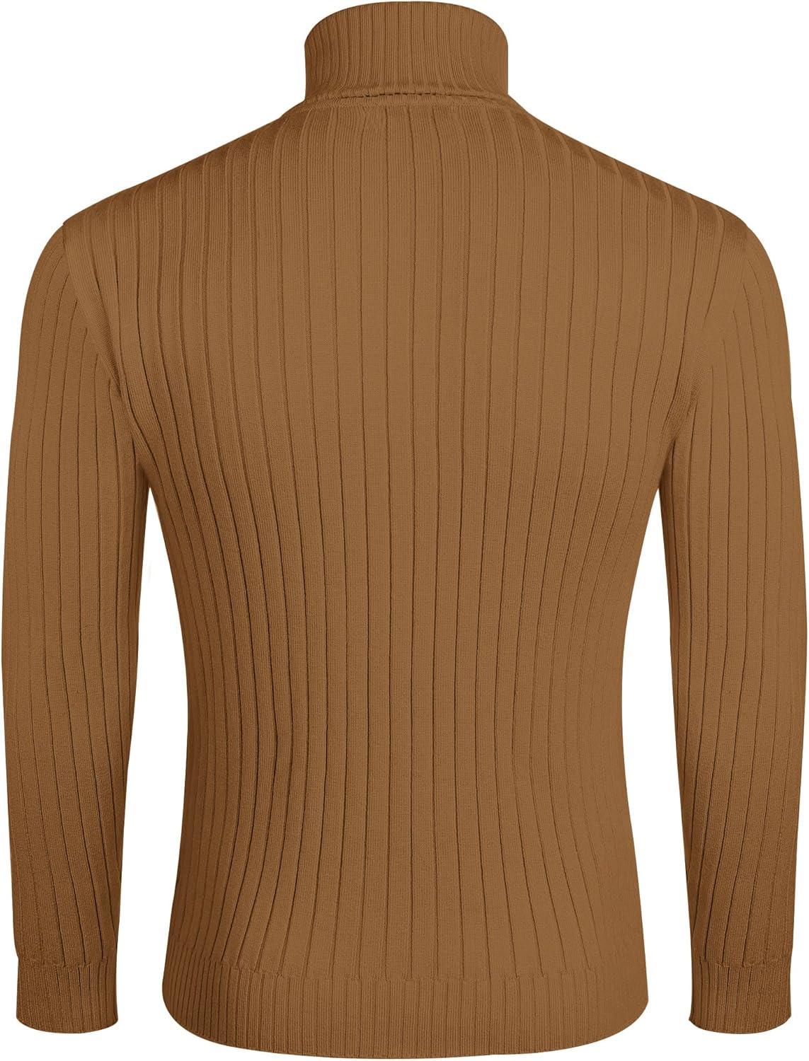 COOFANDY Mens Ribbed Slim Fit Knitted Pullover Casual Turtleneck Sweater(Brown)