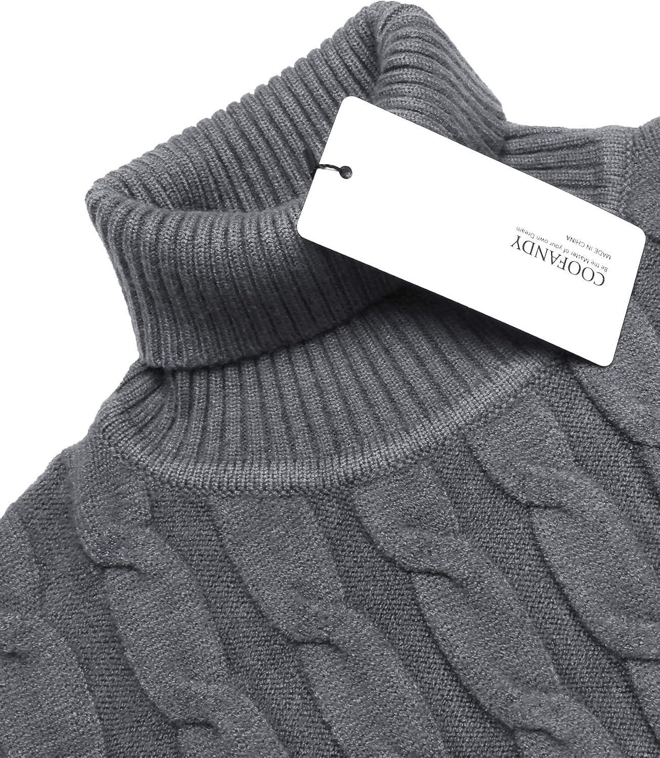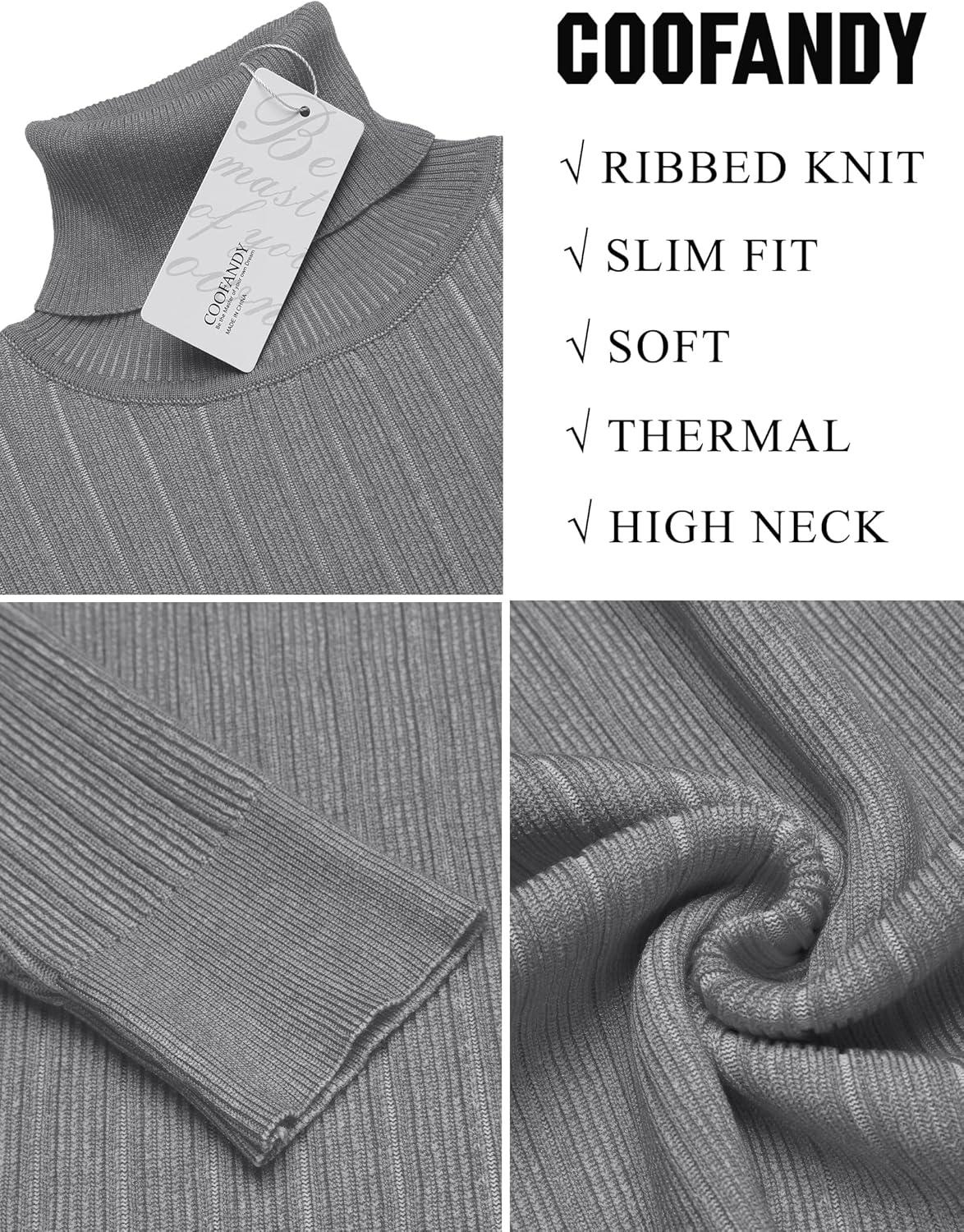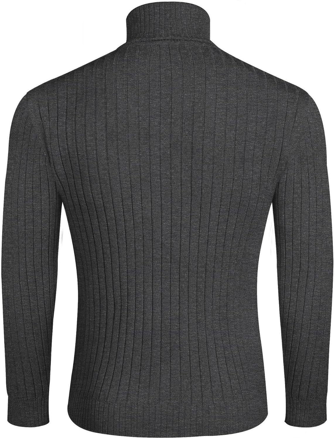 COOFANDY Mens Ribbed Slim Fit Knitted Pullover Casual Turtleneck Sweater(Dark Grey)