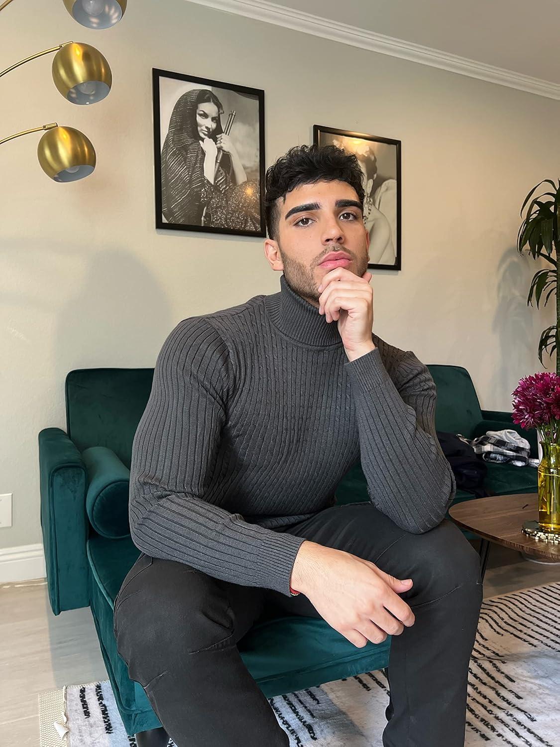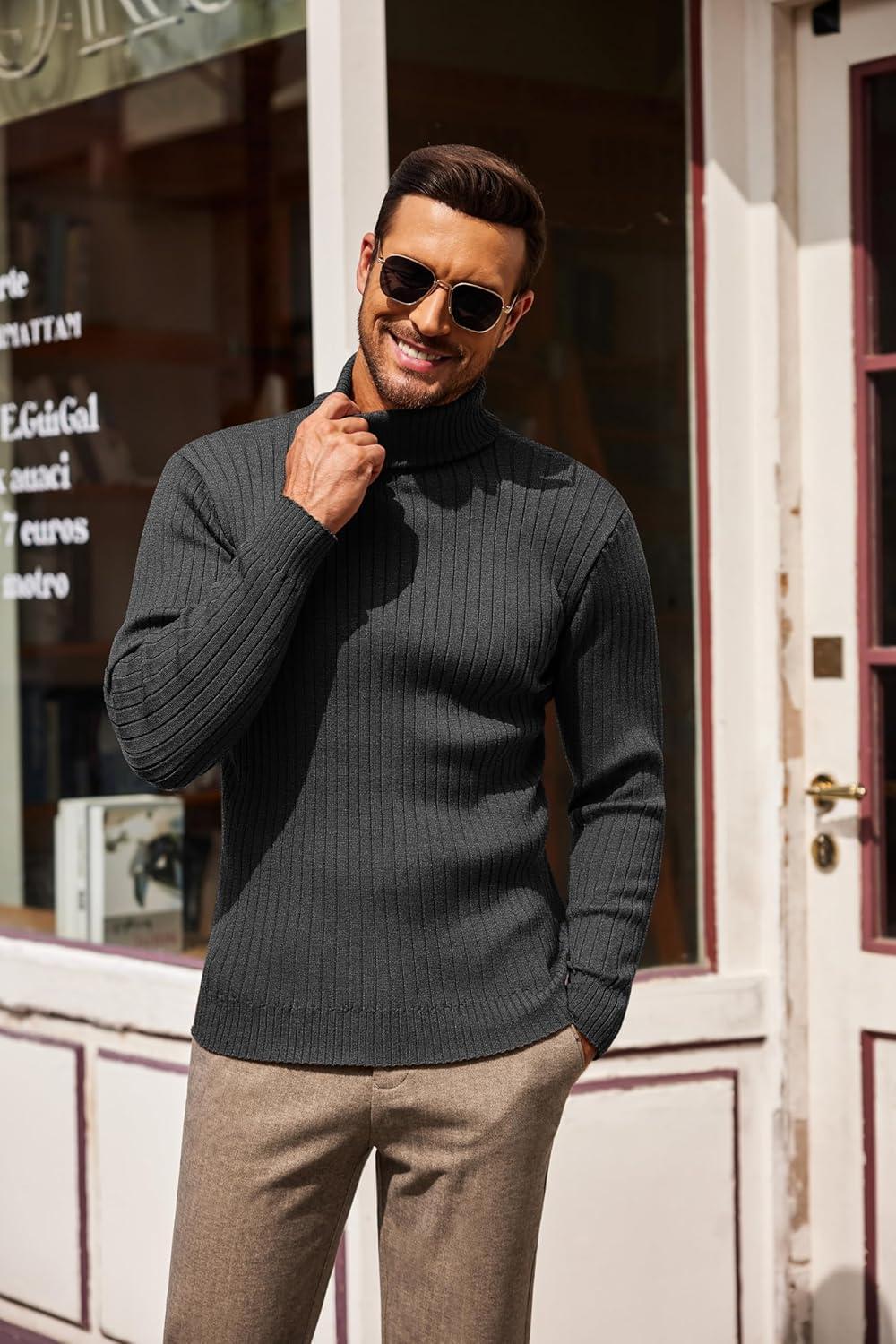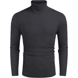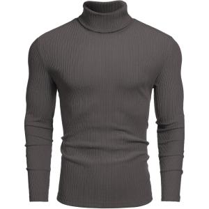 COOFANDY Men’s Slim Fit Turtleneck Sweater Casual Pullover Sweater Lightweight Ribbed Sweater(Charcoal Grey)