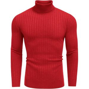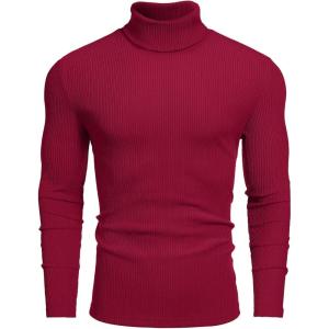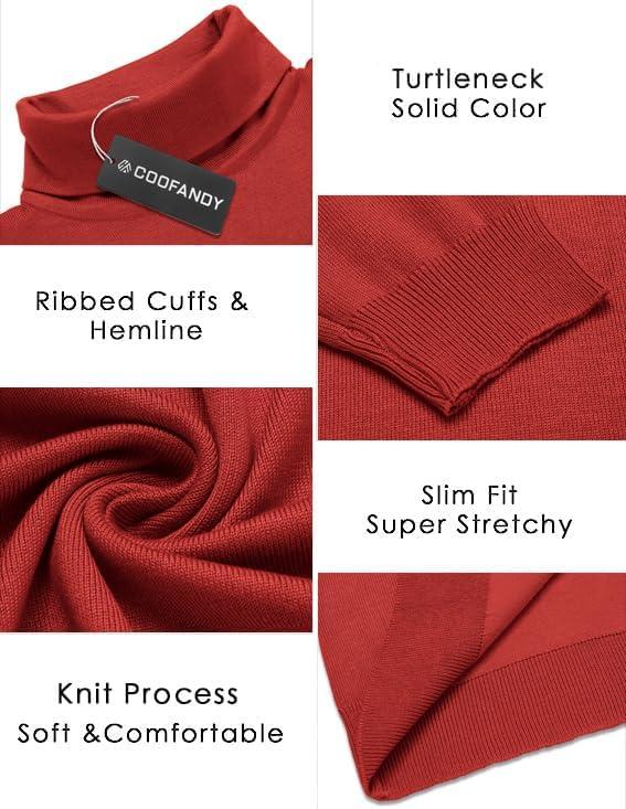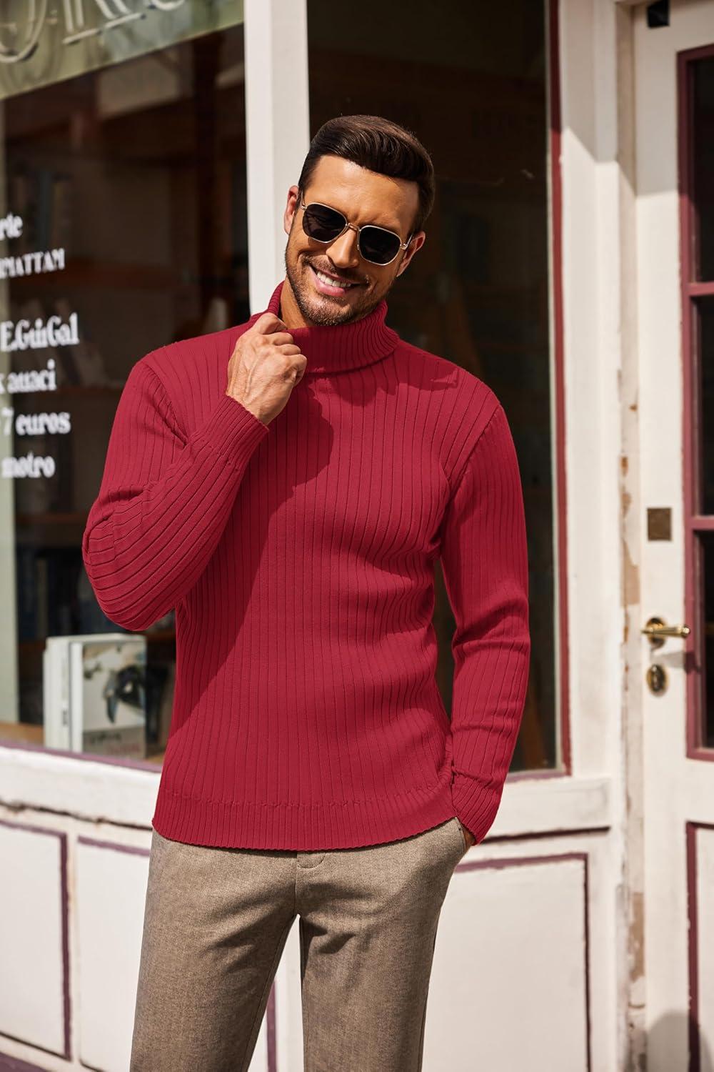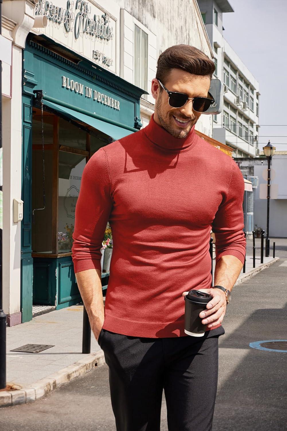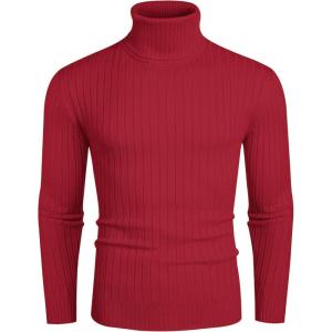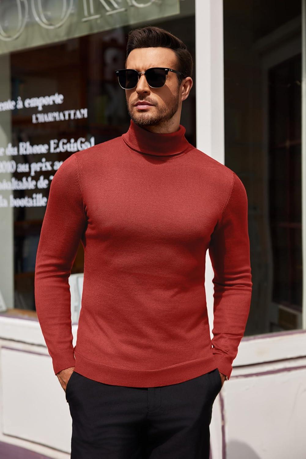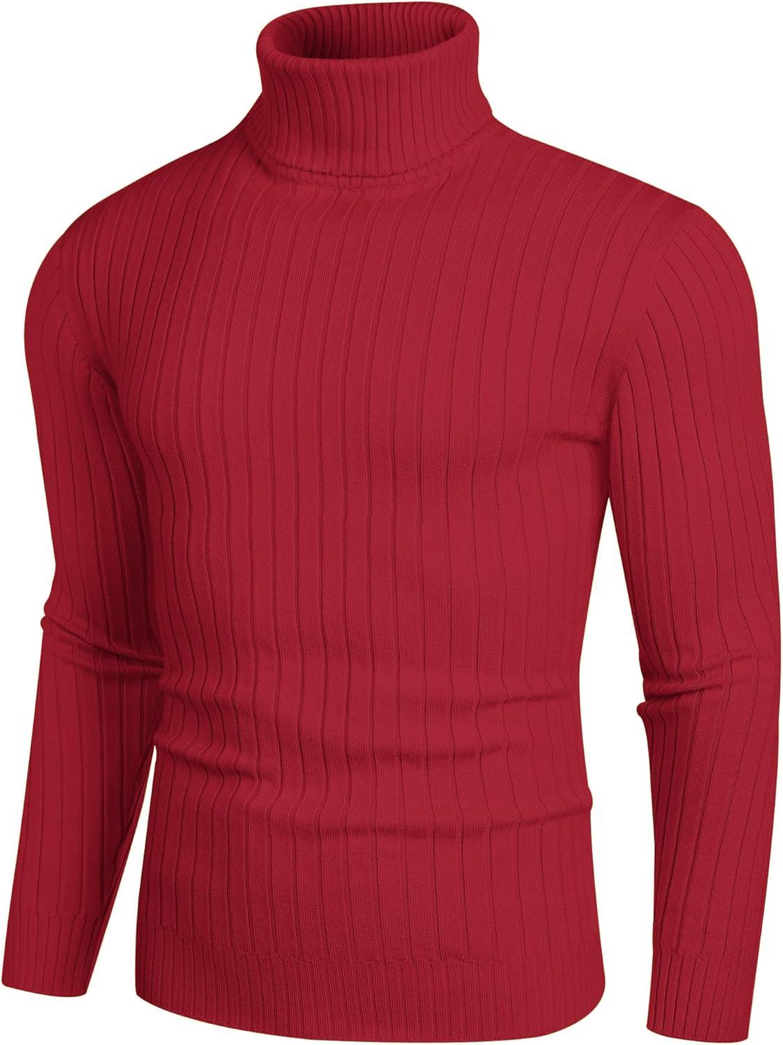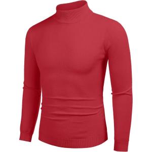 COOFANDY Men’s Slim Fit Turtleneck Sweater Casual Basic Knitted Long Sleeve Pullover Sweater(Red)