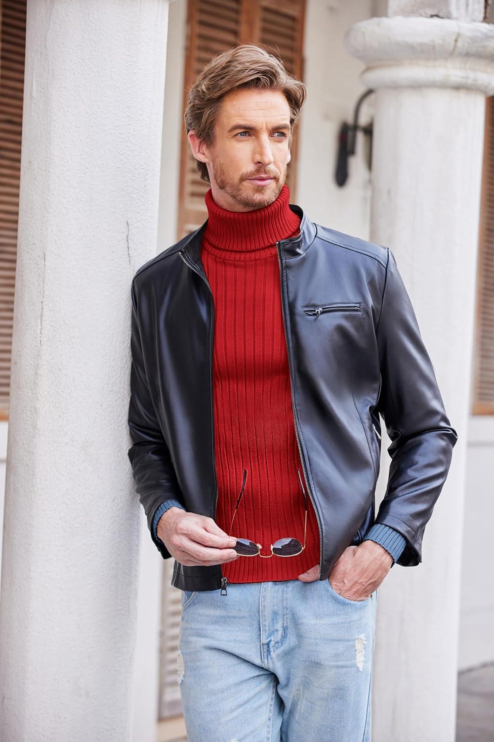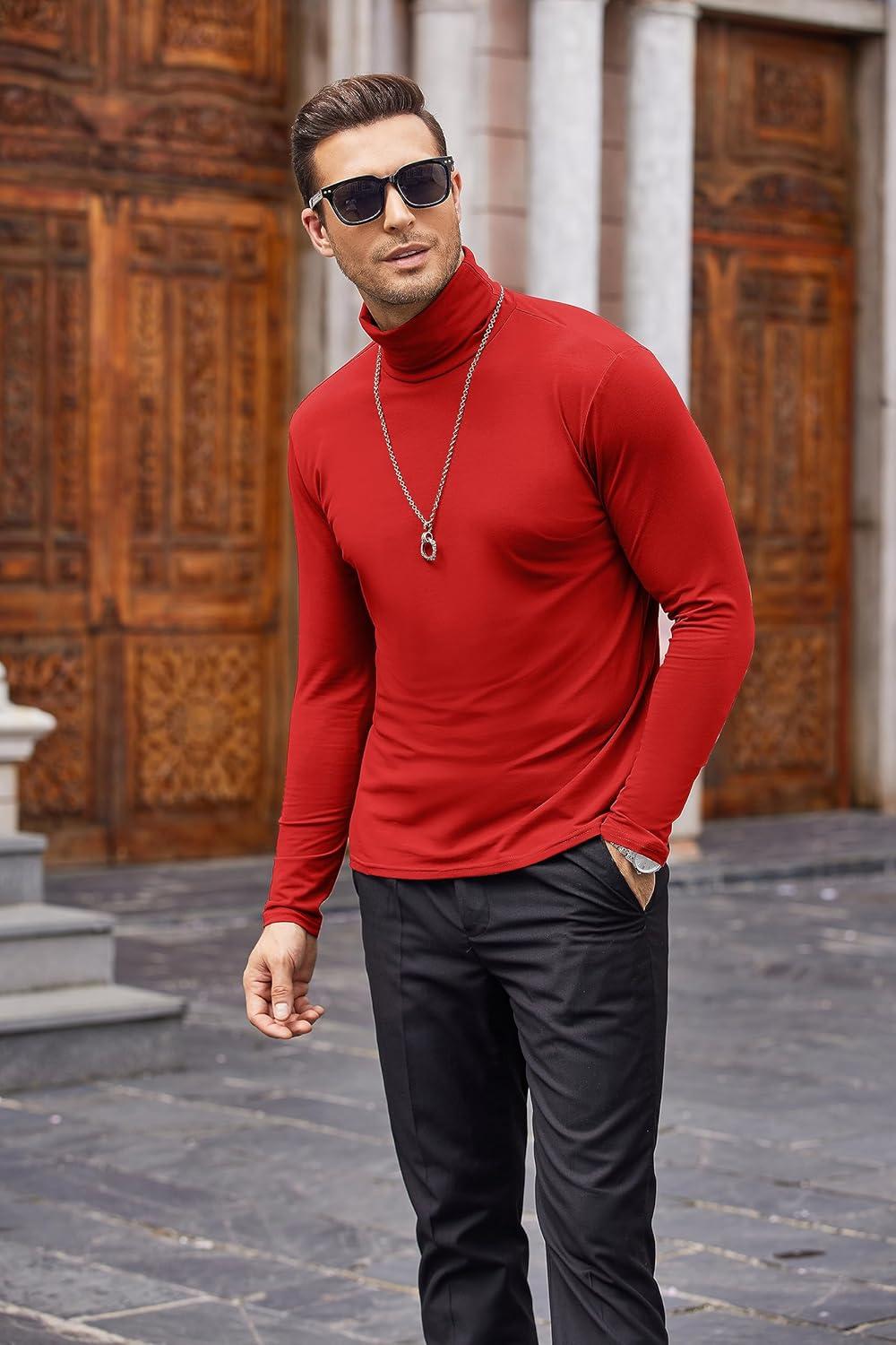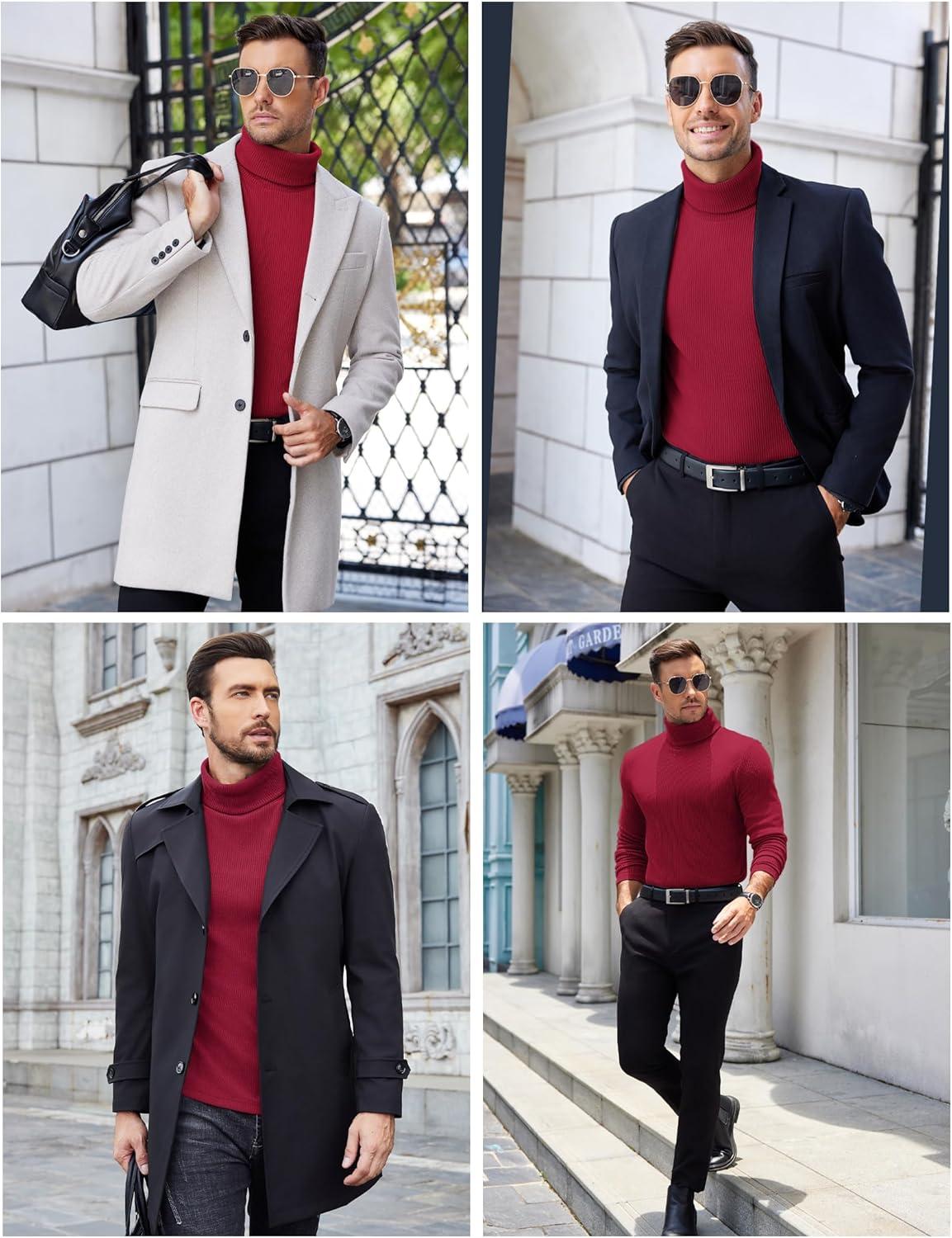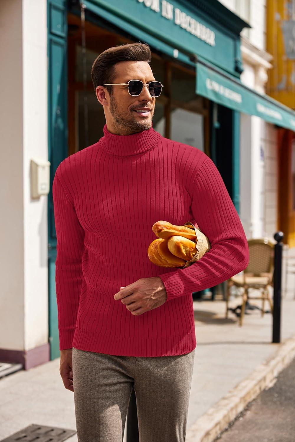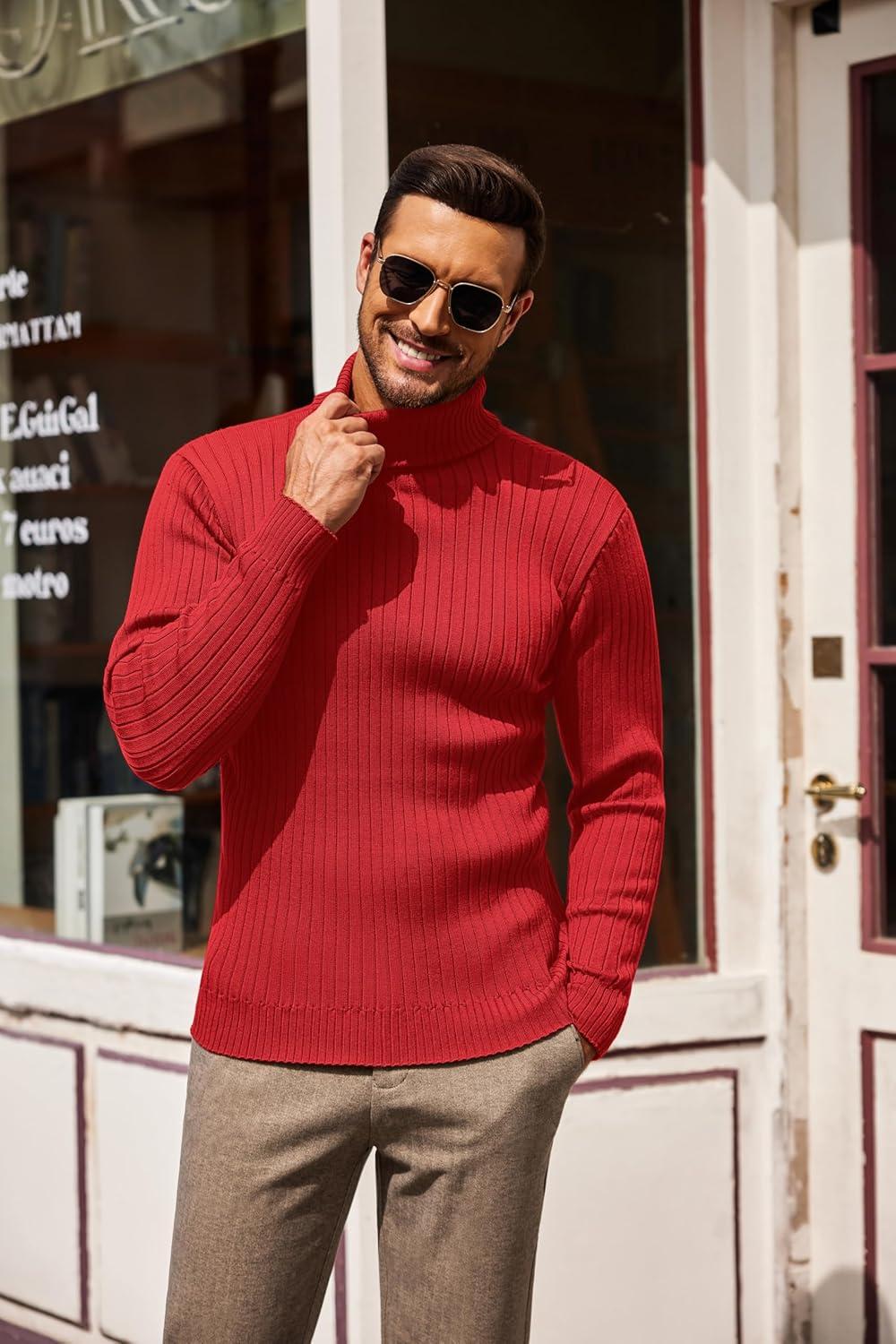 COOFANDY Men’s Slim Fit Turtleneck Sweater Casual Basic Knitted Long Sleeve Pullover Sweater(Red)