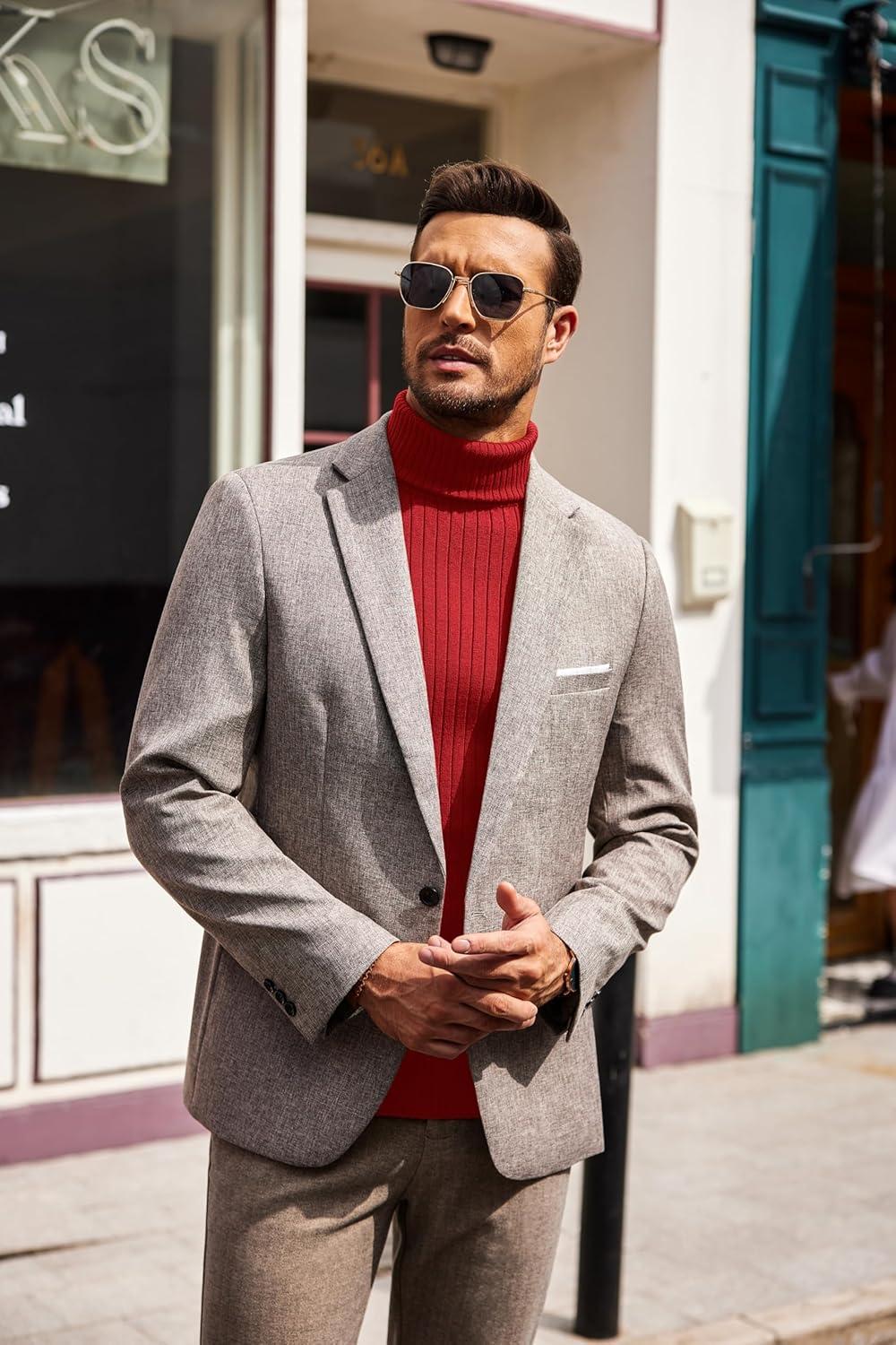 COOFANDY Men’s Slim Fit Turtleneck Sweater Casual Pullover Sweater Lightweight Ribbed Sweater(Fired Red)