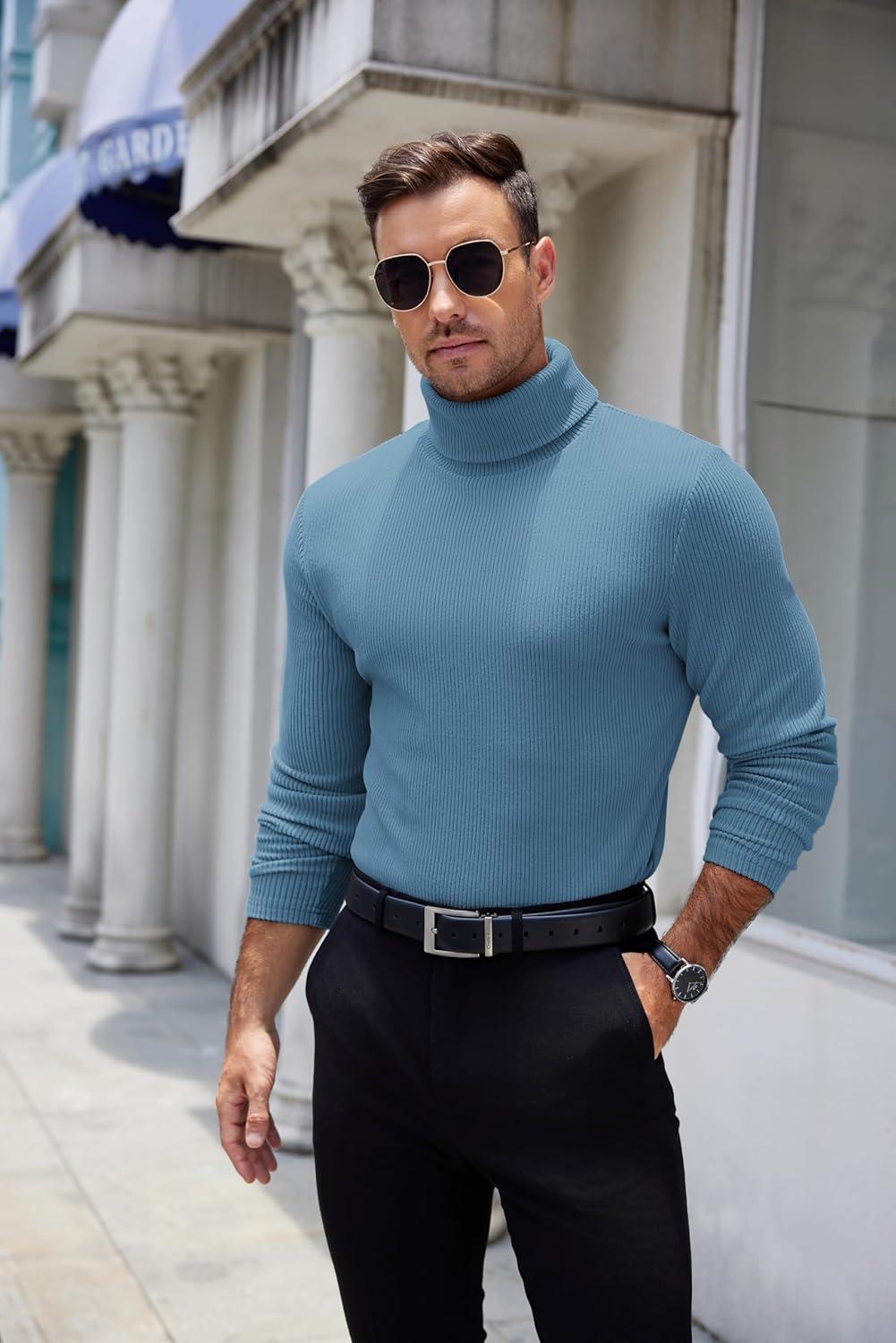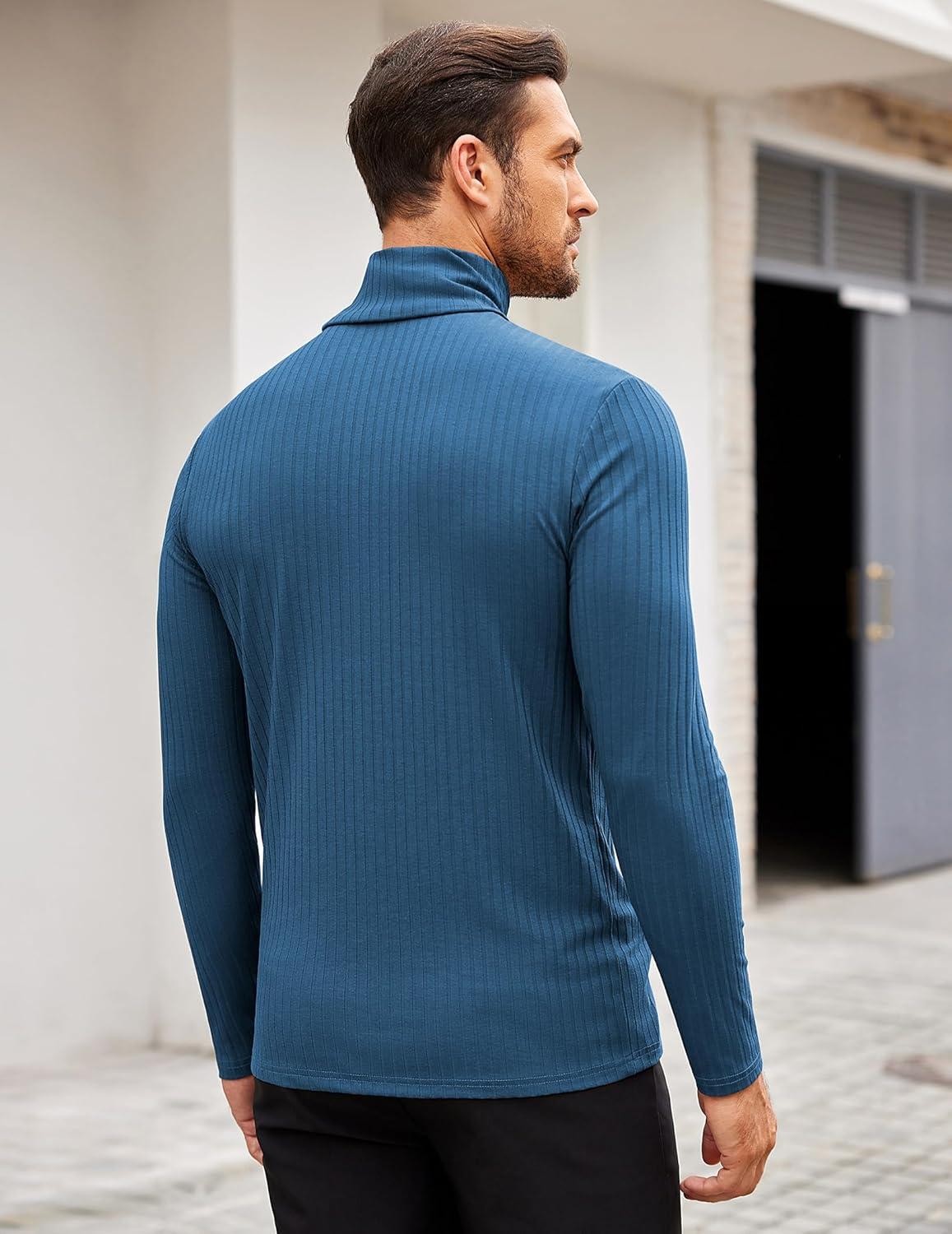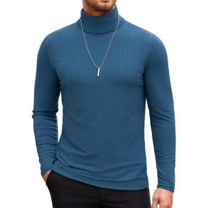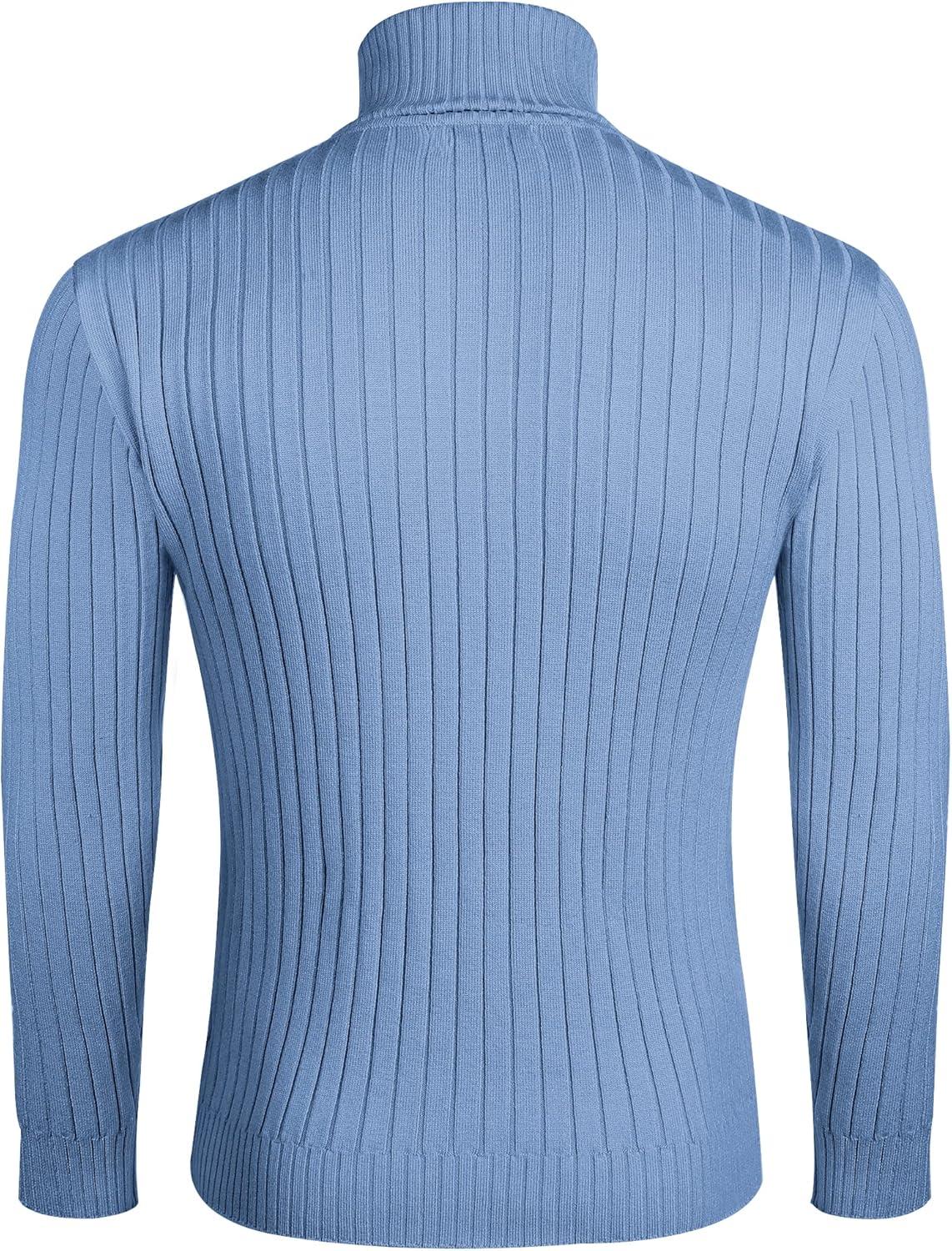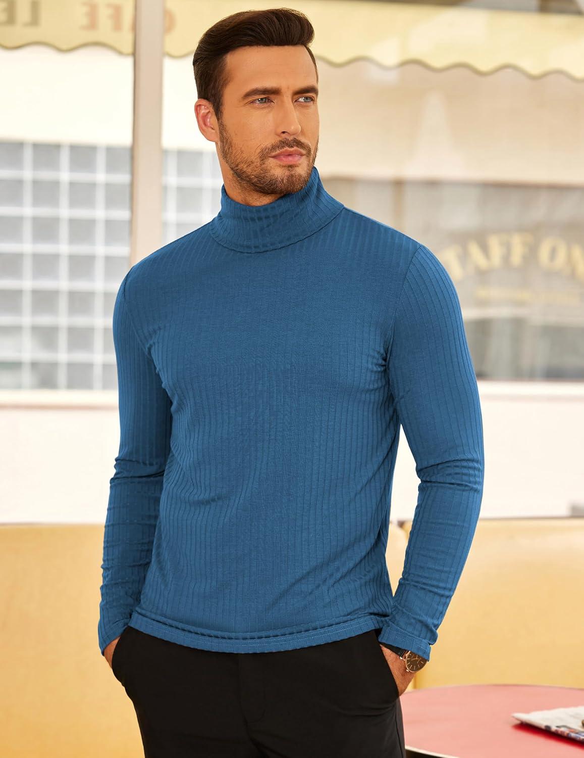 COOFANDY Men’s Turtleneck Sweater Slim Fit Lightweight Basic Ribbed Sweaters(Blue)