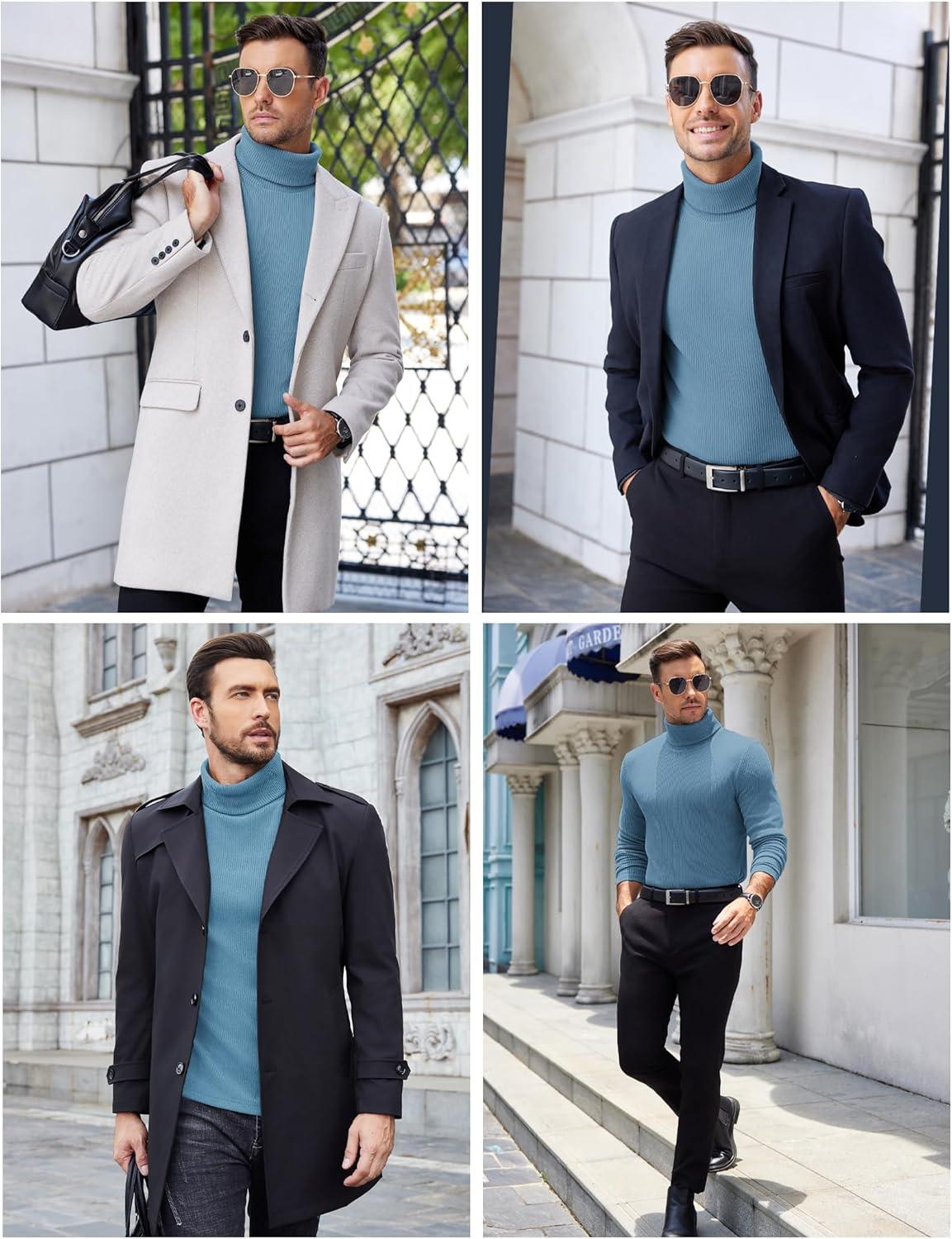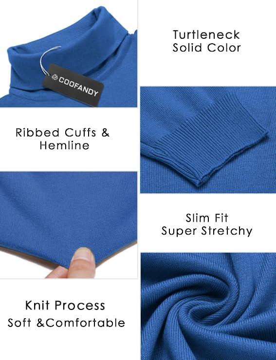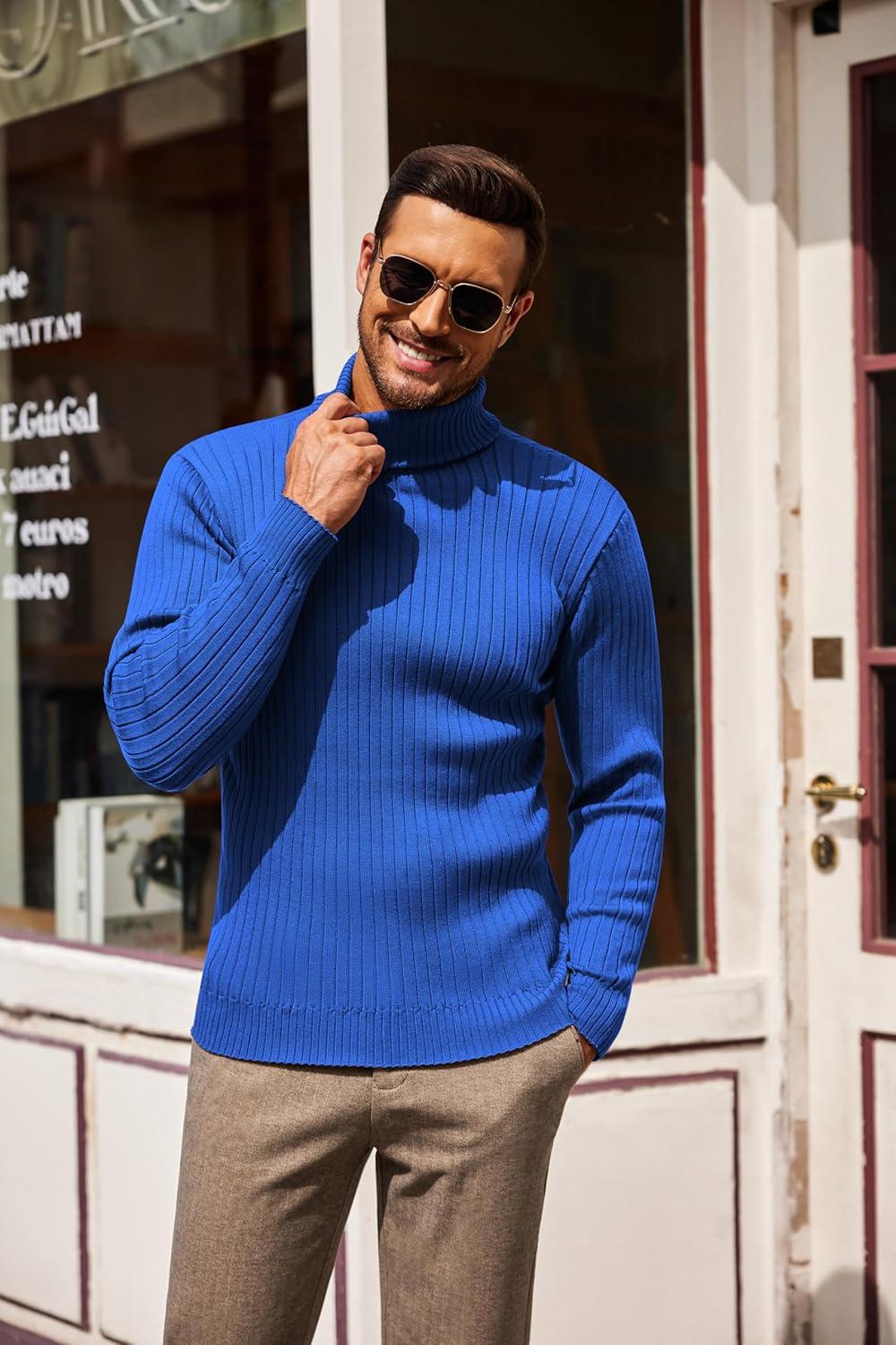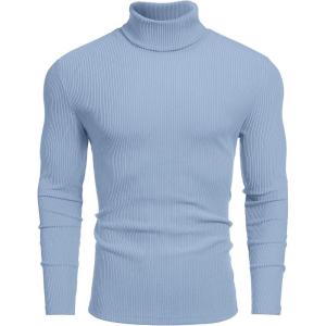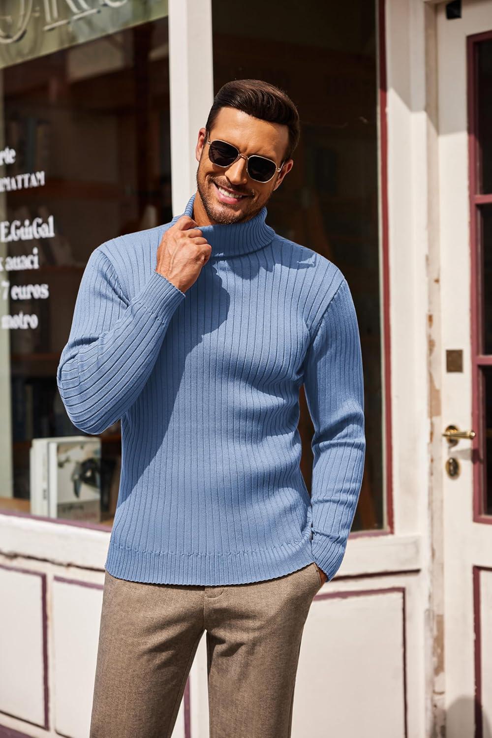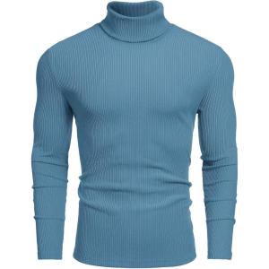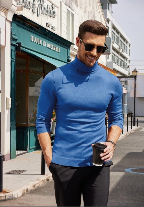 COOFANDY Men’s Turtleneck Sweater Slim Fit Lightweight Basic Ribbed Sweaters(Blue)