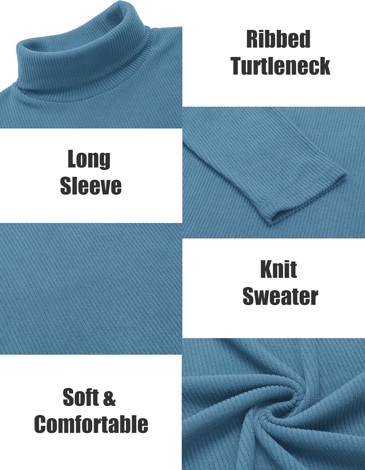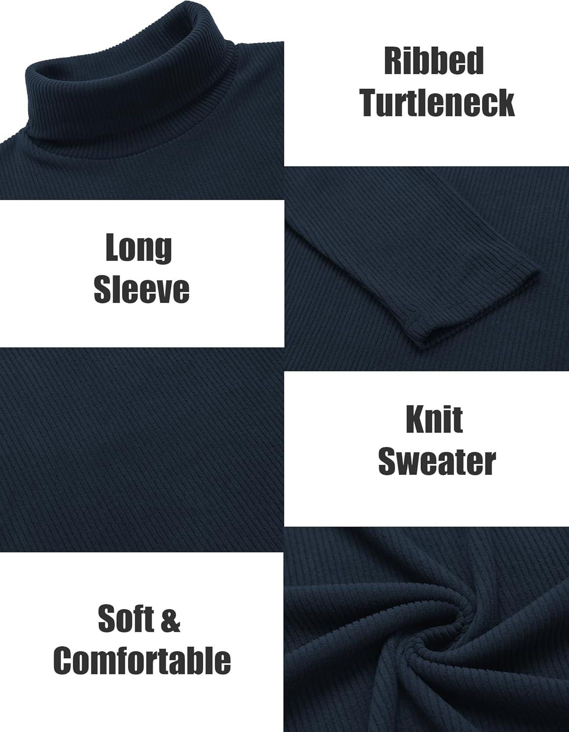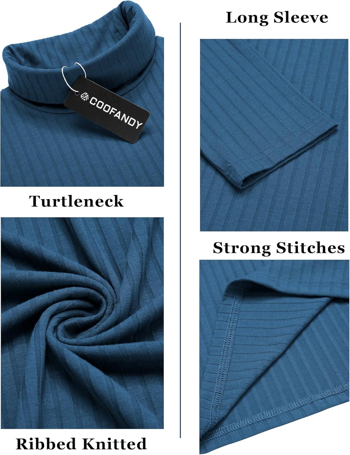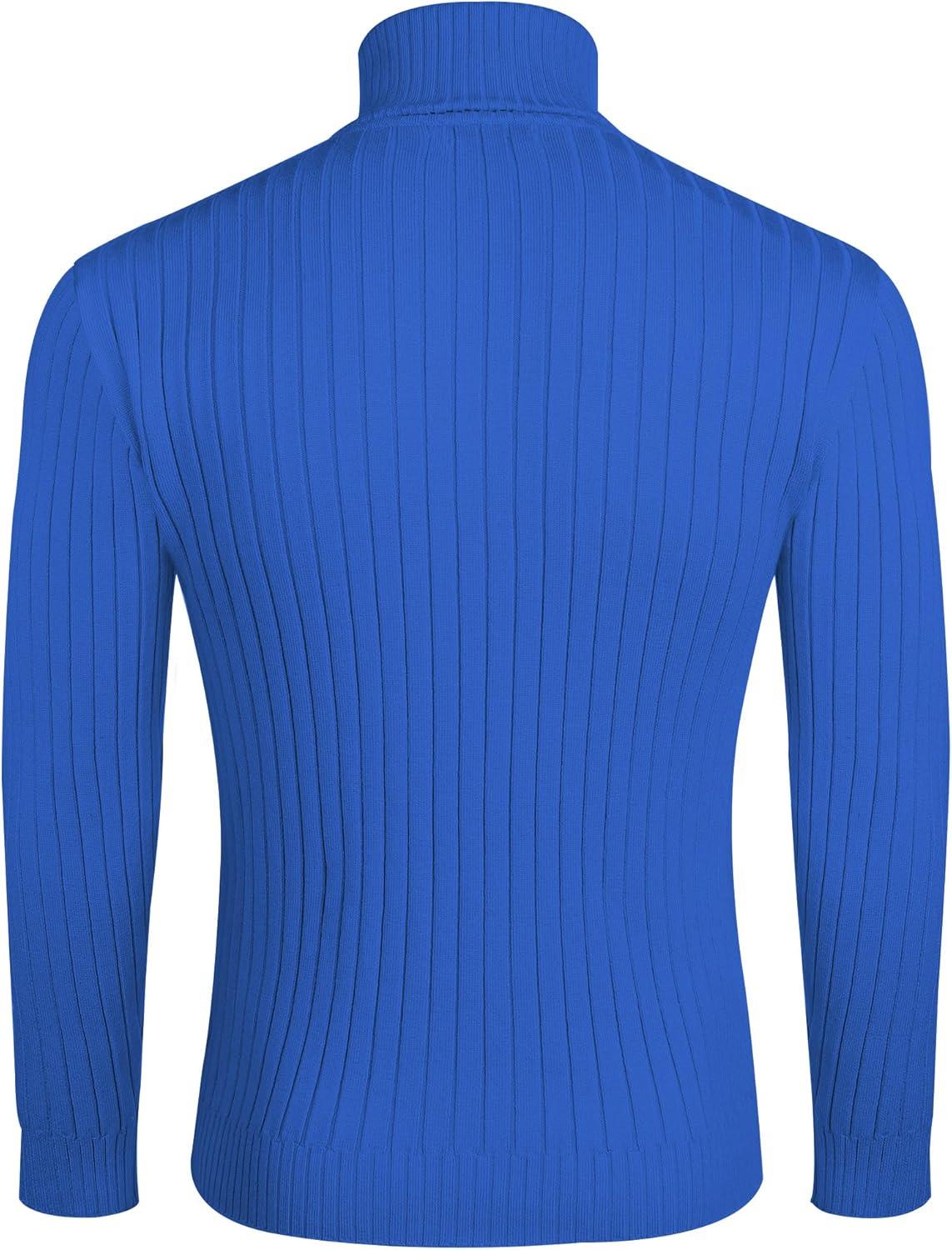 COOFANDY Men’s Turtleneck Sweater Slim Fit Lightweight Basic Ribbed Sweaters(Blue)