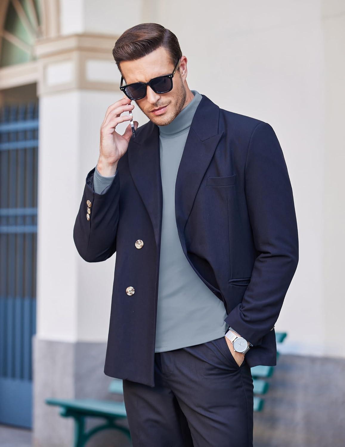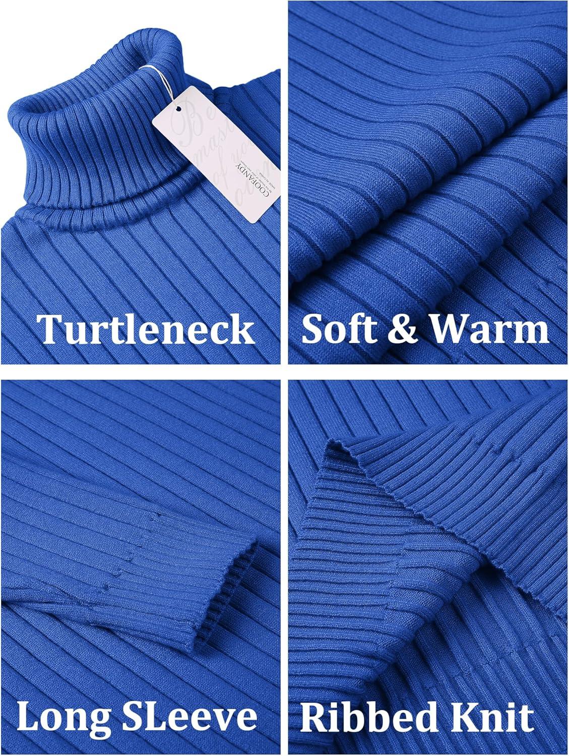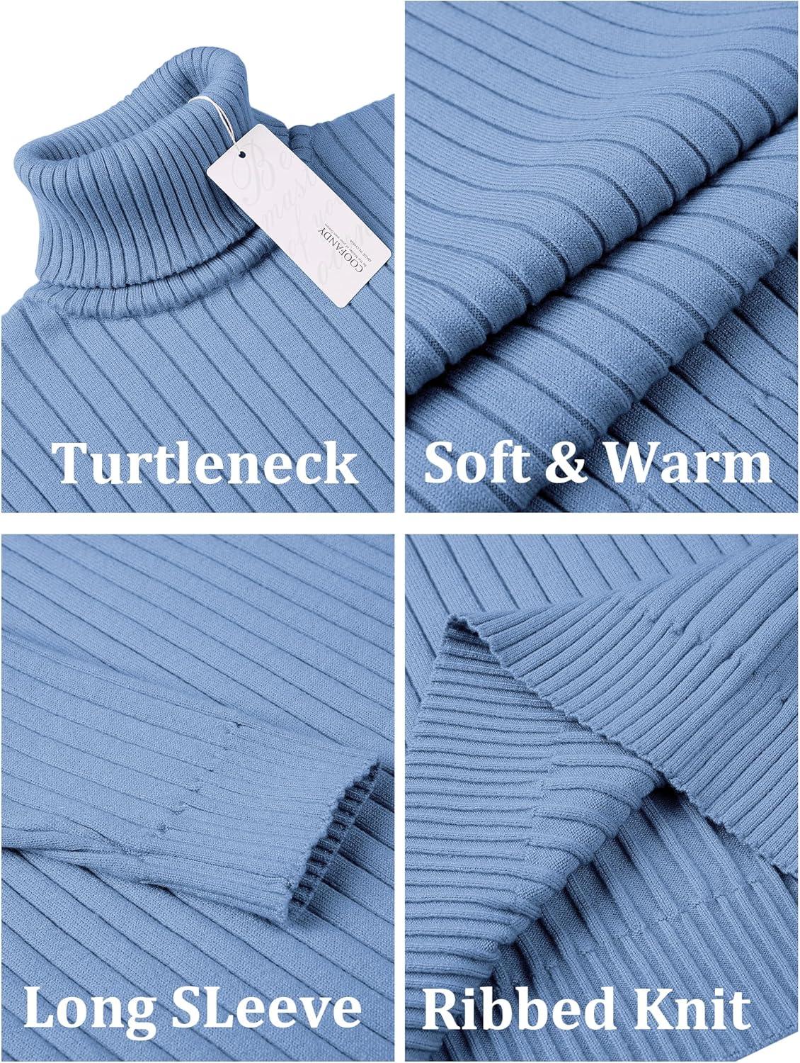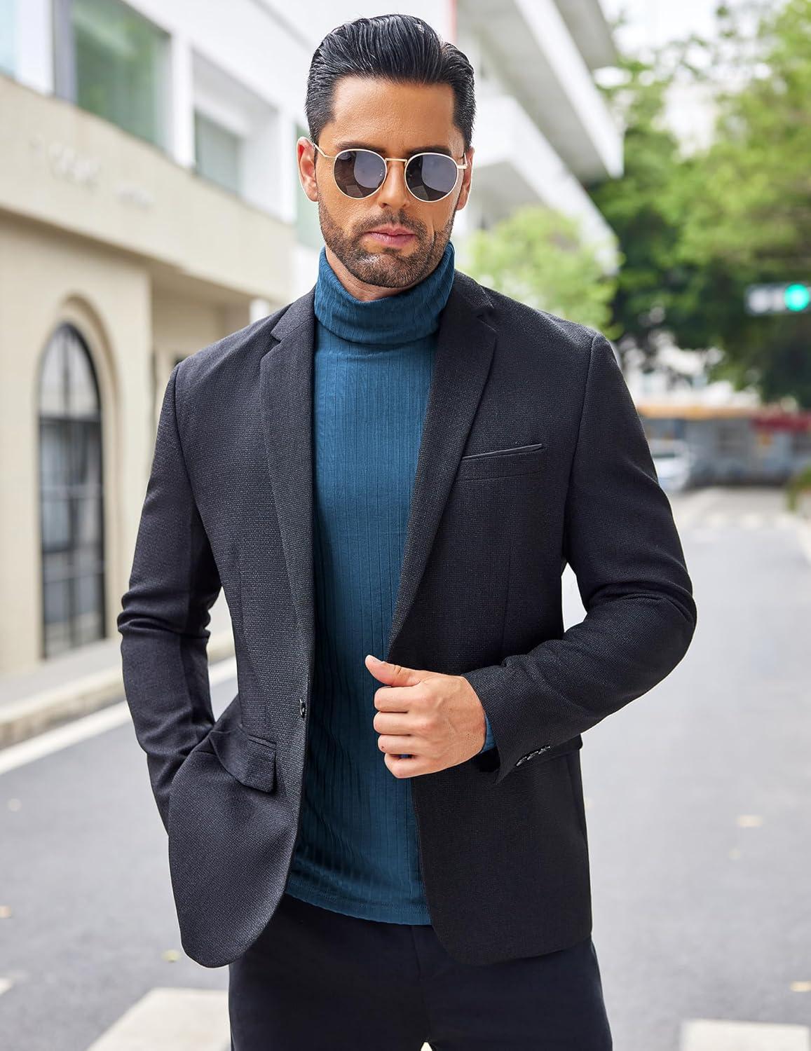COOFANDY Men’s Turtleneck Sweater Slim Fit Lightweight Basic Ribbed Sweaters(Blue)