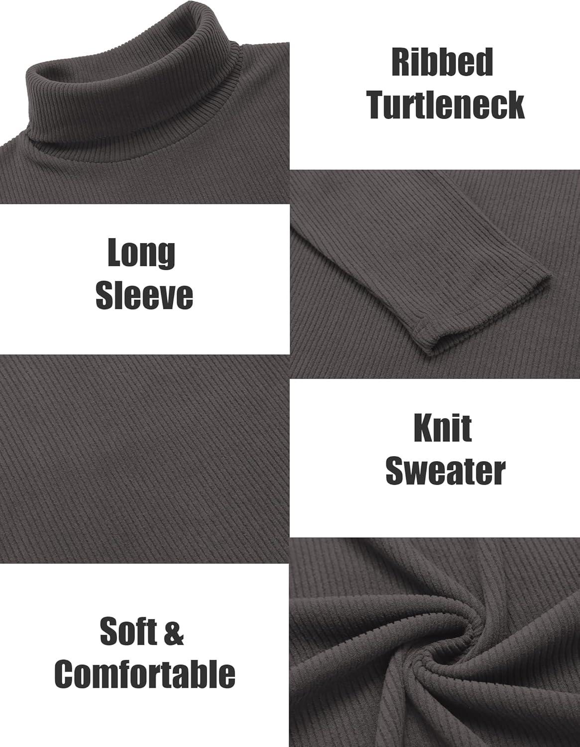 COOFANDY Men’s Slim Fit Turtleneck Sweater Casual Pullover Sweater Lightweight Ribbed Sweater(Dark Grey)